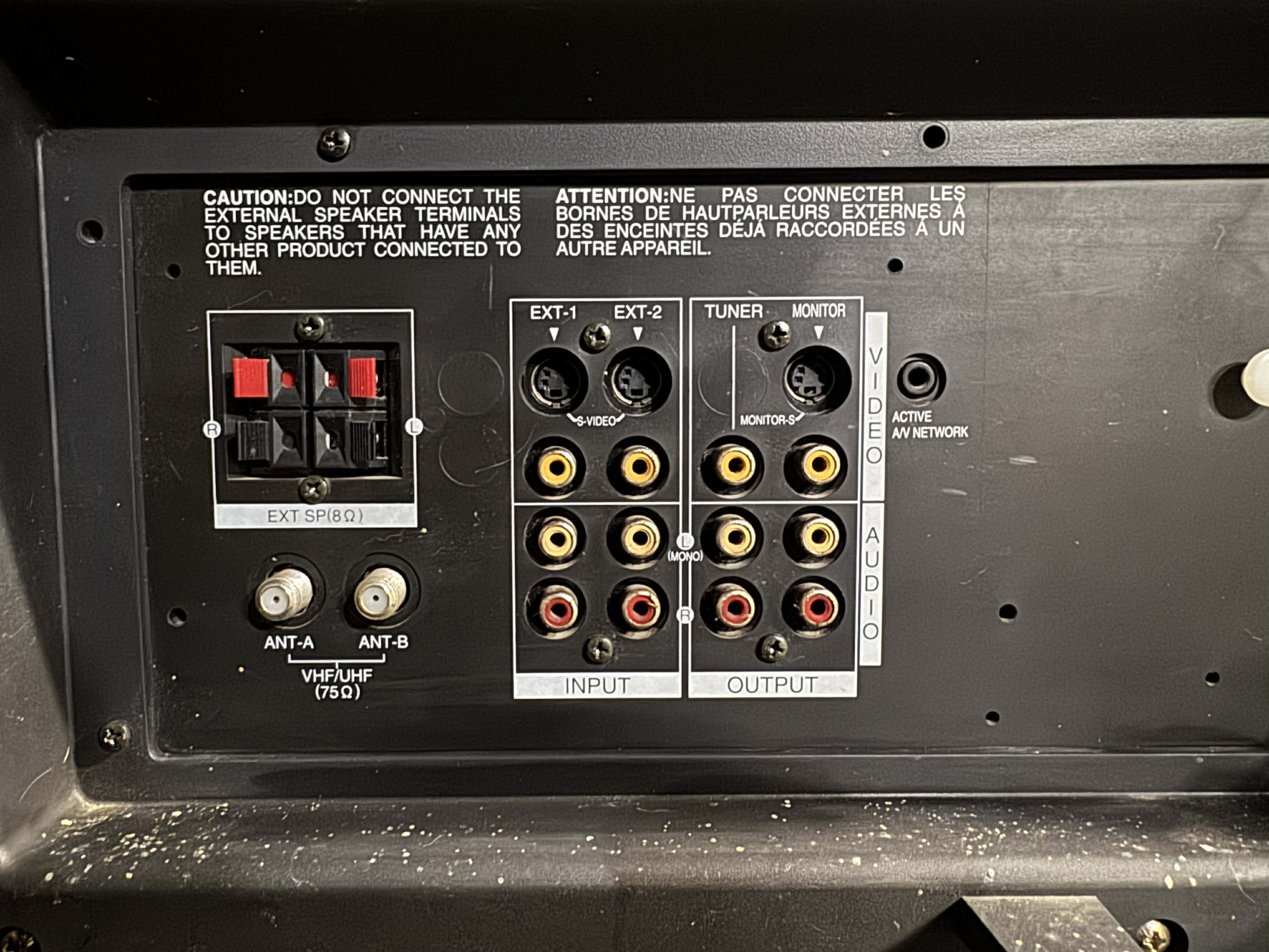High-end 40" CRT by Mitsubishi from 1995. Has multiple composite and s-video inputs, as well as amped audio outputs. Chassis was made in the USA, and assembled with the Japanese-made picture tube at Mitsubishi's facility in Braselton, GA.