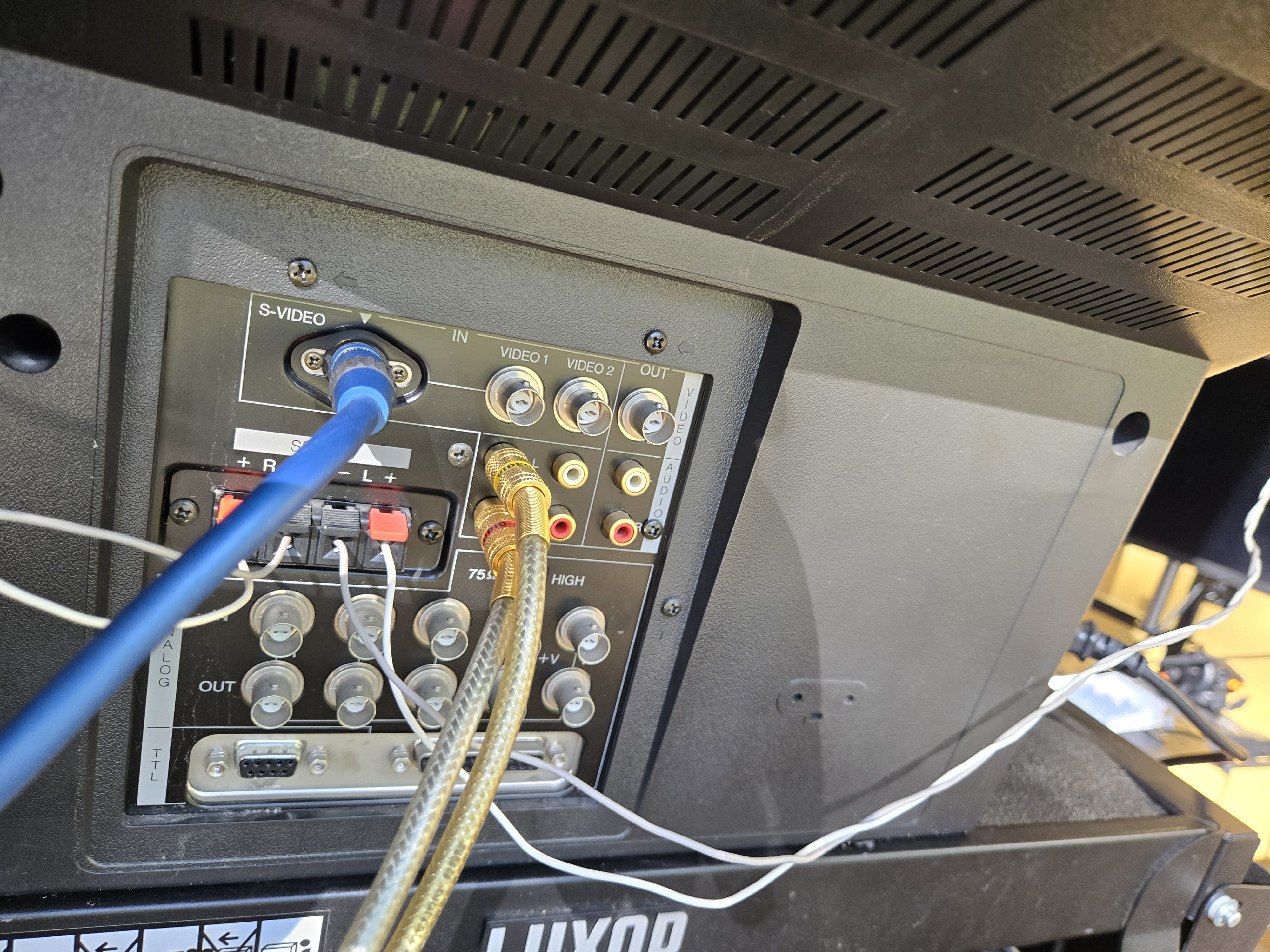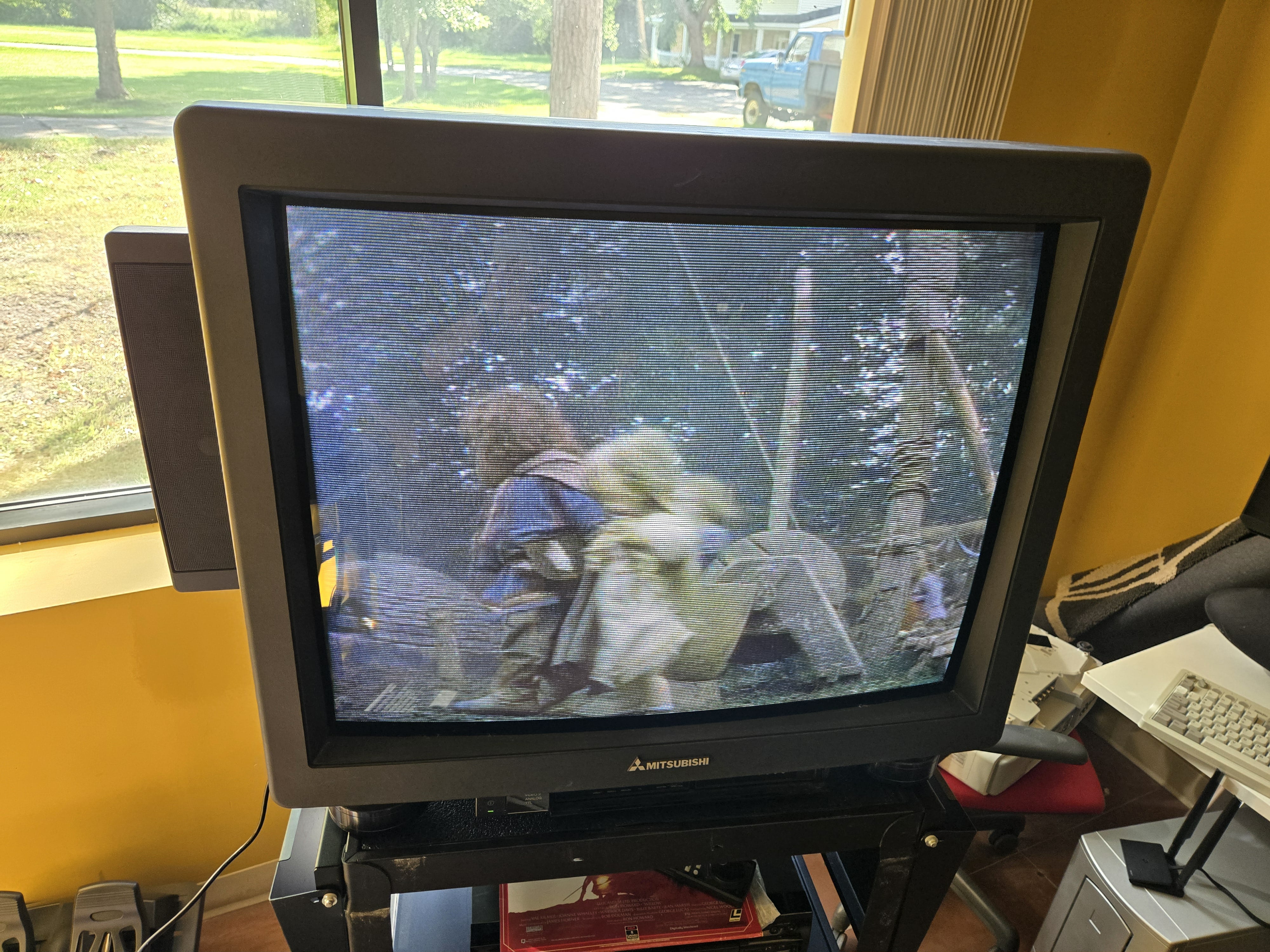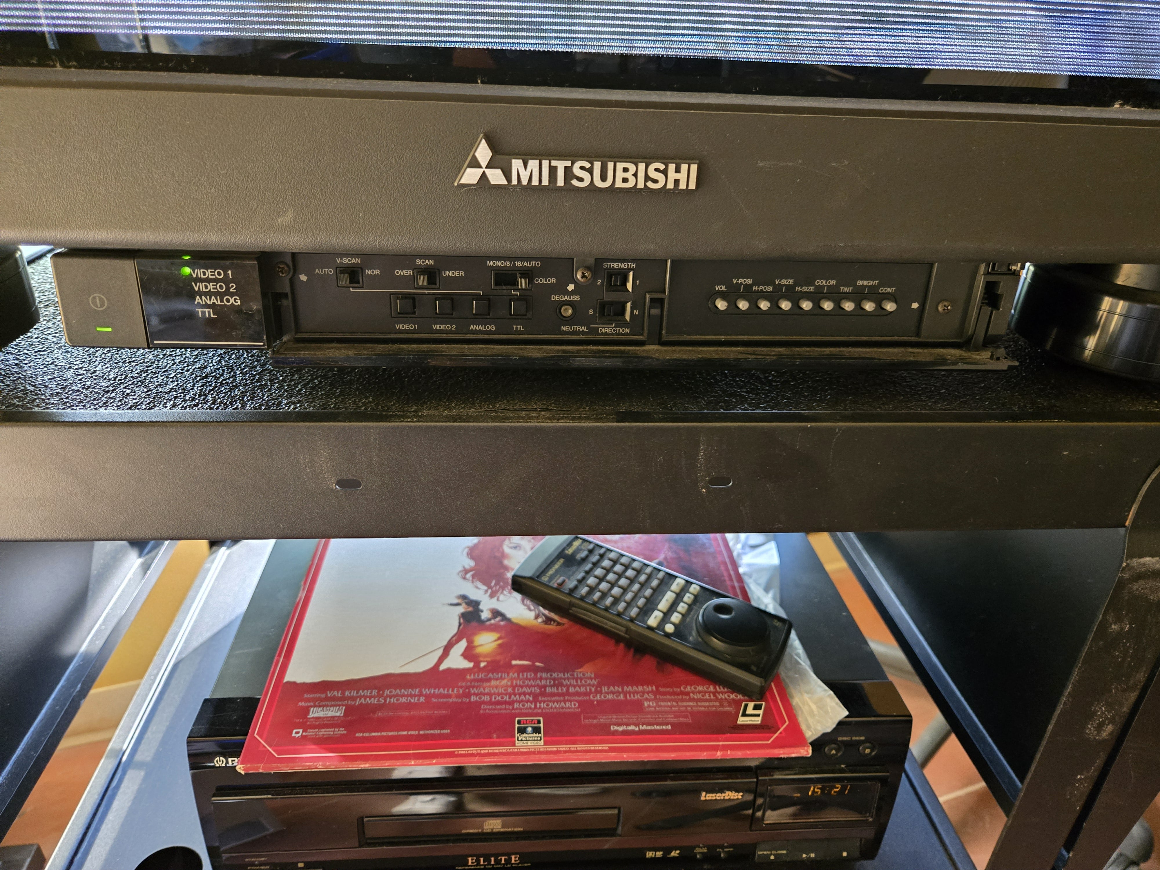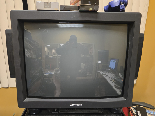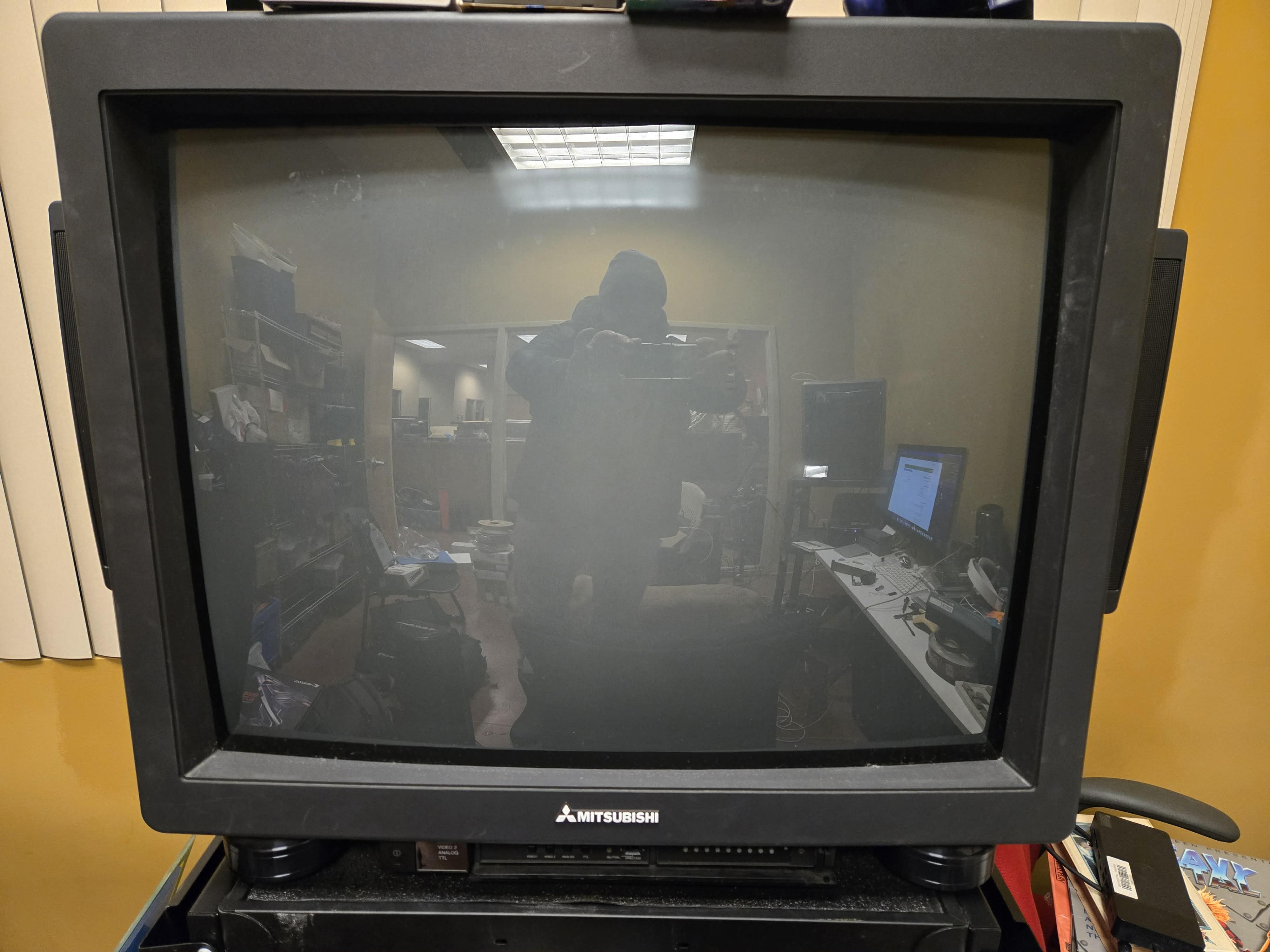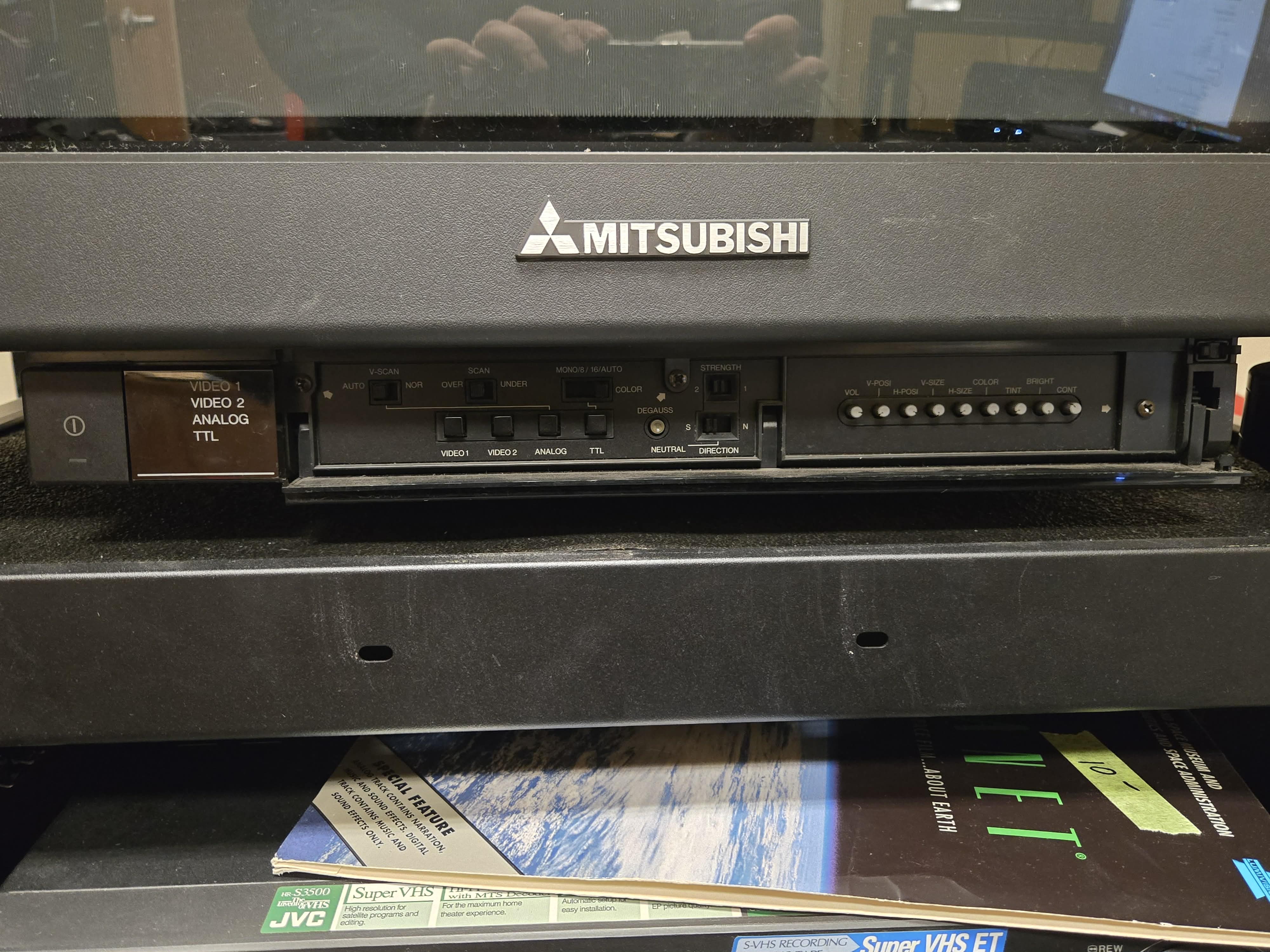 A very high-end 31" multisync presentation monitor by Mitsubishi, made in Japan in 1991. This monitor appears to be more specifically designed for the North American market, as the power supply is 120V. While not quite as high-end as the other graphics monitors, it is still quite capable nonetheless. Supports composite, s-video, analog RGB (DB-25) and digital RGB (DE-9).