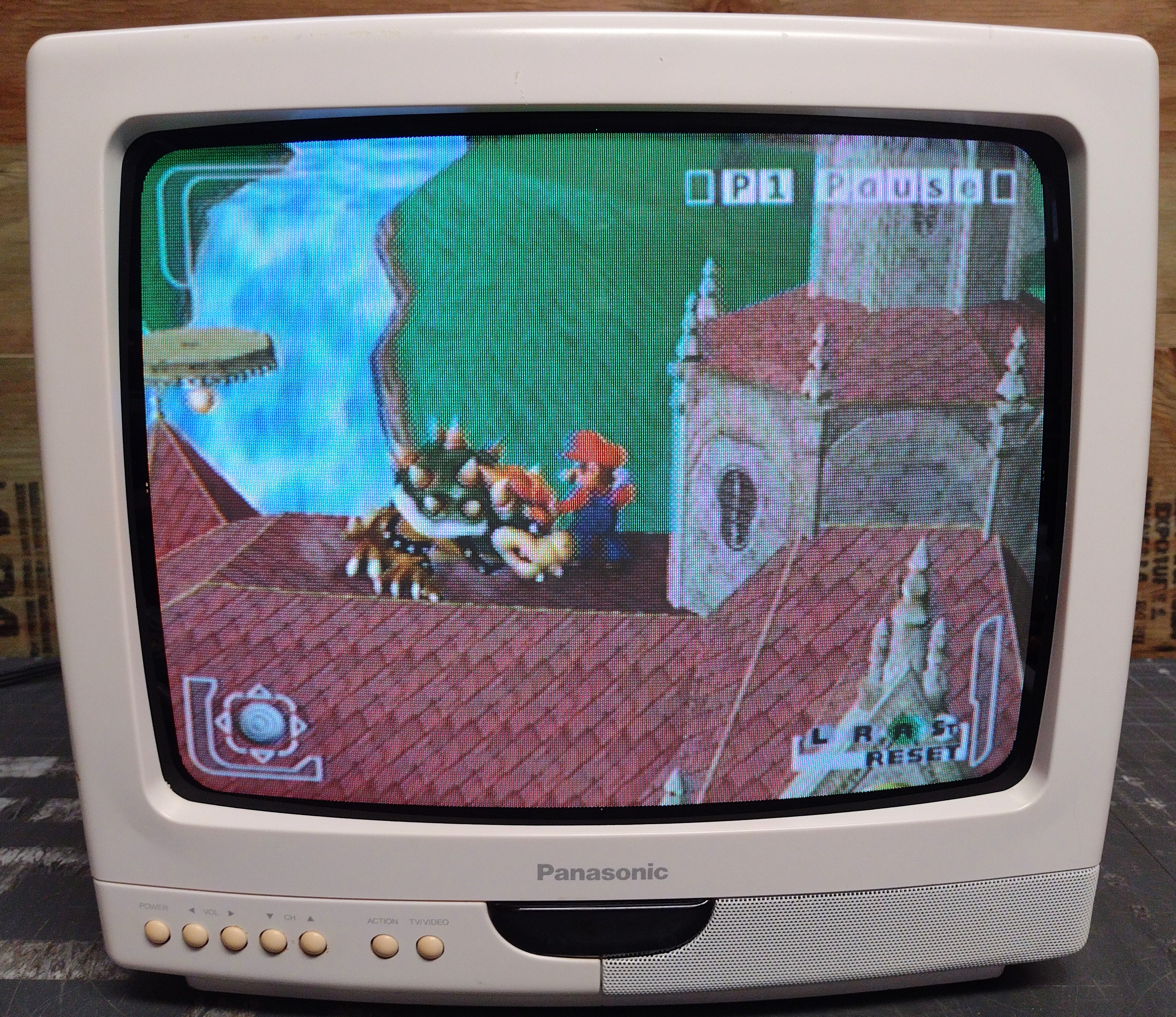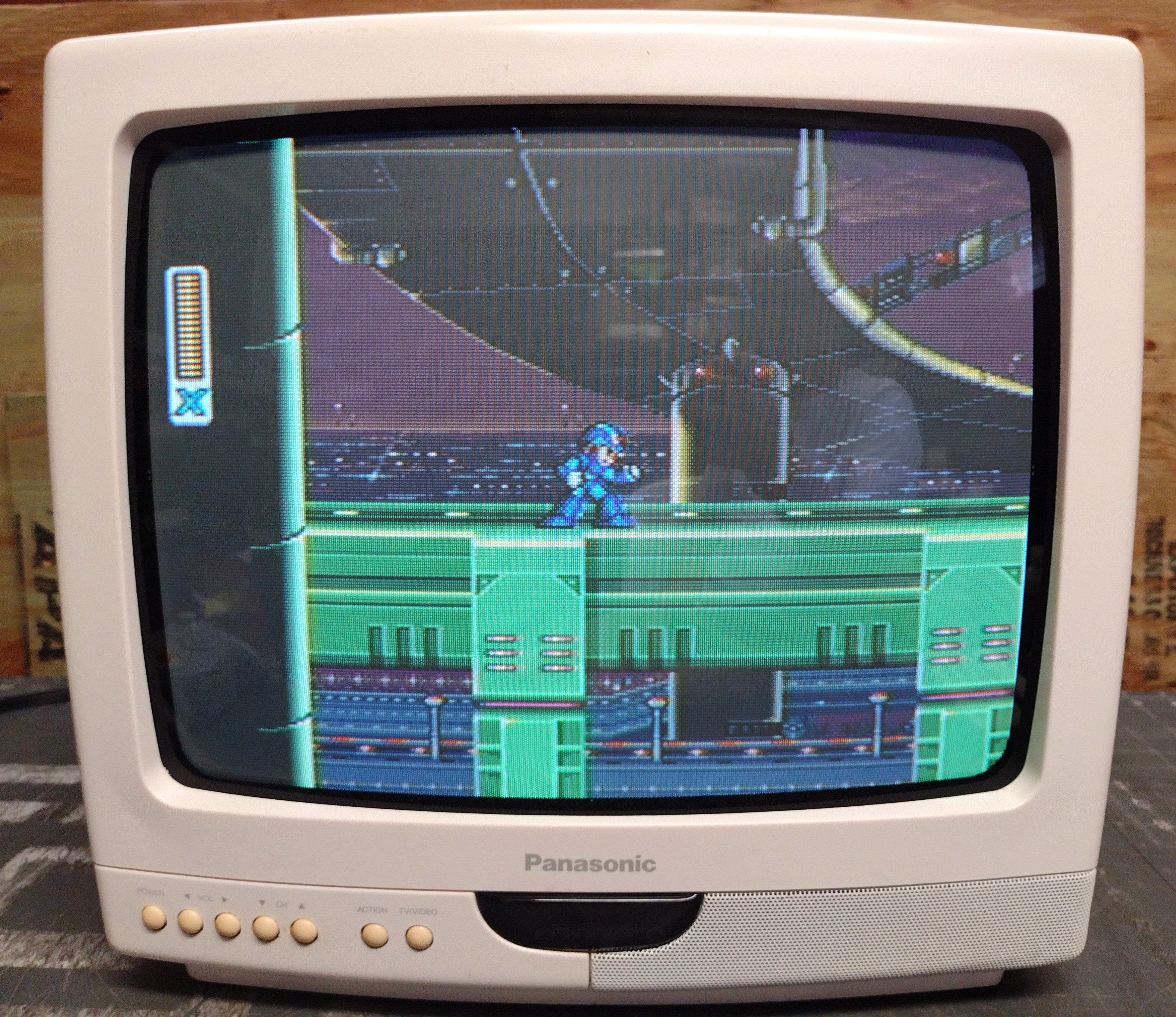 13" consumer TV from Panasonic, with one composite AV input. White version of the CT-13R10R. Build quality is good for its size.