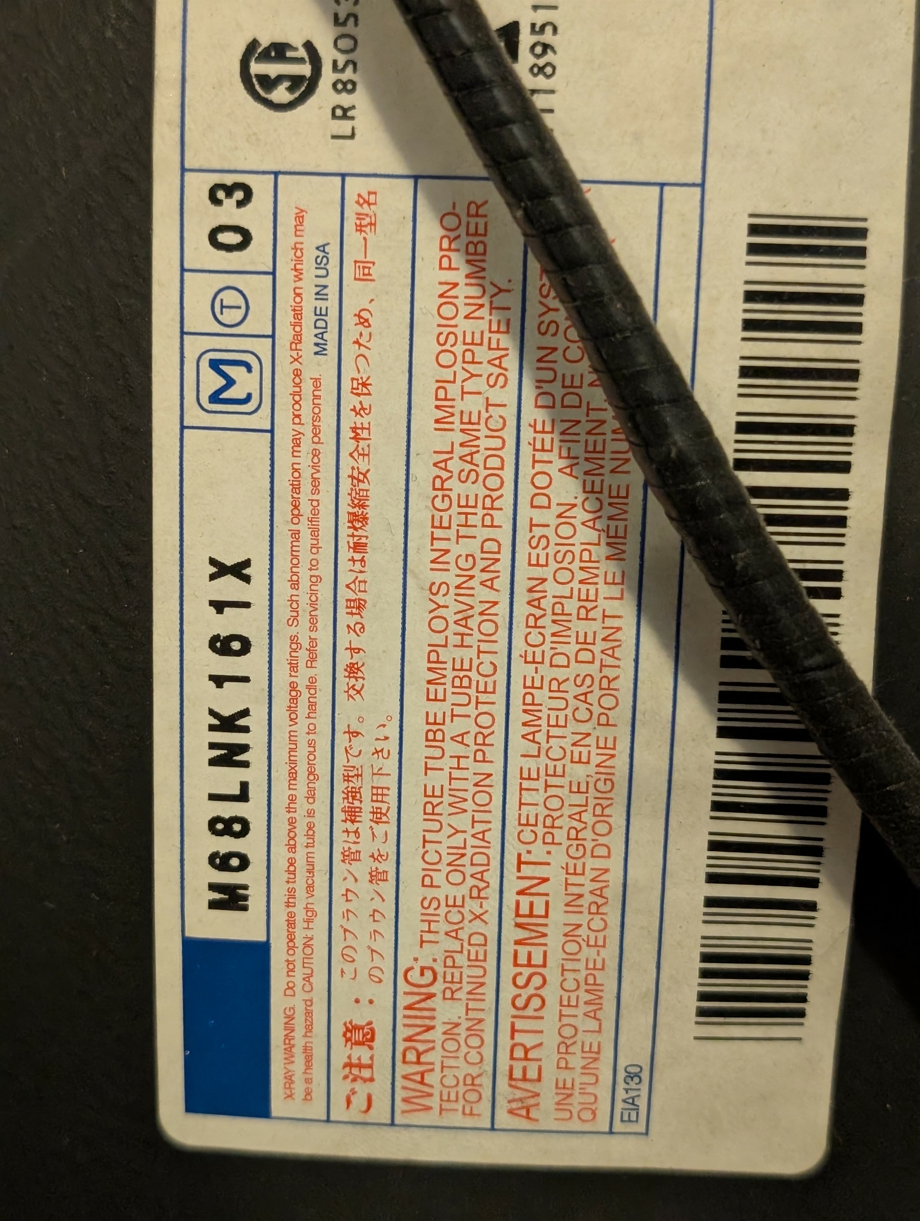 | Tube: | Panasonic , M68LNK161X , M68LNK161X03 |