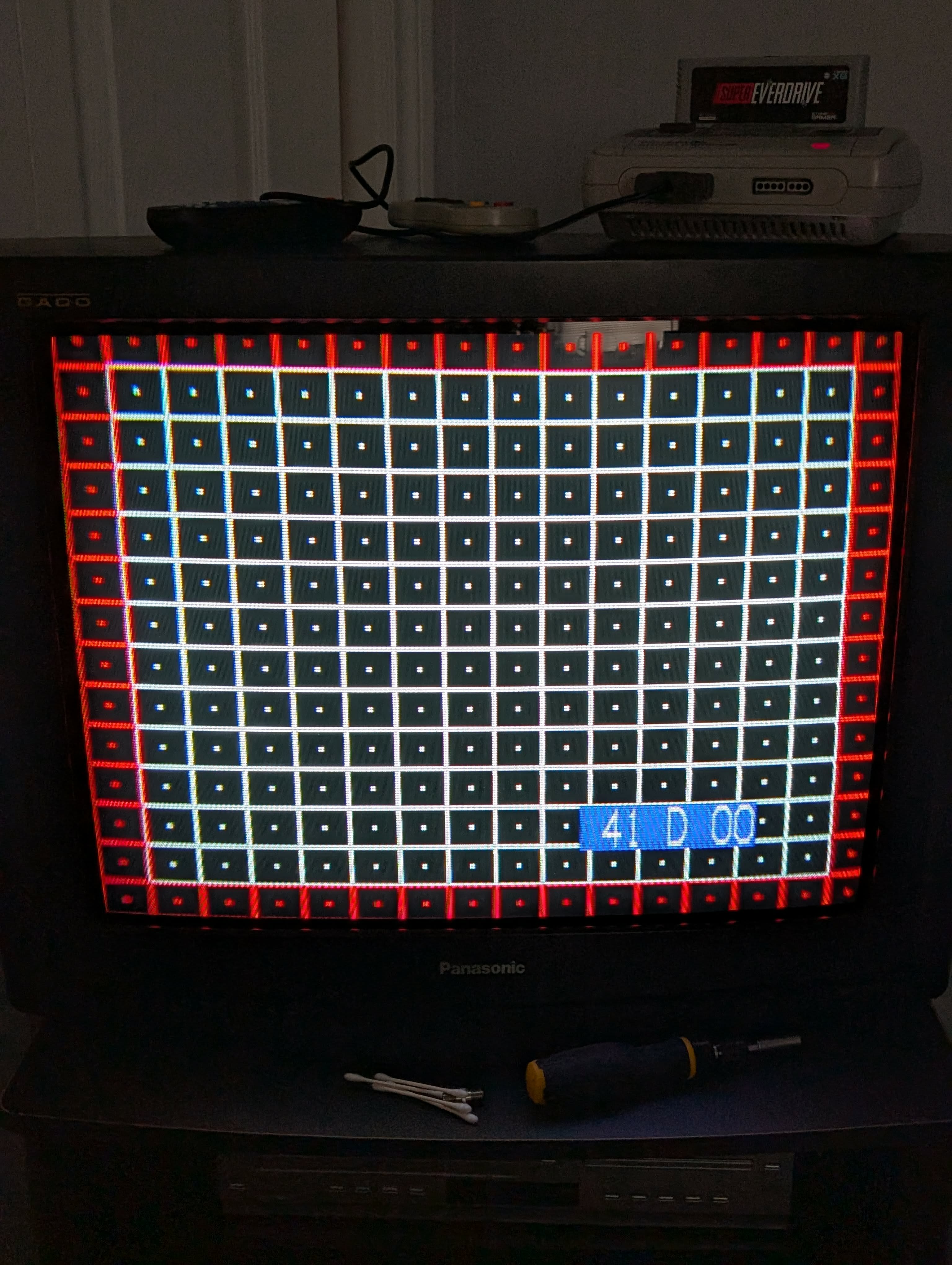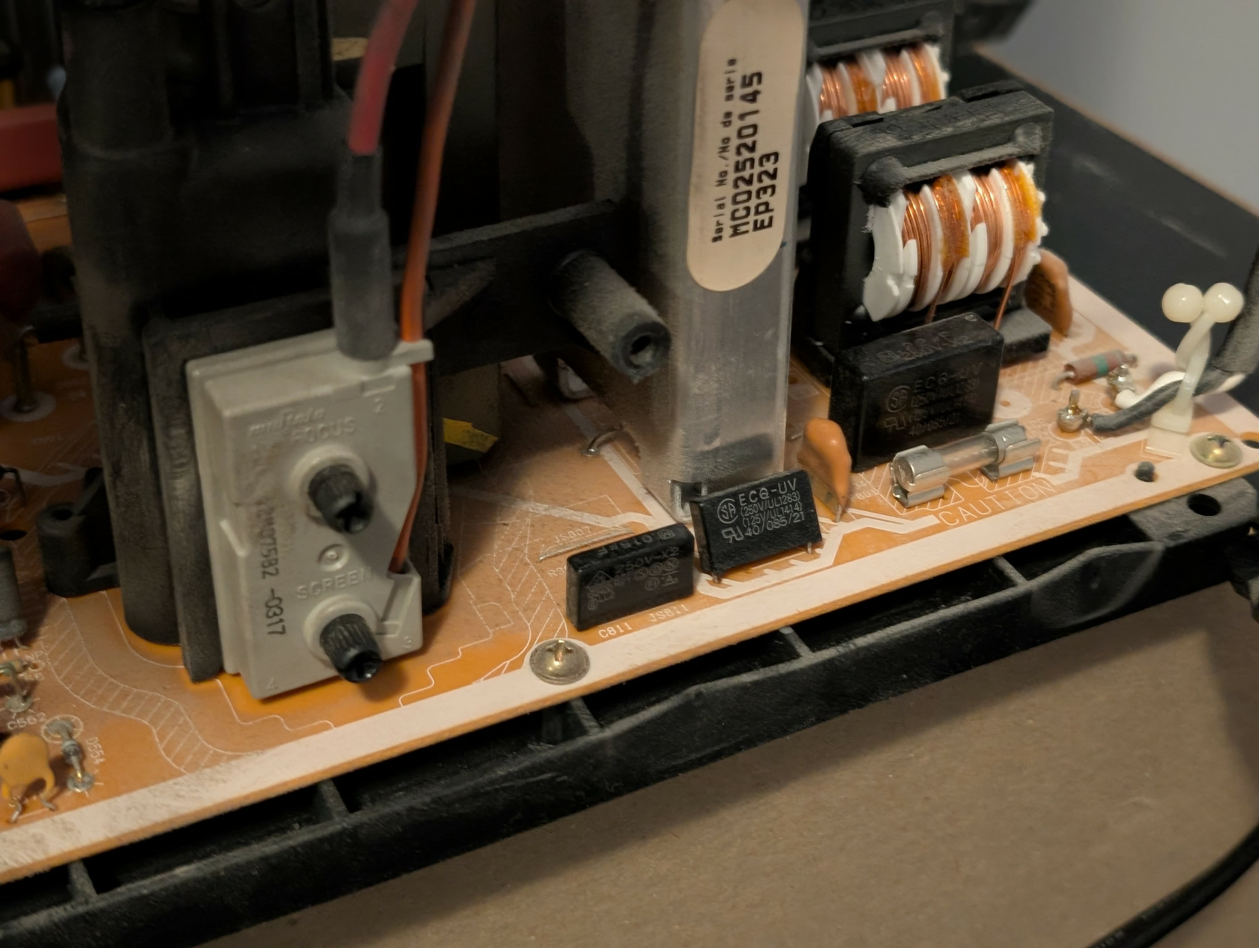 27" curved-screen CRT by Panasonic, made in Mexico and released in Canada in 2000. Has RF, composite, s-video, and component inputs with stereo sound. This set is the Canadian variant of the CT-27SF37B, as that model lacks the "GAOO" branding.