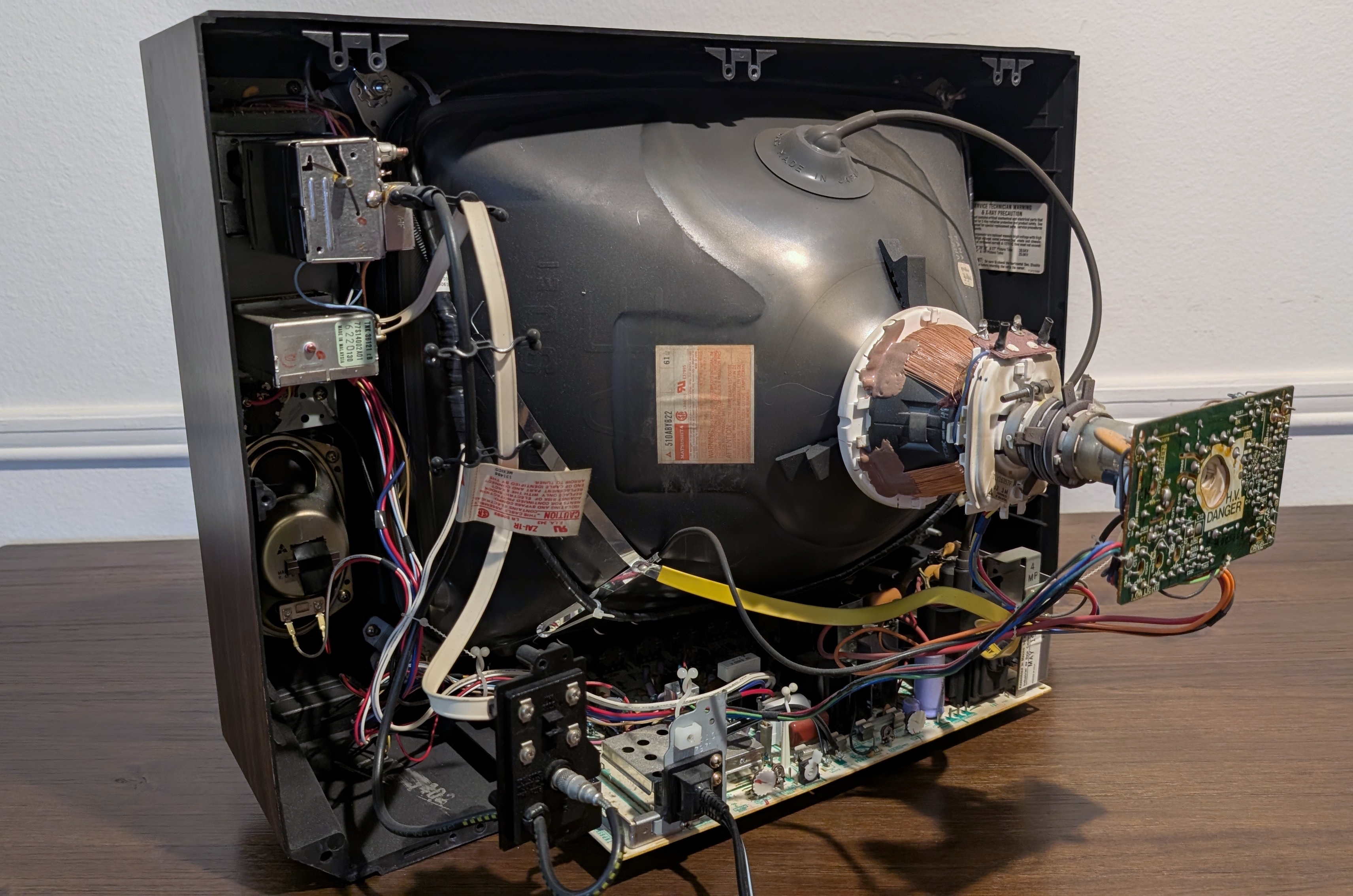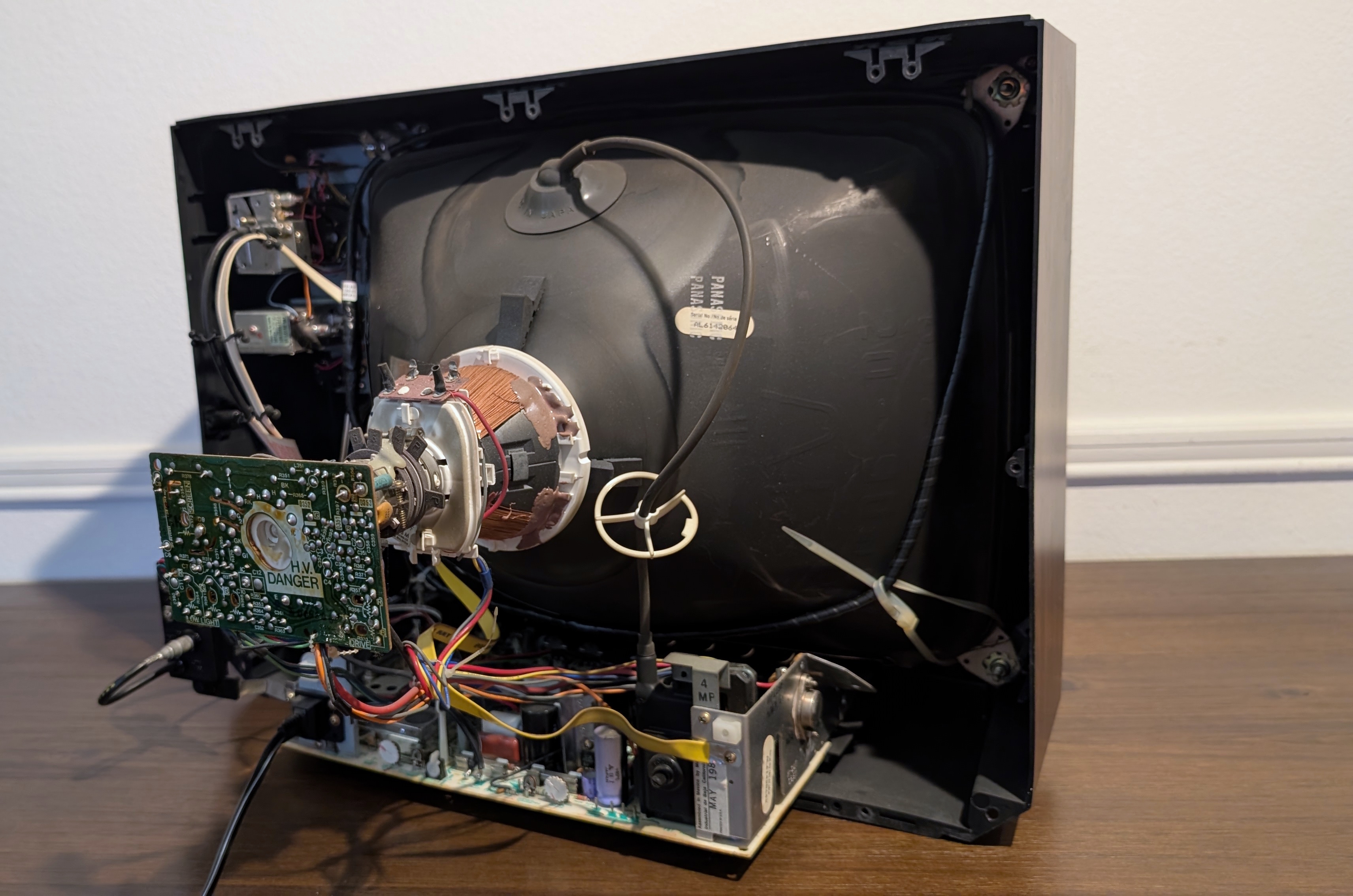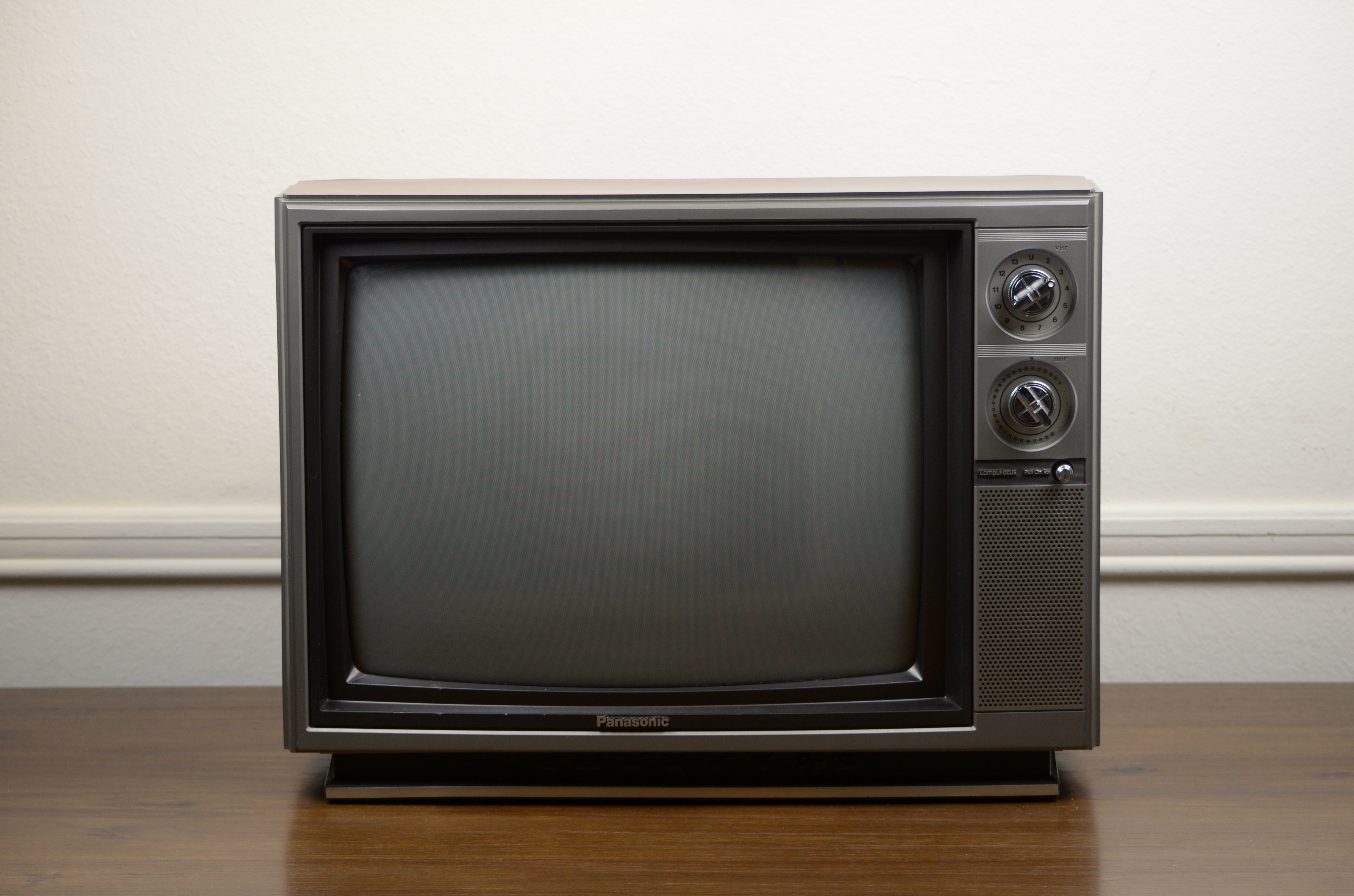 19" CRT by Panasonic with analog VHF/UHF tuning dials and a faux woodgrain plastic cabinet. Basic RF-only model made in the USA in 1986.