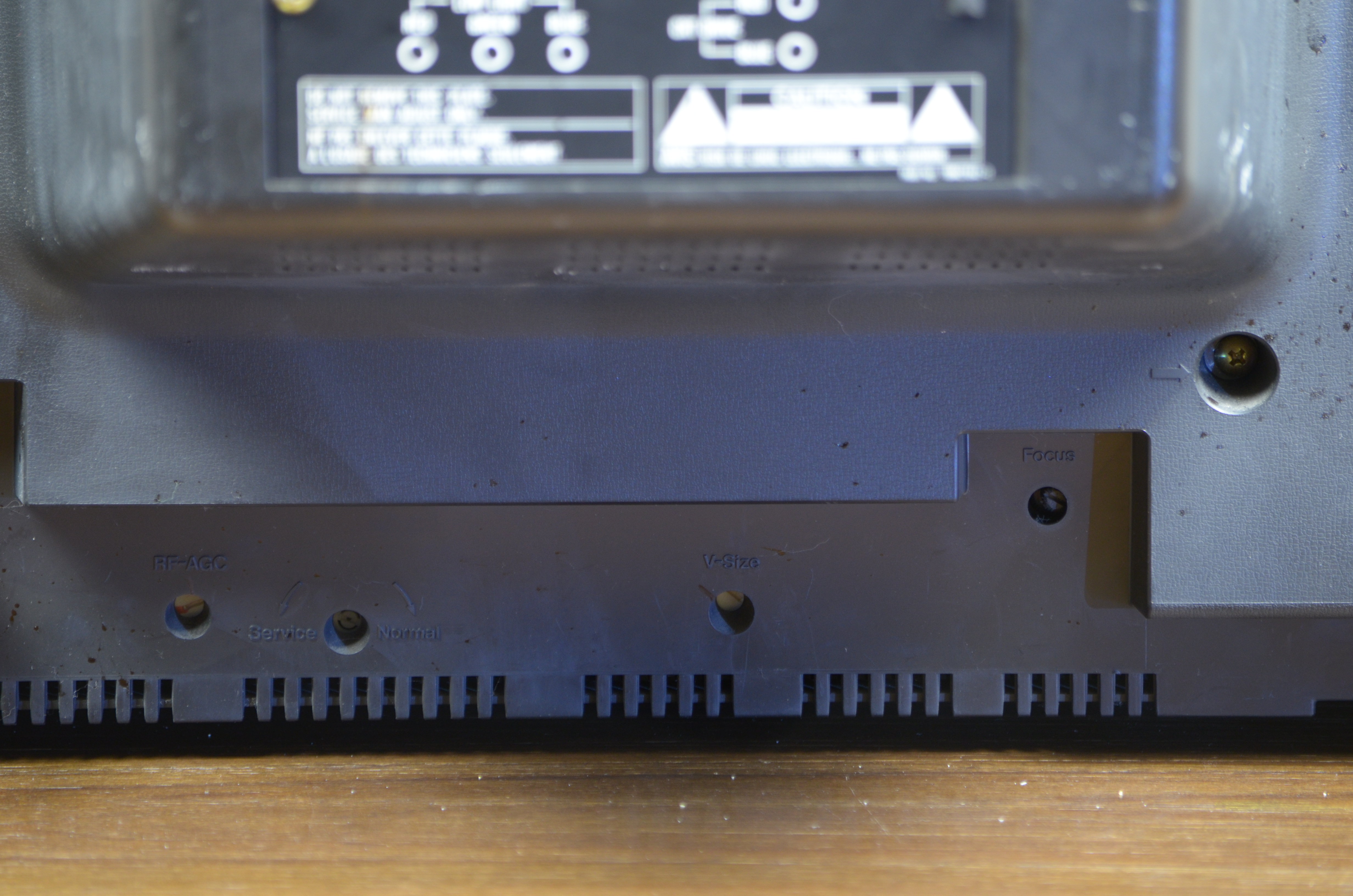 The CTH-1900 has analog tuning controls in the form of two silver dials located to the right of the screen. Fine tuning adjustment is available by pressing inwards on the collar positioned underneath each dial and rotating either clockwise or anticlockwise, this feature is disabled when the AFT toggle button located under the tube is pressed in. The power switch is a typical push/pull style knob that is also rotated for volume control.