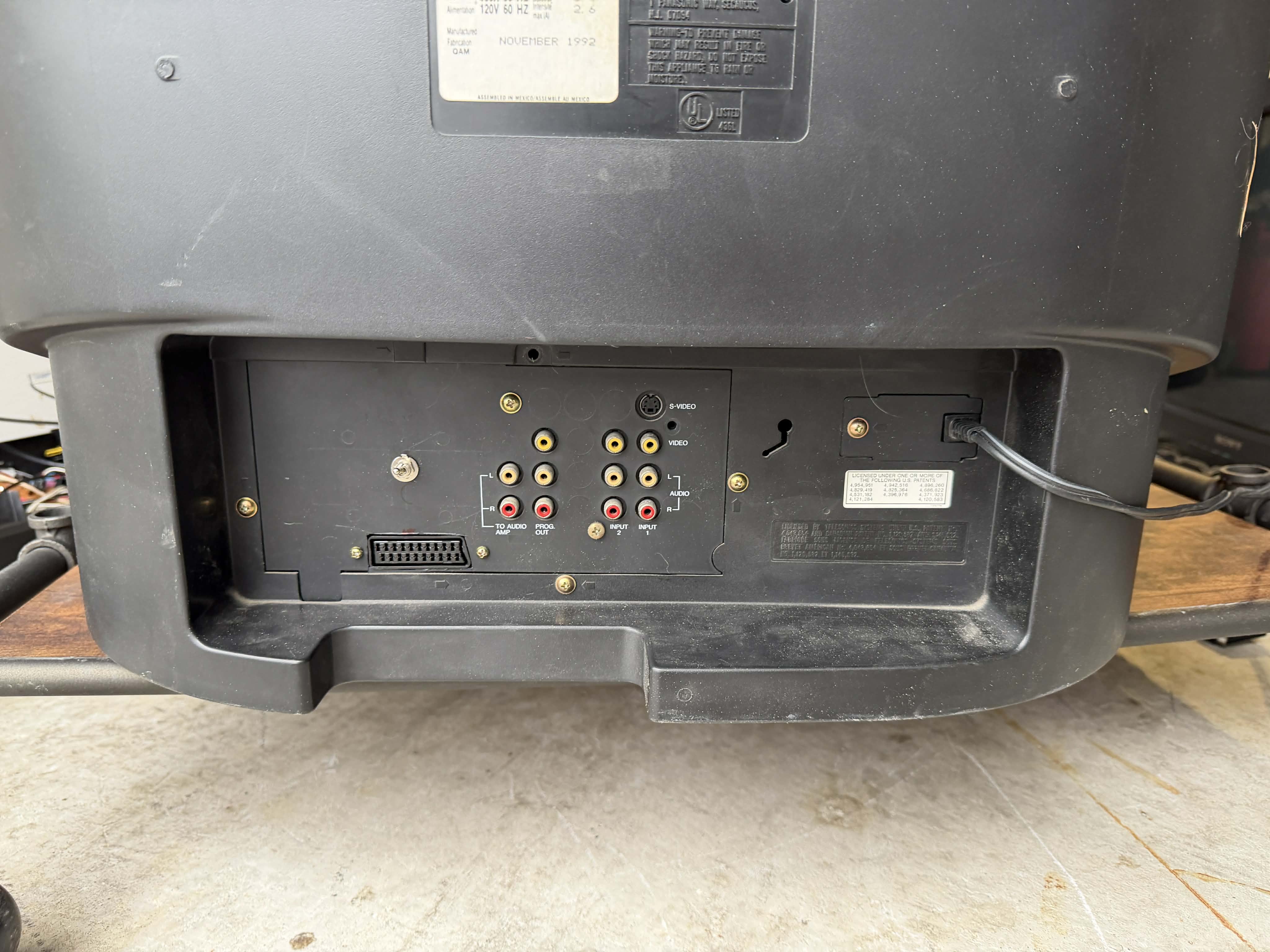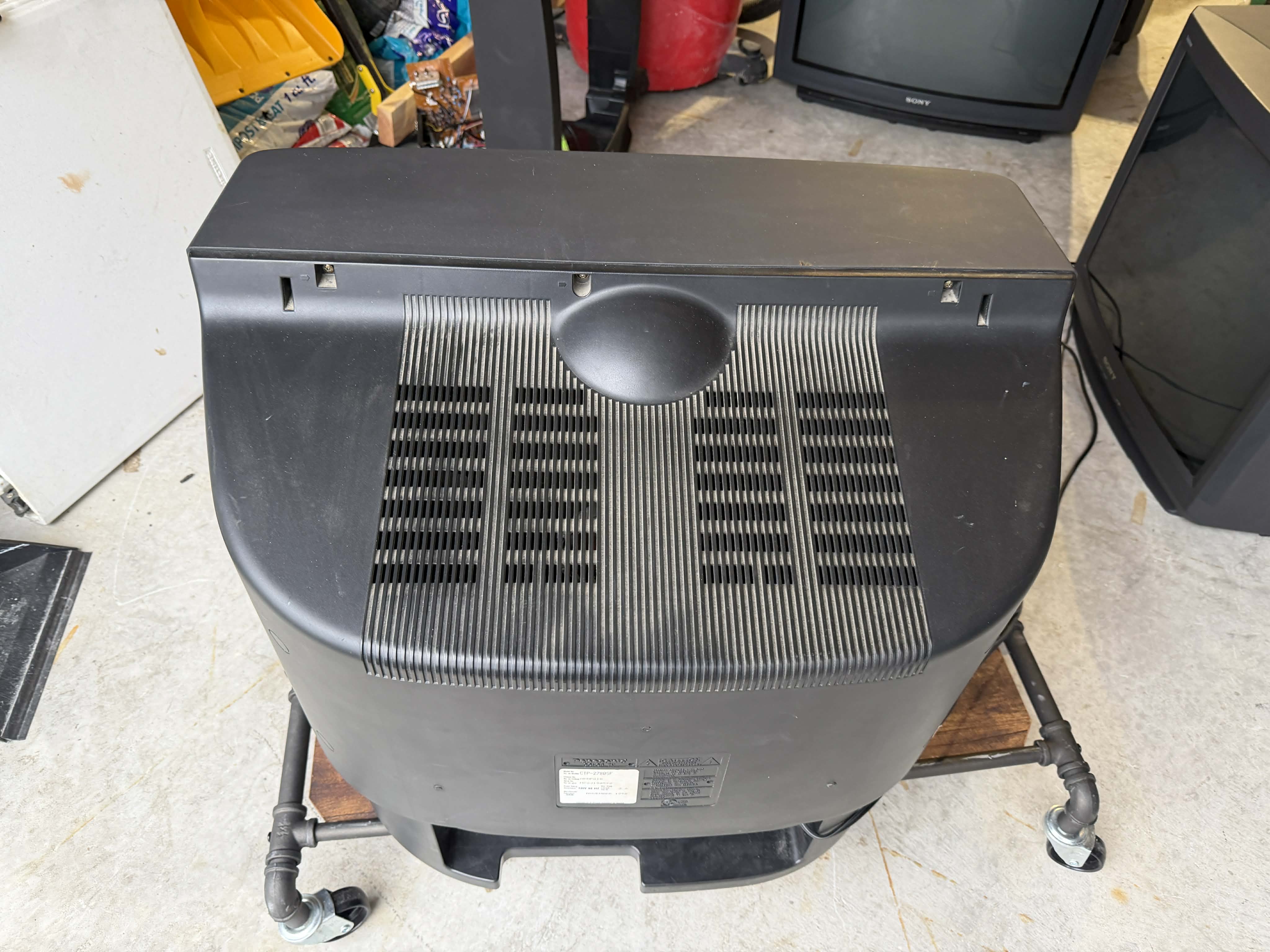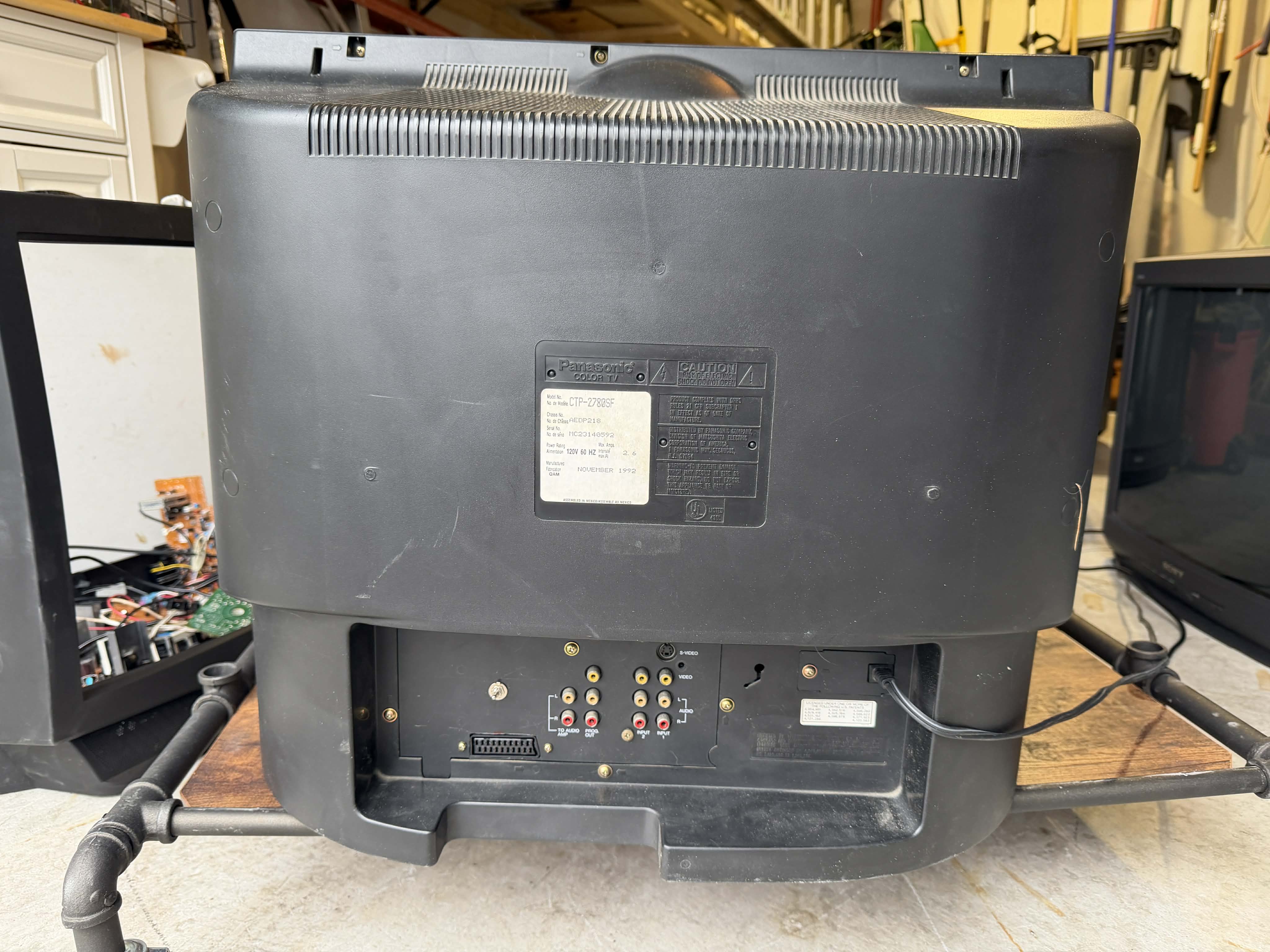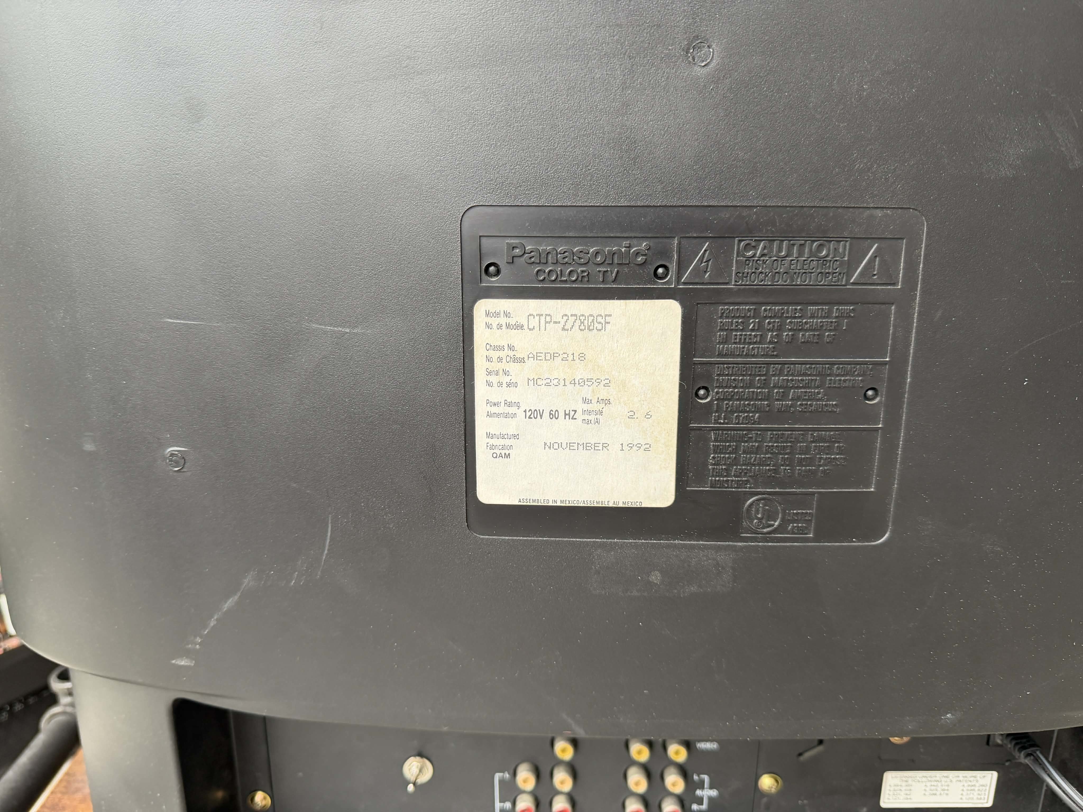 Higher-end 27" CRT by Panasonic, a SuperFlat model (one of the very first) made in Mexico in 1992. Has RF, composite, and s-video inputs with bassy DOME speakers.