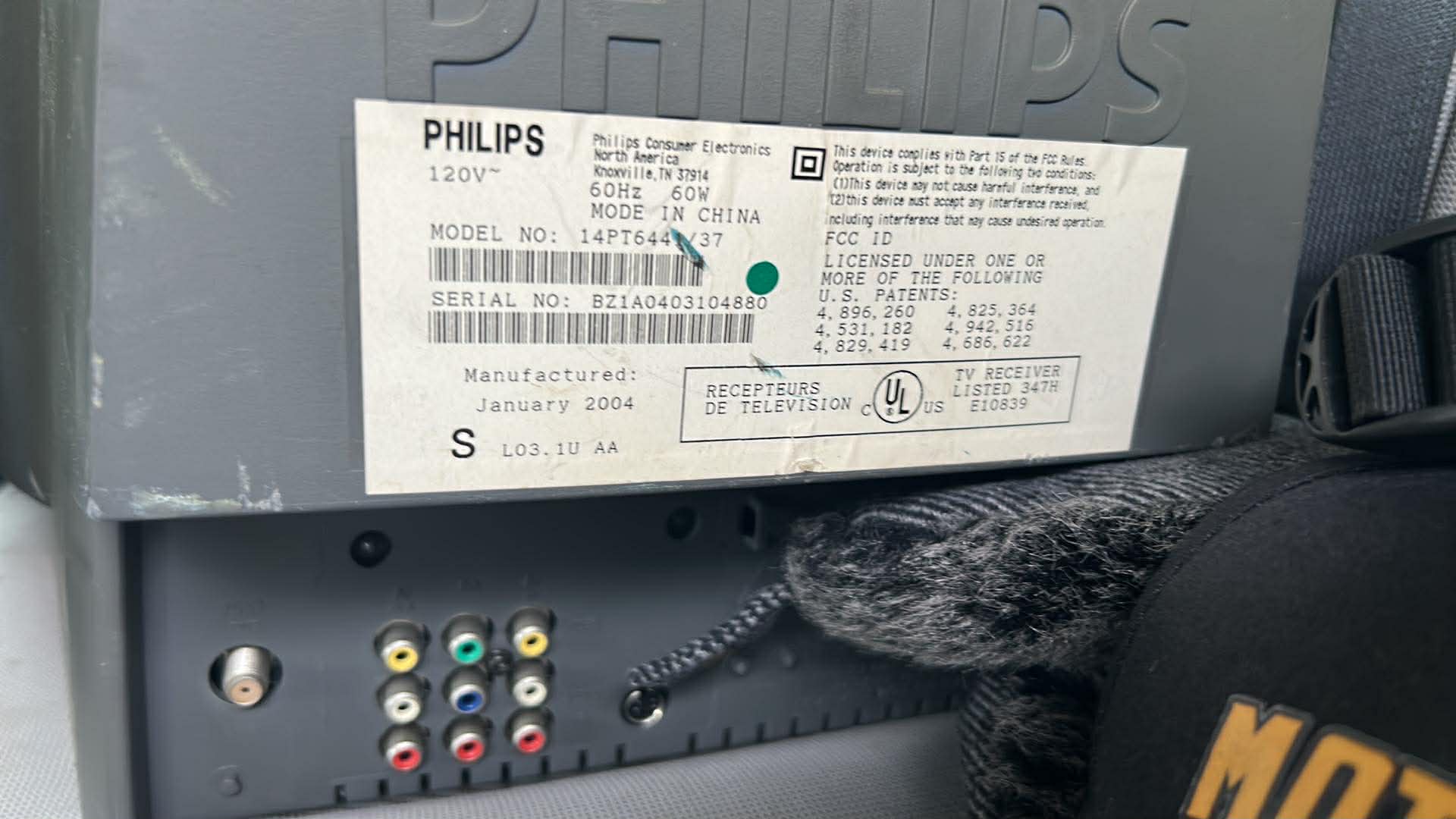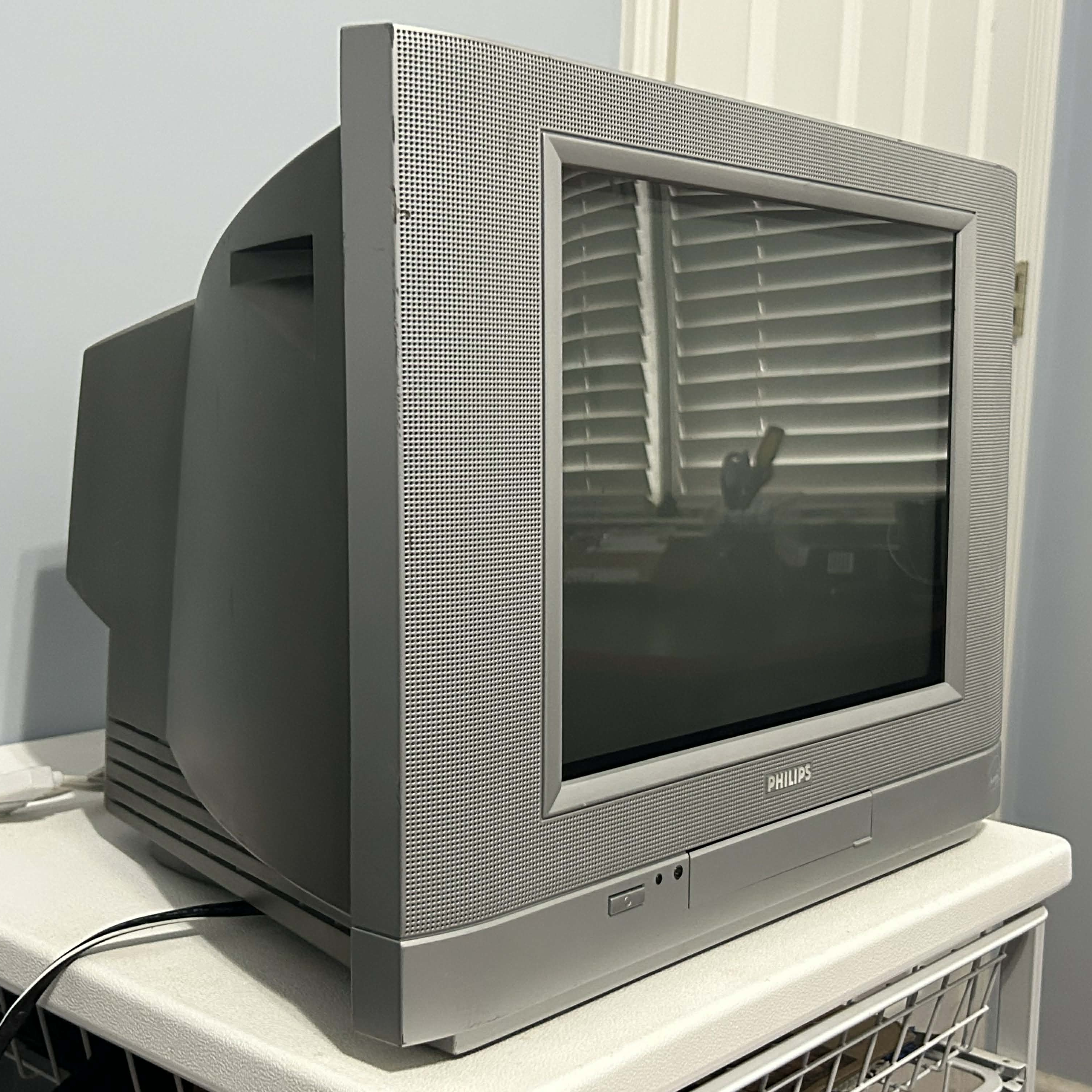 14" flat-tube CRT by Philips, made in collaboration by TCL in China in 2004. Has RF, composite, s-video and component inputs with stereo sound.