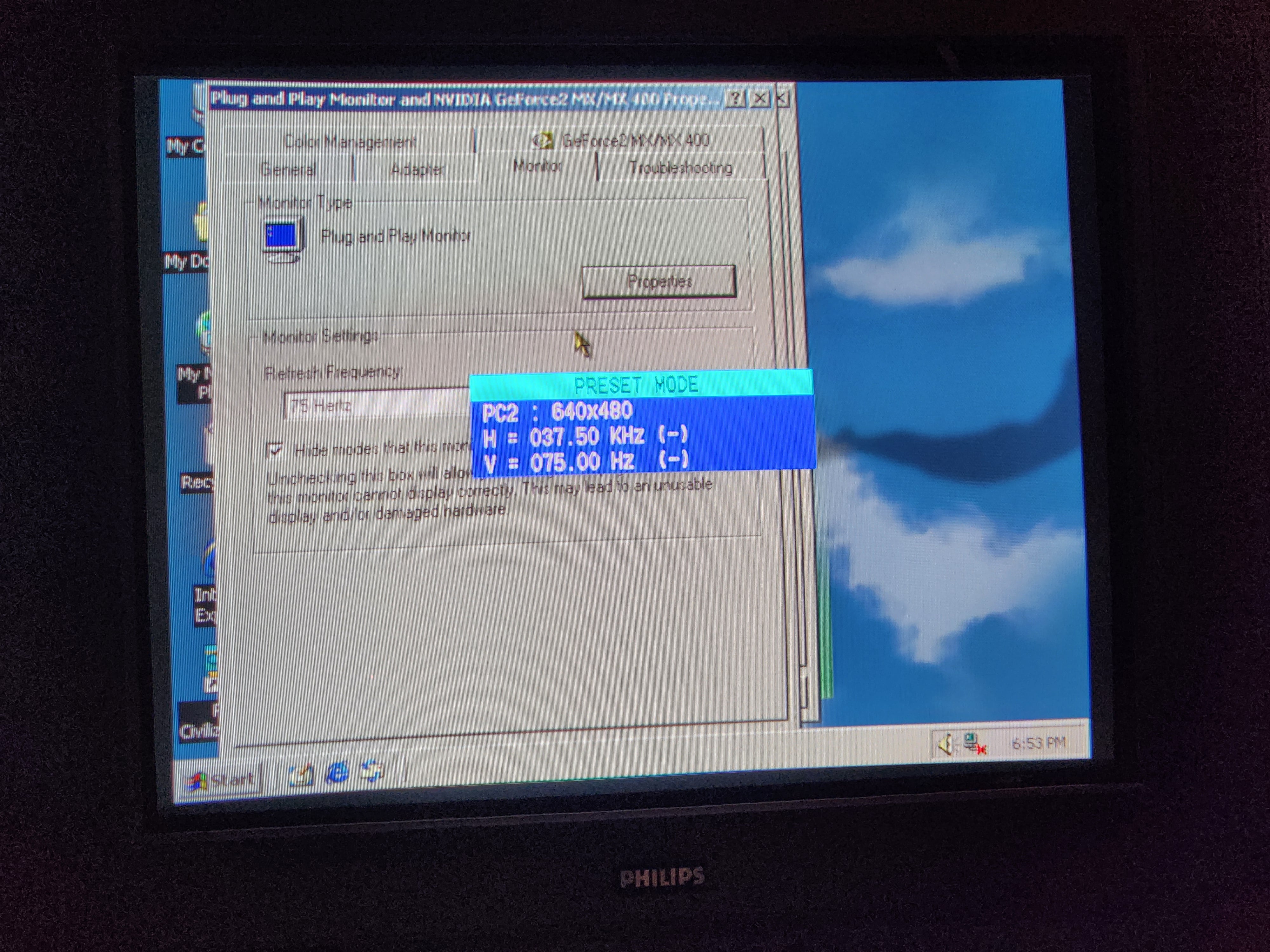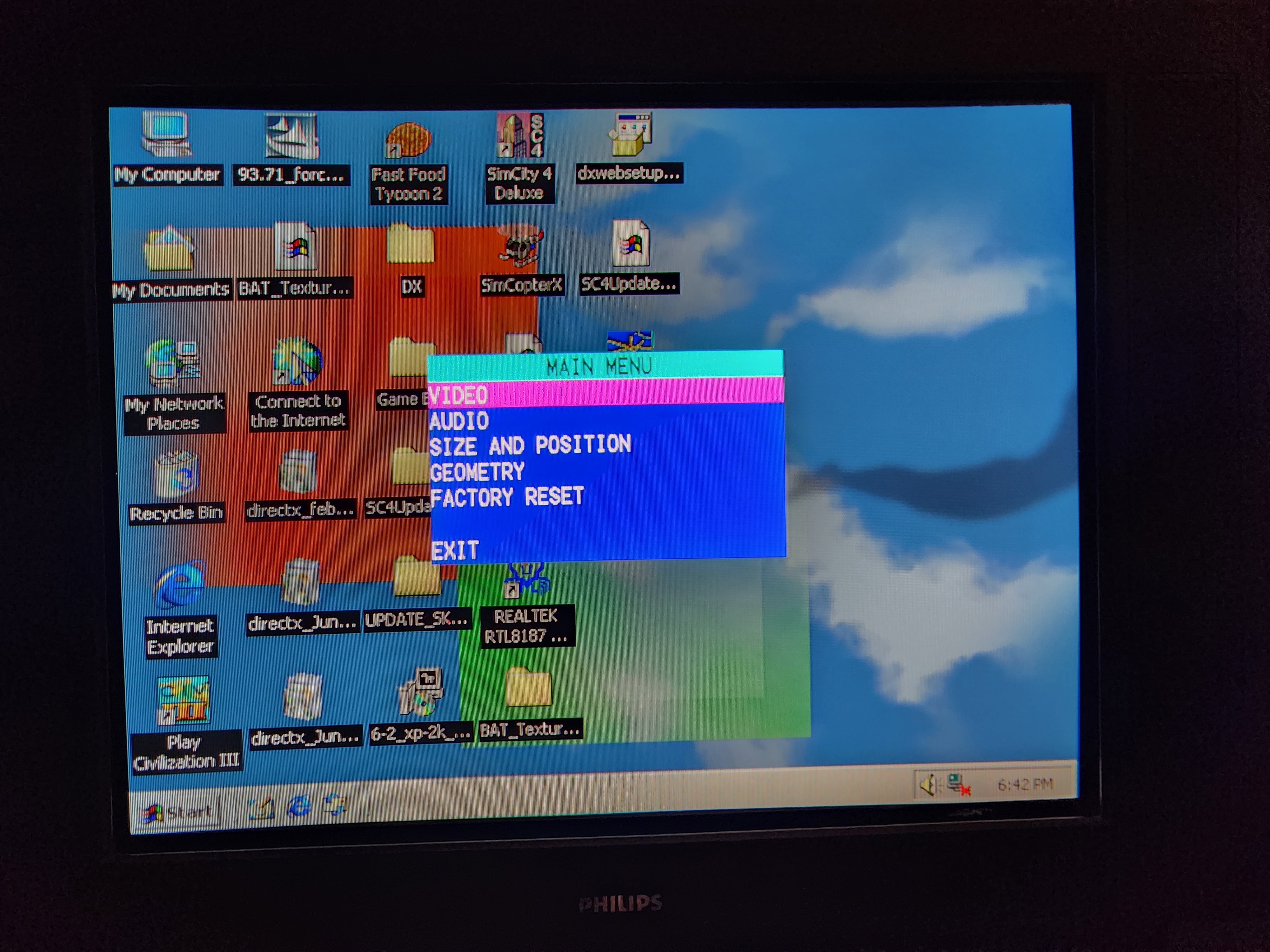 A very obscure 27" institutional monitor by Philips, made by ADI Corporation of Taiwan in 2002. Can accept computer resolutions over VGA, and upconverts SD signals via its RF, composite, and s-video inputs.