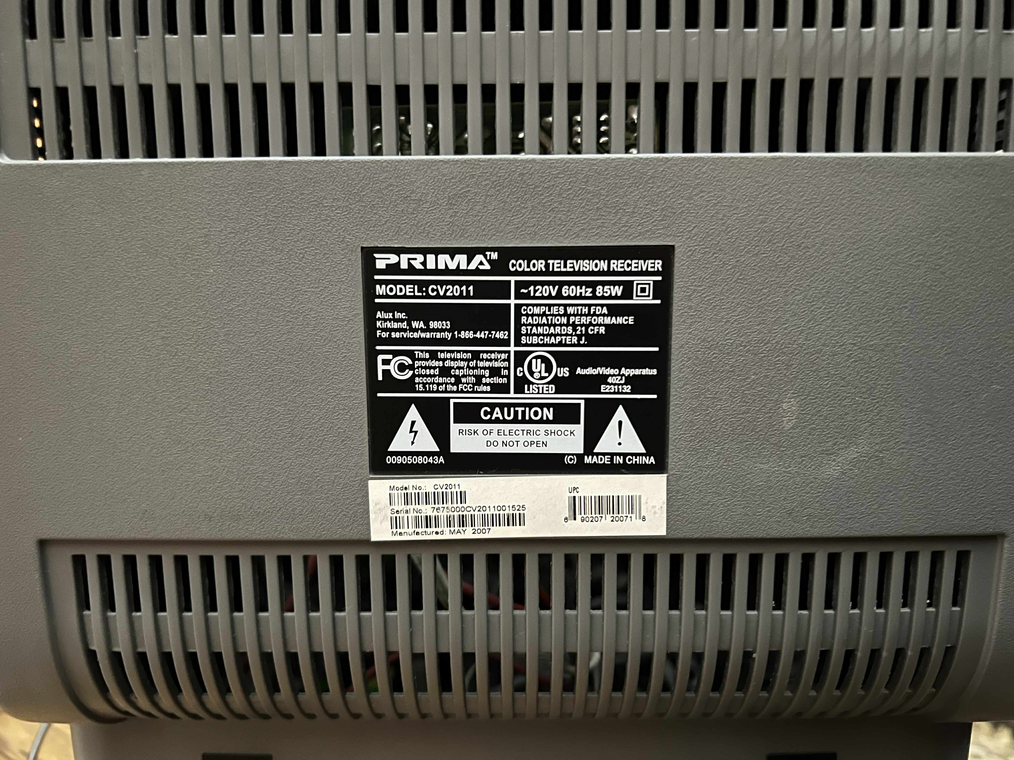 20" DVD combo by Prima. Has RF, composite and component inputs as well as an ATSC tuner. Originally manufactured by Haier in China, a rebadge of their TCR20.