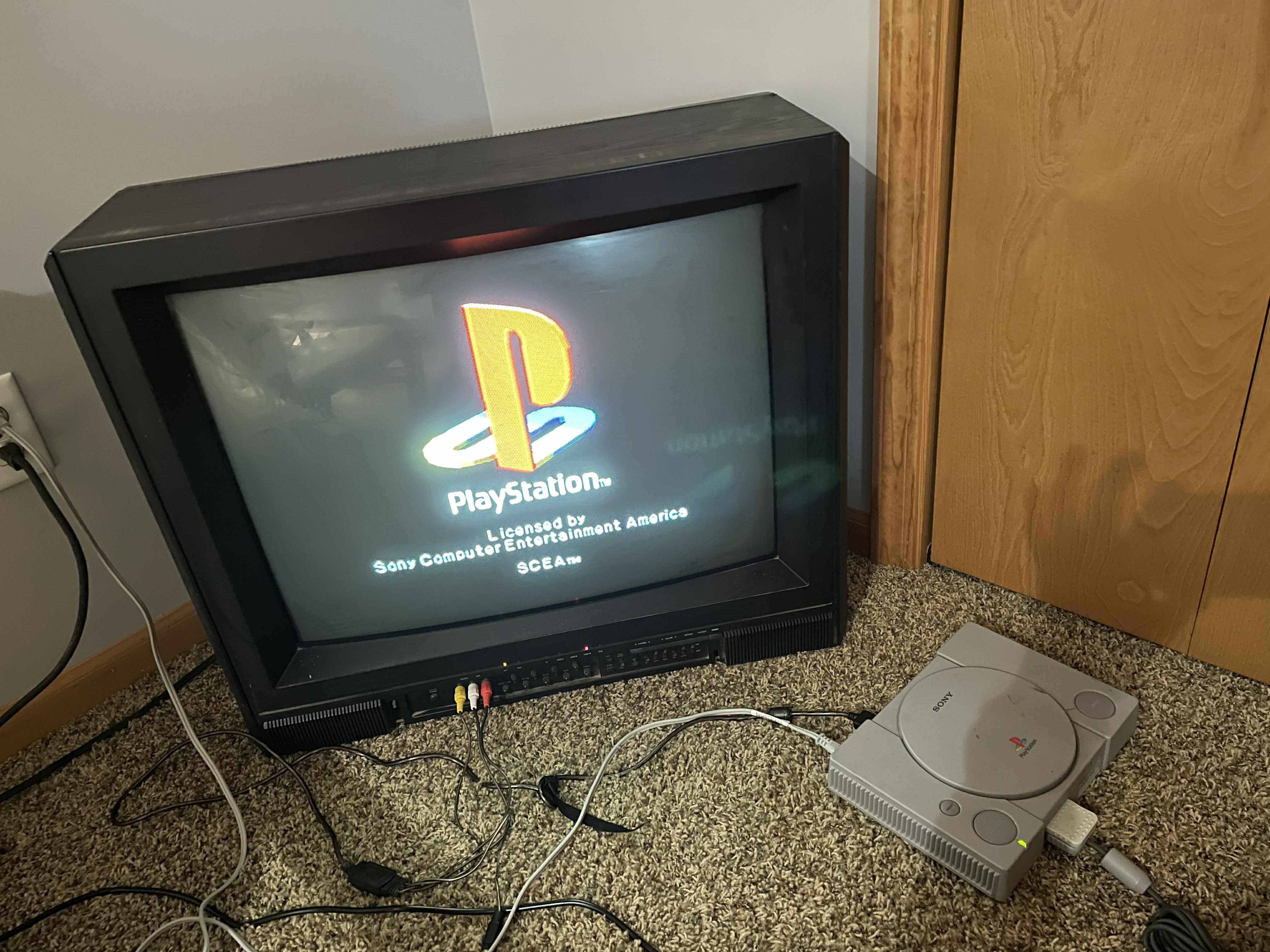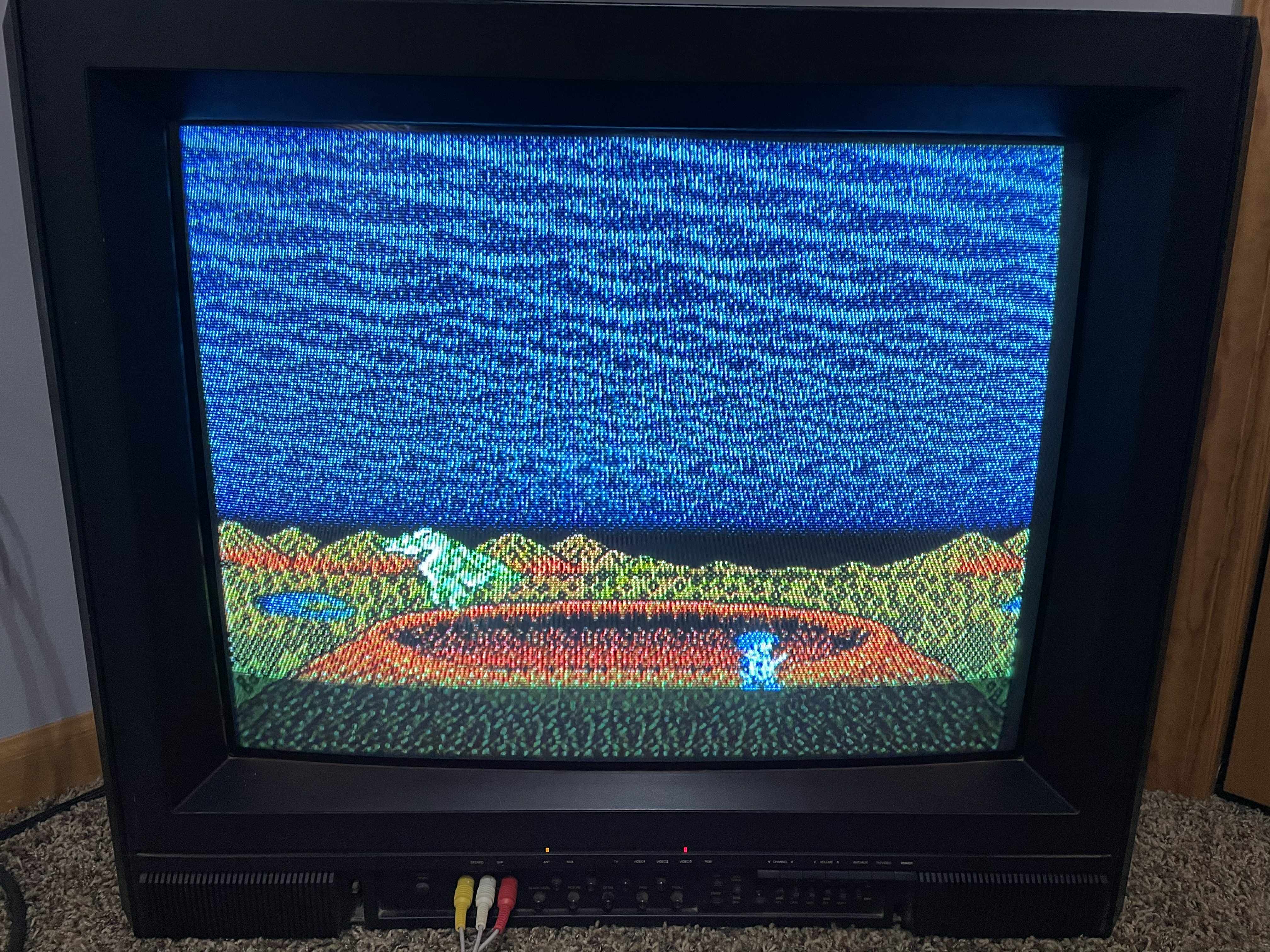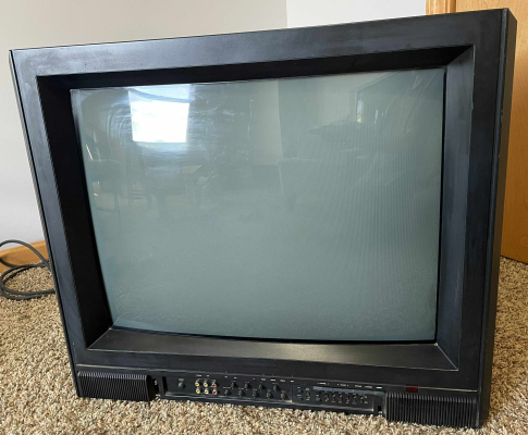 High-end 27" CRT TV by Proton. Has RF, composite and digital RGB inputs. Manufactured in Taiwan in 1987.