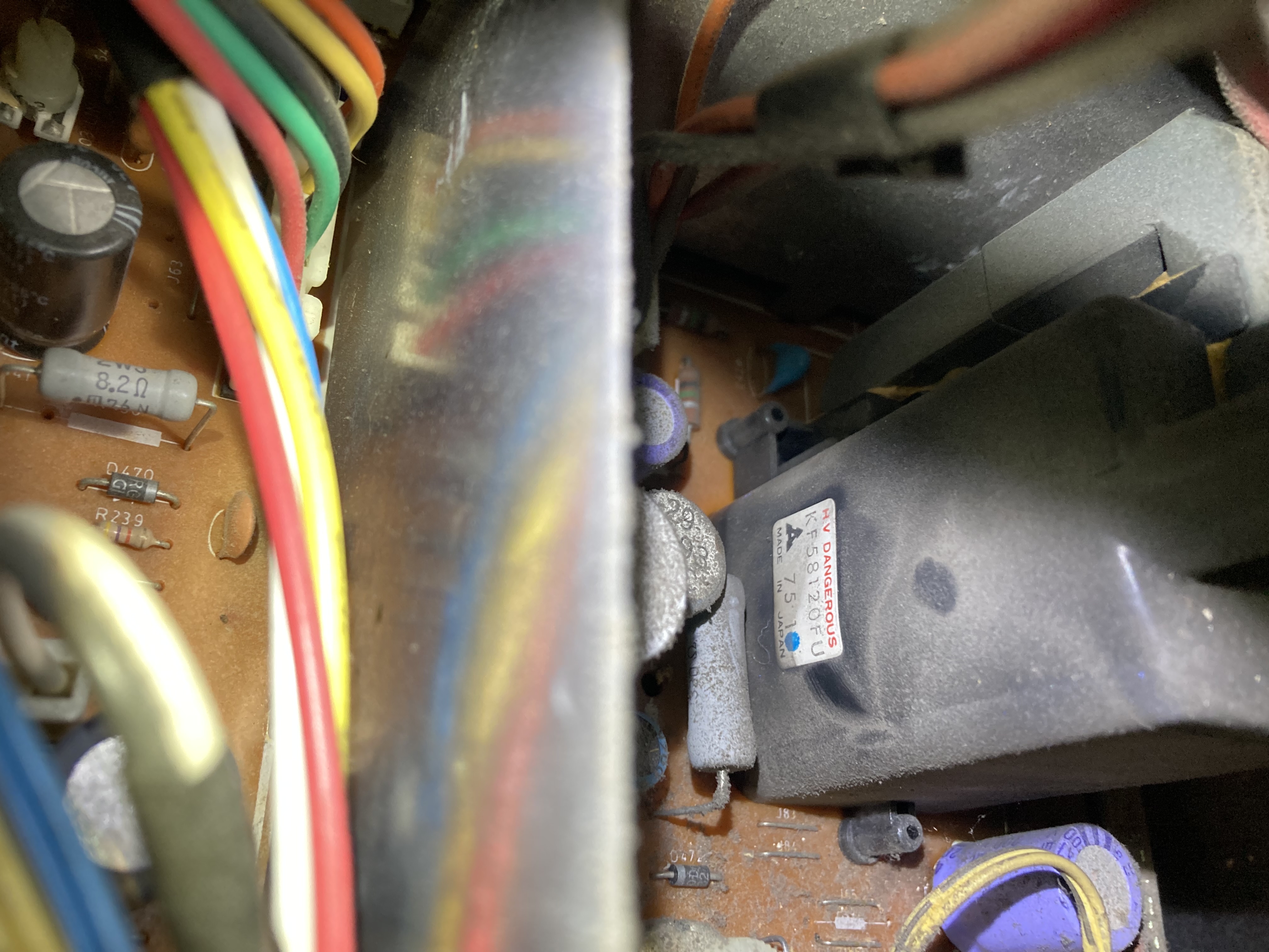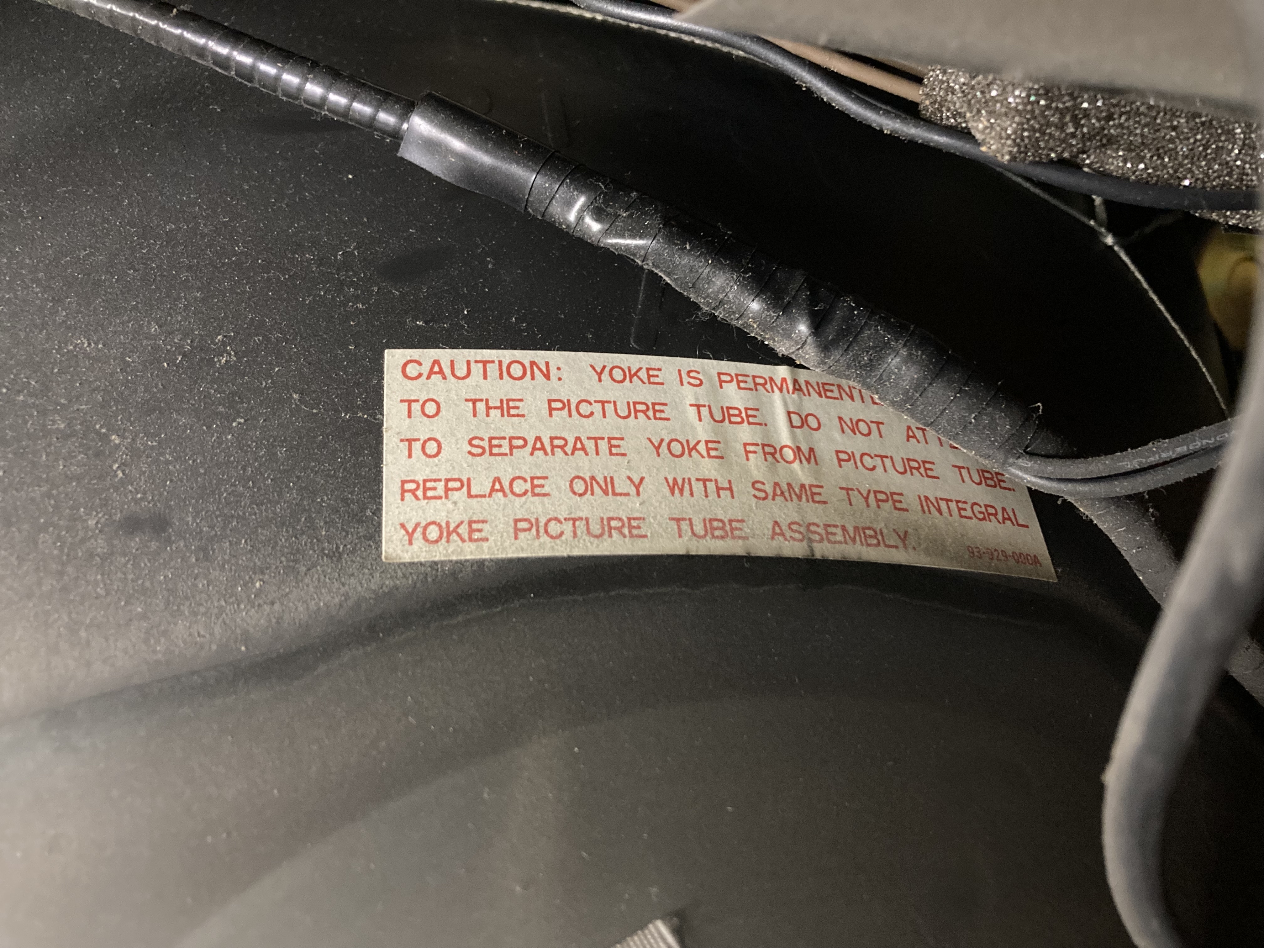 Yoke is bonded to picture tube. This set utilized at least two different tube models that we know of.