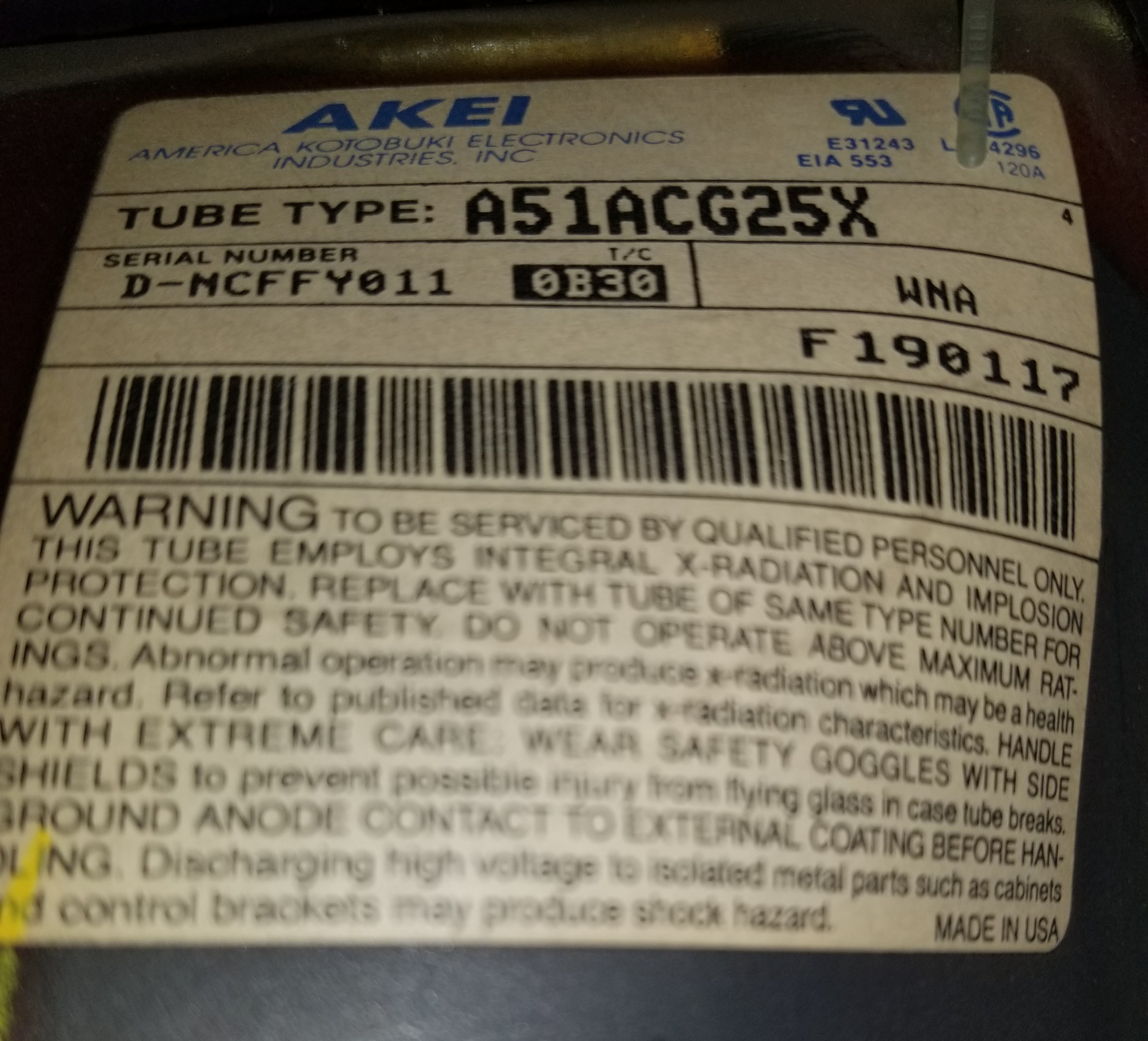 | Tube: | A51ACG25X |