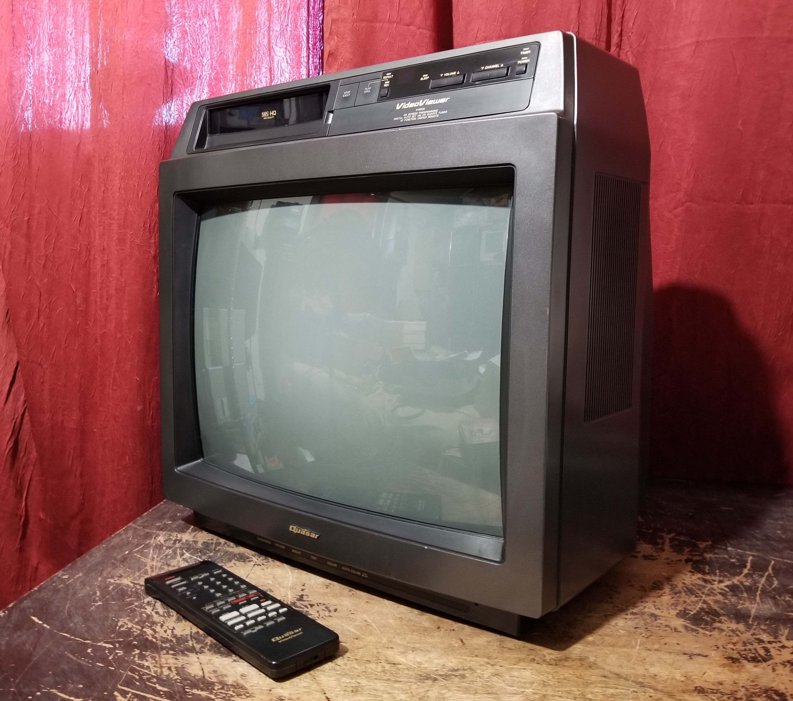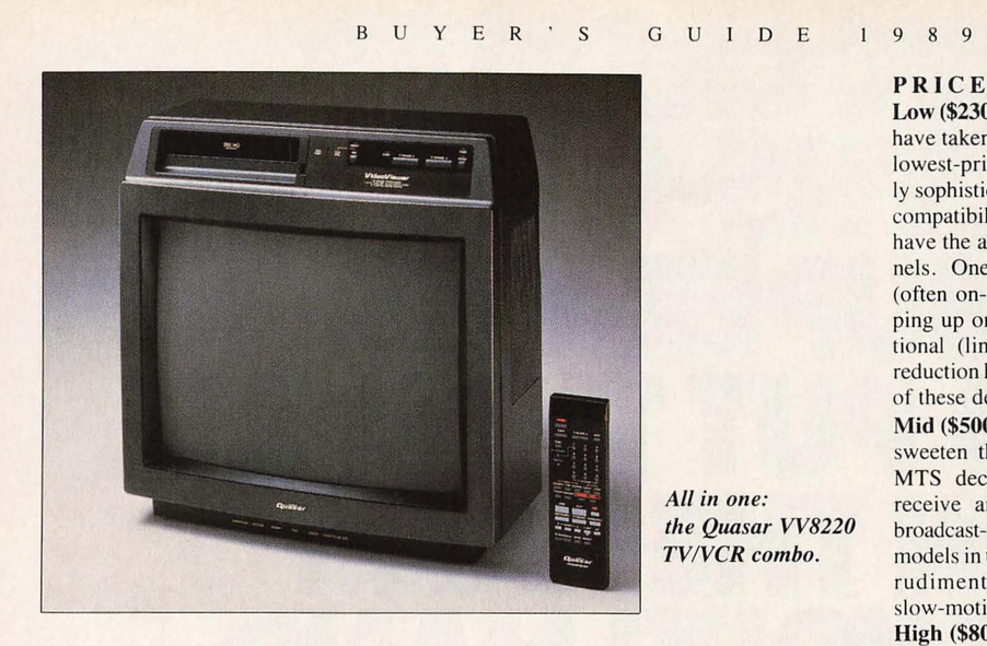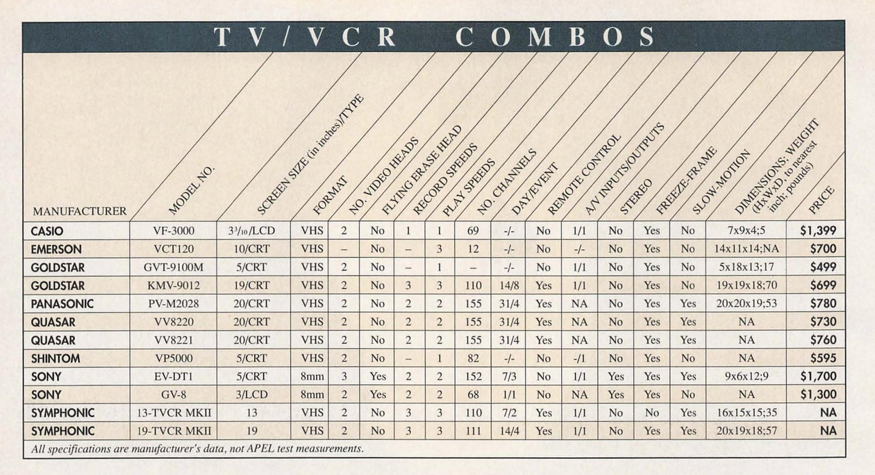 Monitor video cassette recorder 20" color T.V. Auto color control. Auto power on/off. Auto rewind/auto eject. Power off eject. High-speed picture search; double-speed playback; variable slow motion; still-frame/frame-advance; Auto repeat.