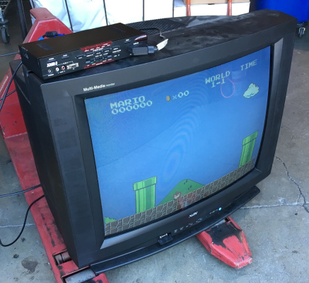 32" presentation monitor by NetTV, introduced in 1999. Originally manufactured by Sampo in Taiwan. Has composite, s-video, and VGA input with bassy stereo speakers. Intended for institutional and professional environments.