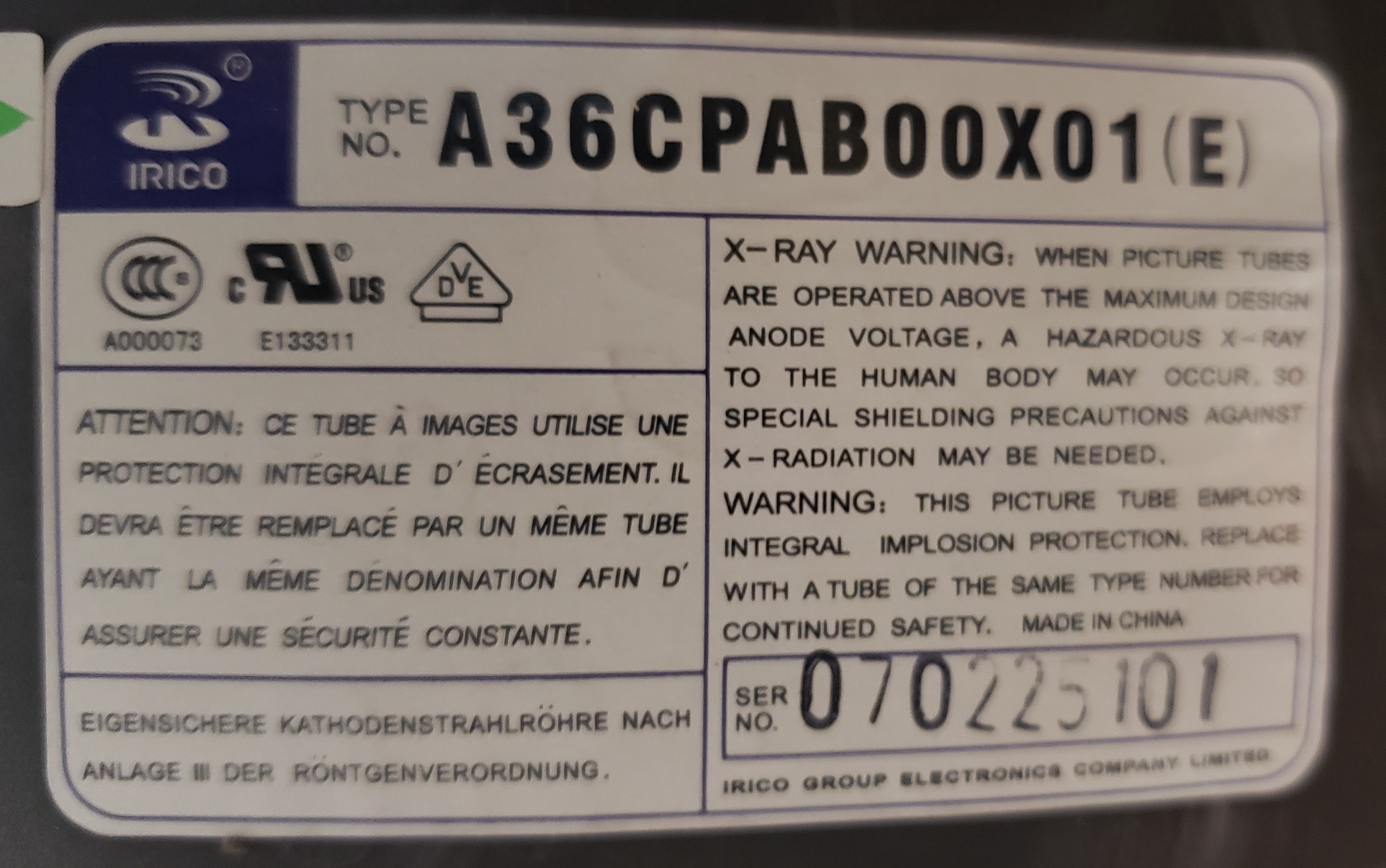 Tube: | Irico , A36CPAB00X , A36CPAB00X01 |