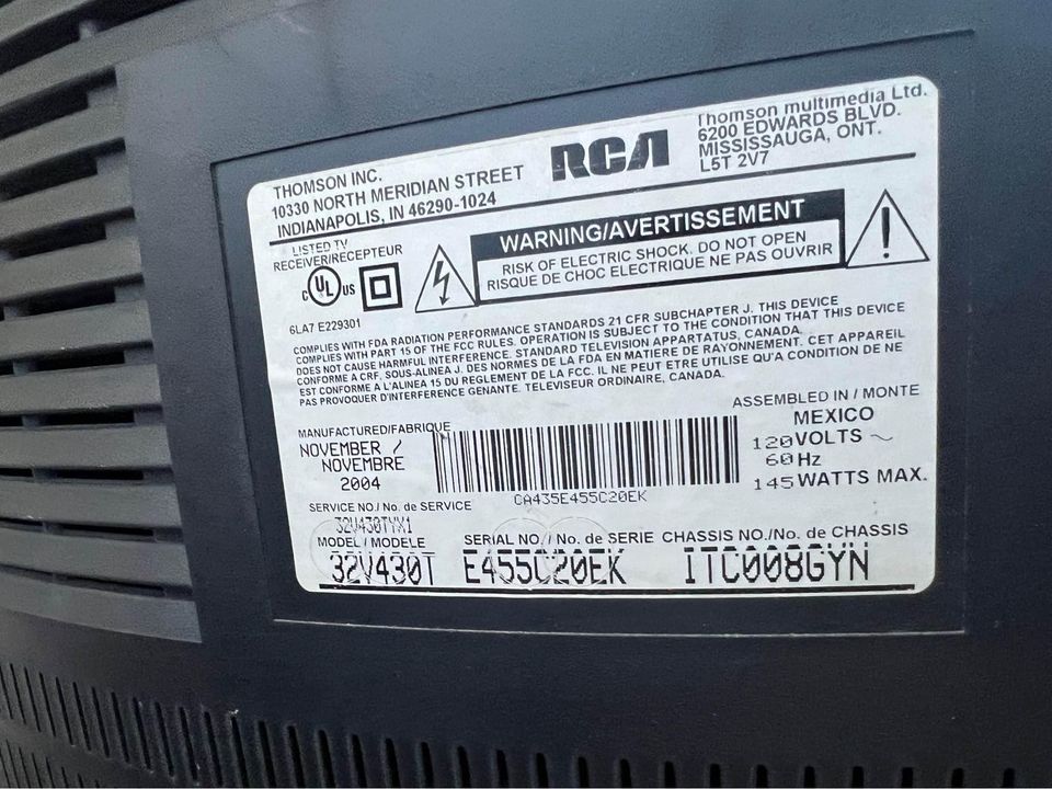 A surprisingly excellent set by RCA. Has a full set of inputs. One of their very last ones made by Thomson's Mexico facility before merging with TCL.