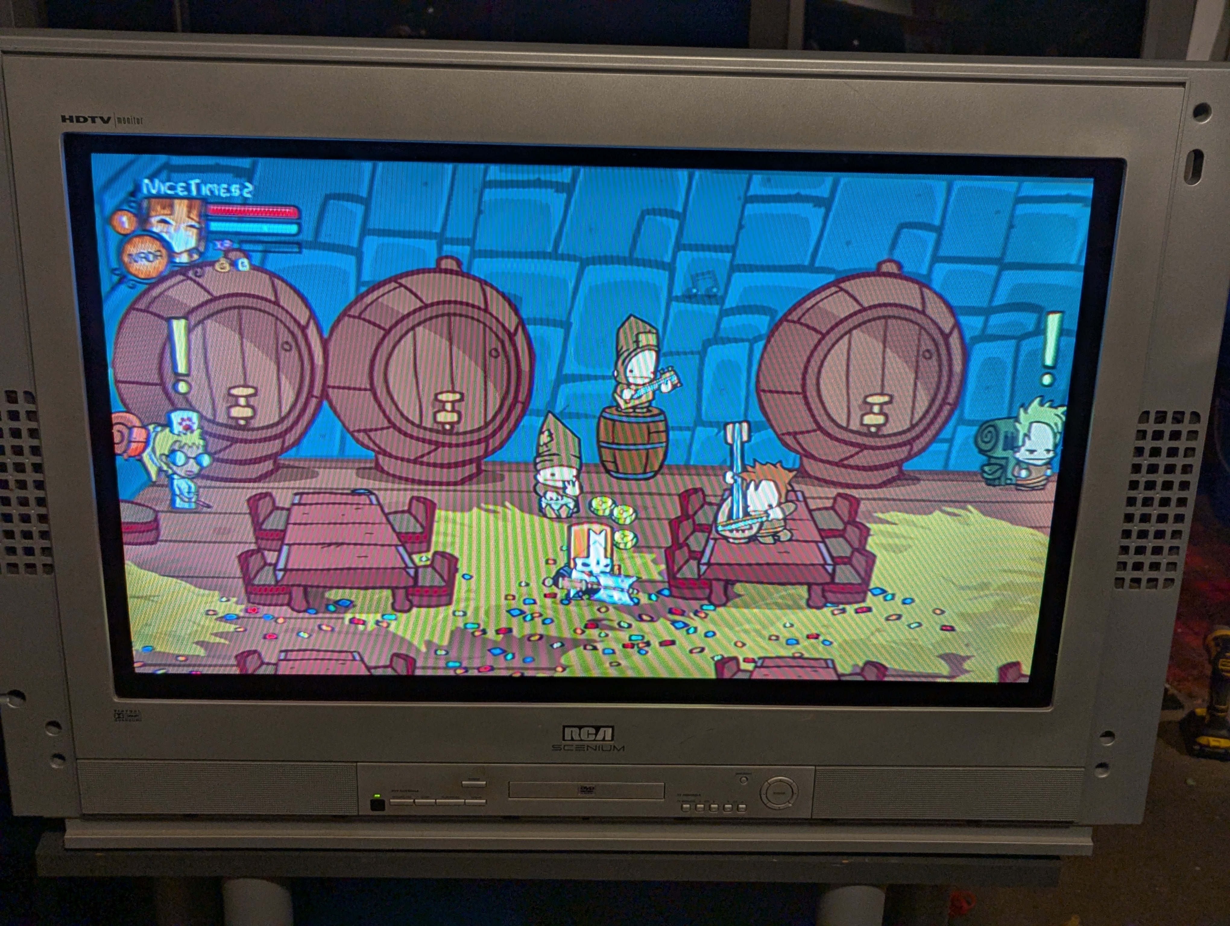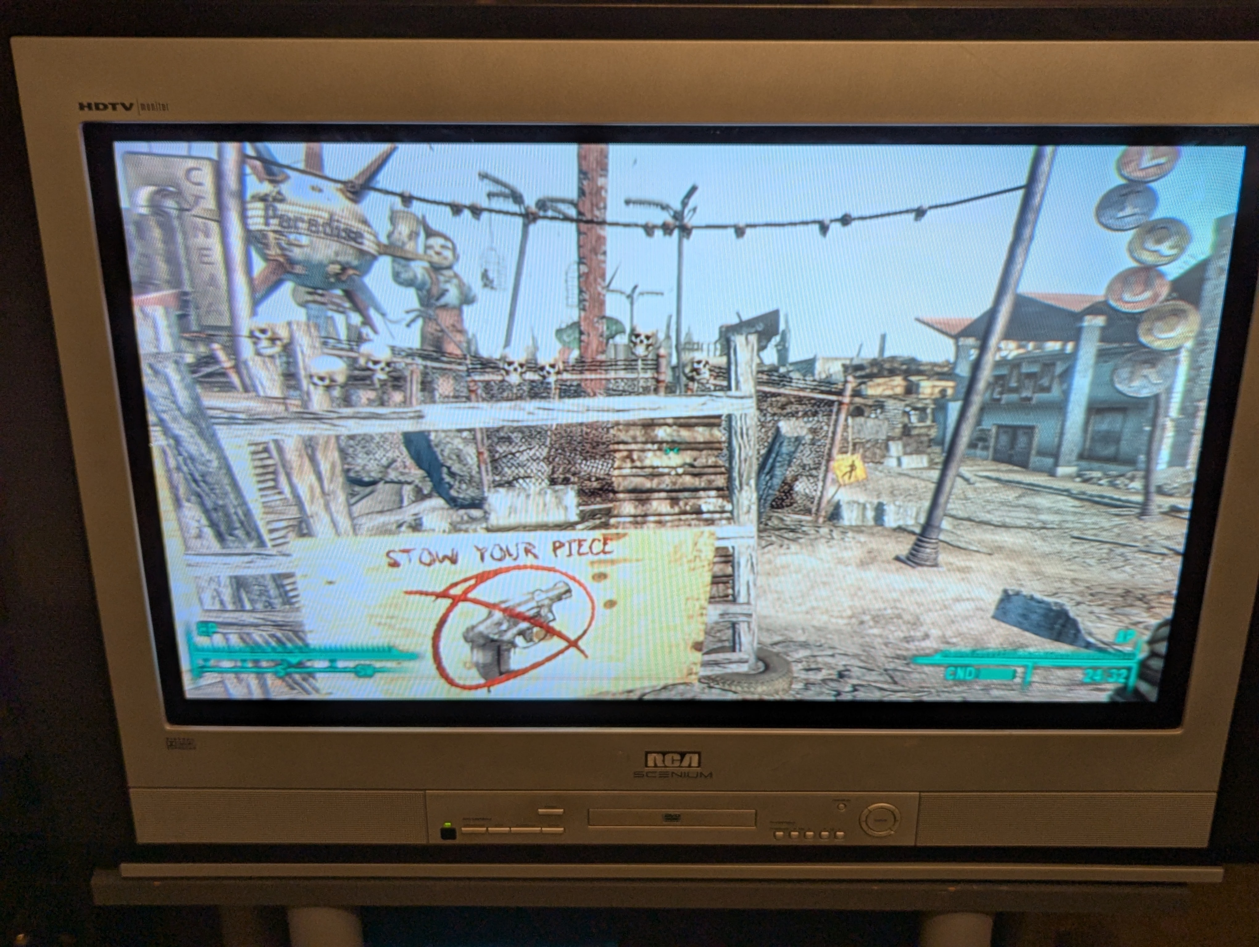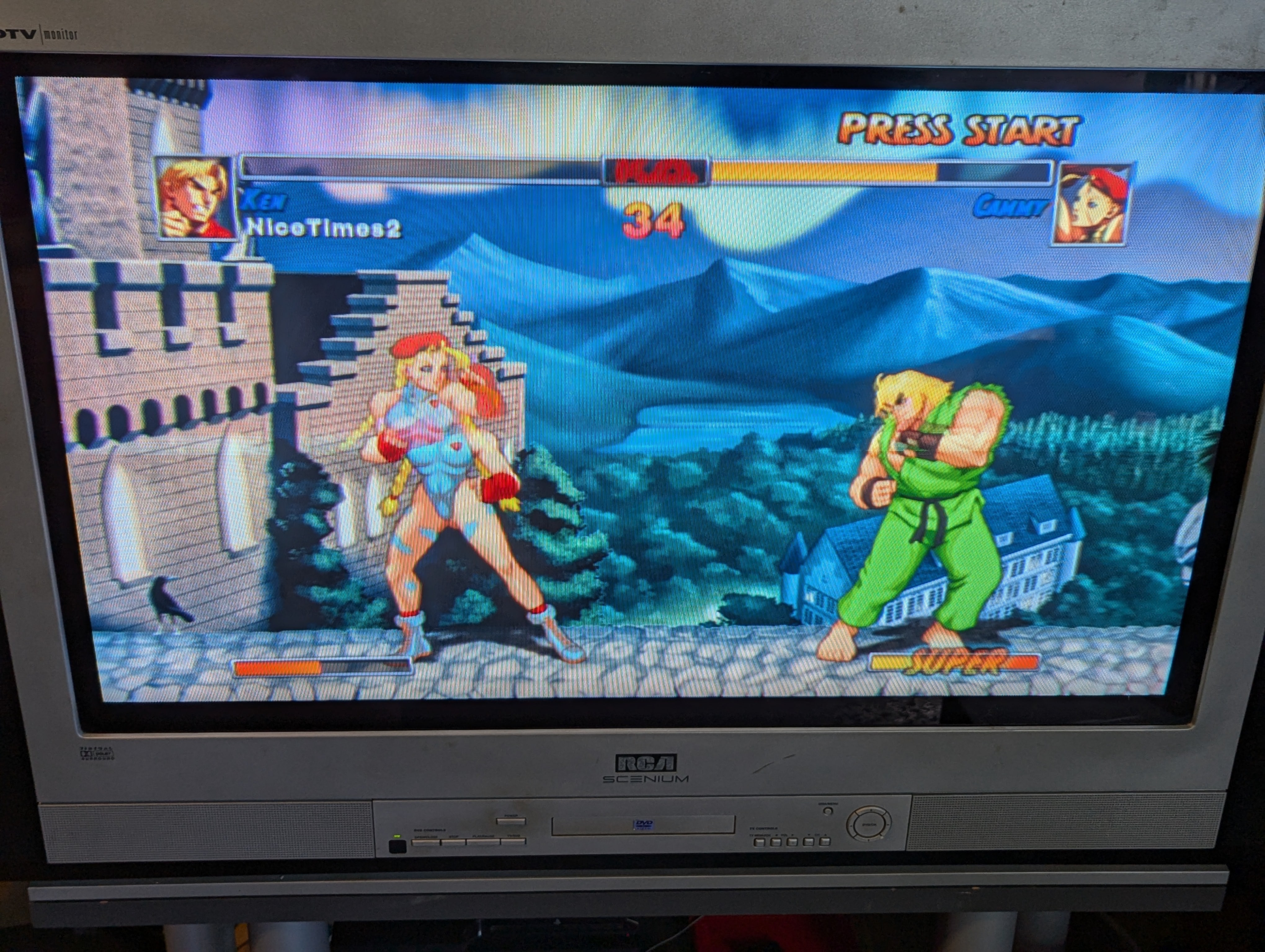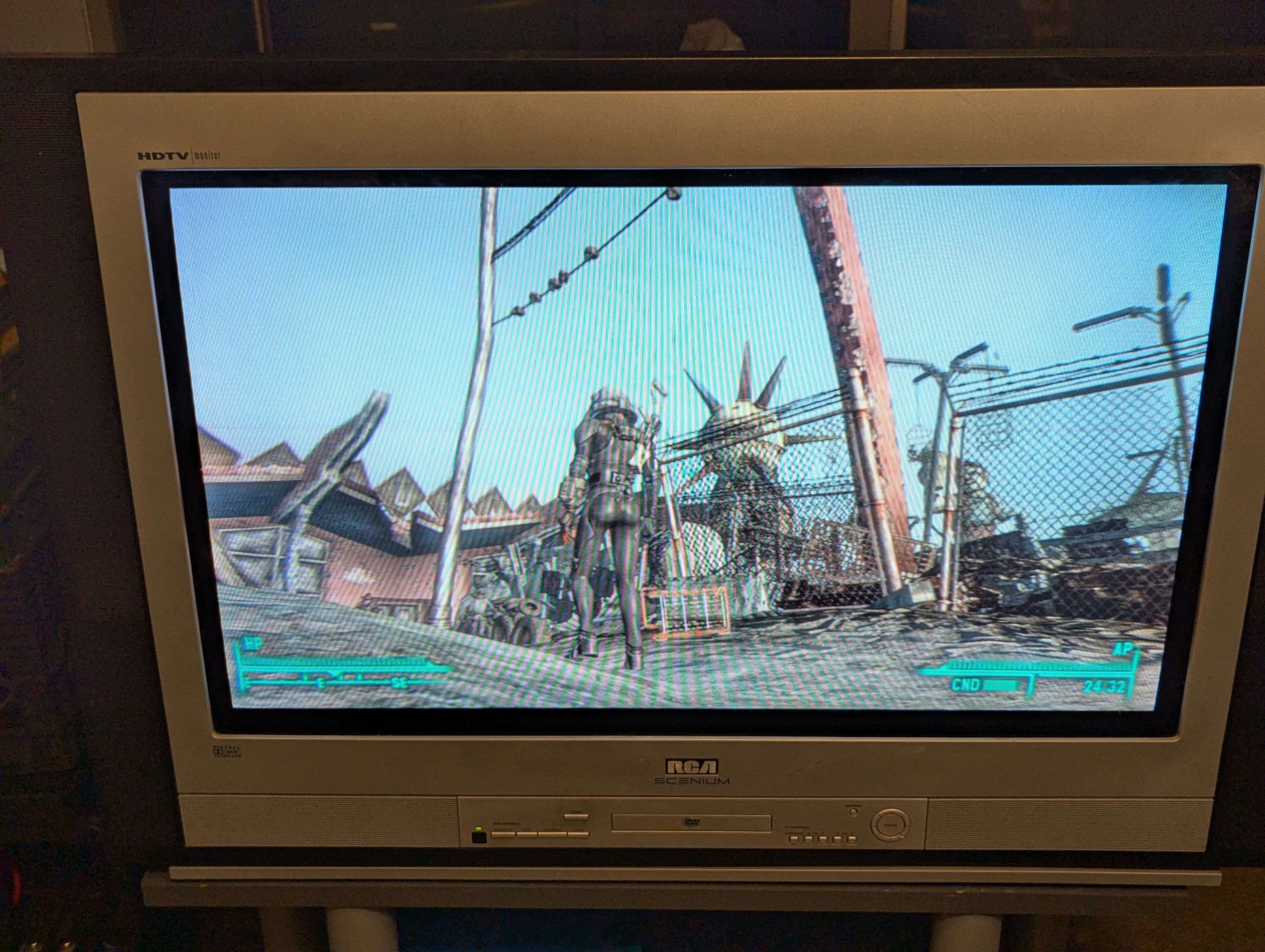 One of the RCA's first flat HD CRT TVs. This is a higher-end model compared to the D34W20 in that it has a built-in DVD player. Made by Thomson in Mexico, in 2002. Uses a special 34" Toshiba Microfilter tube made in Japan.