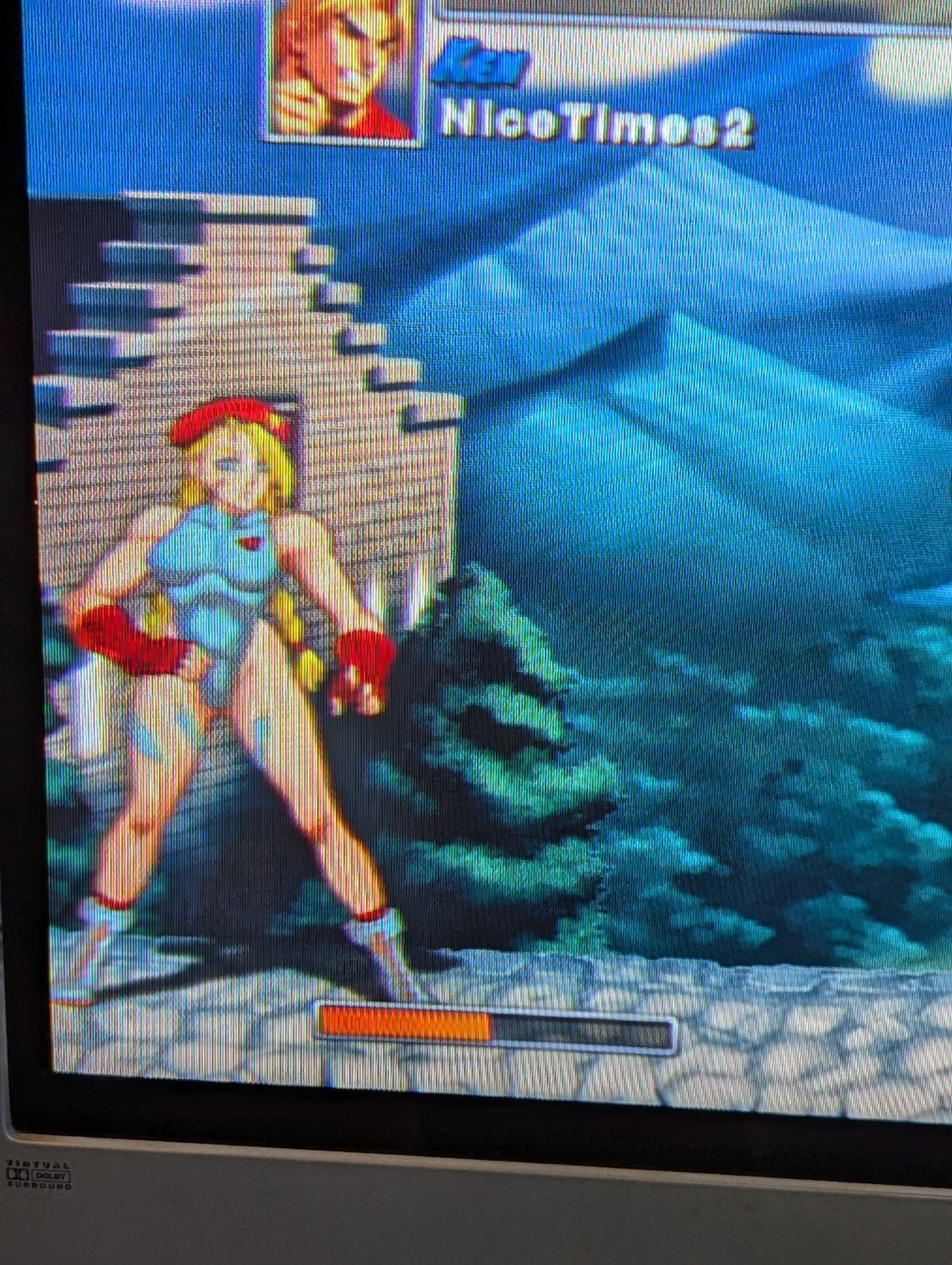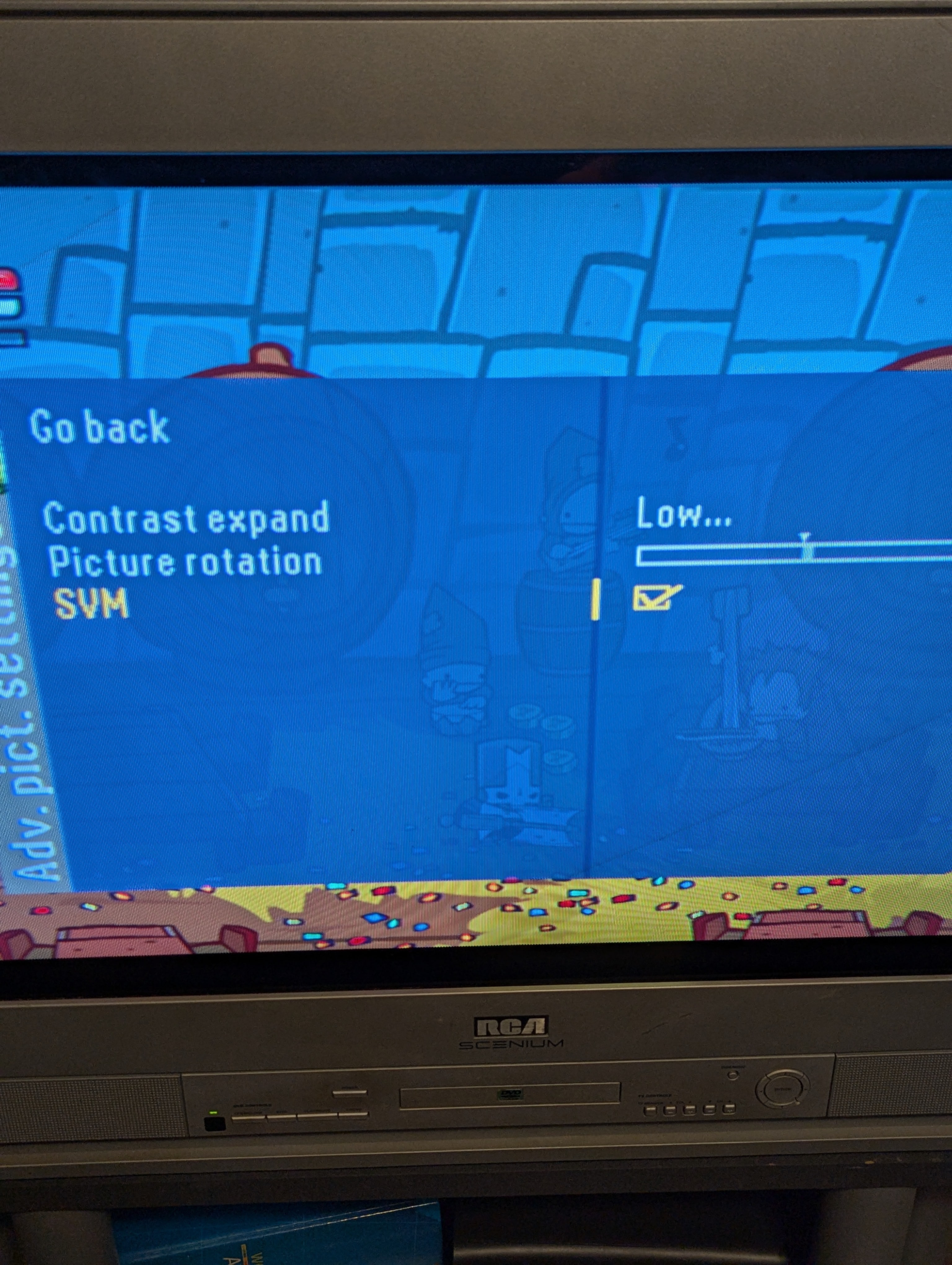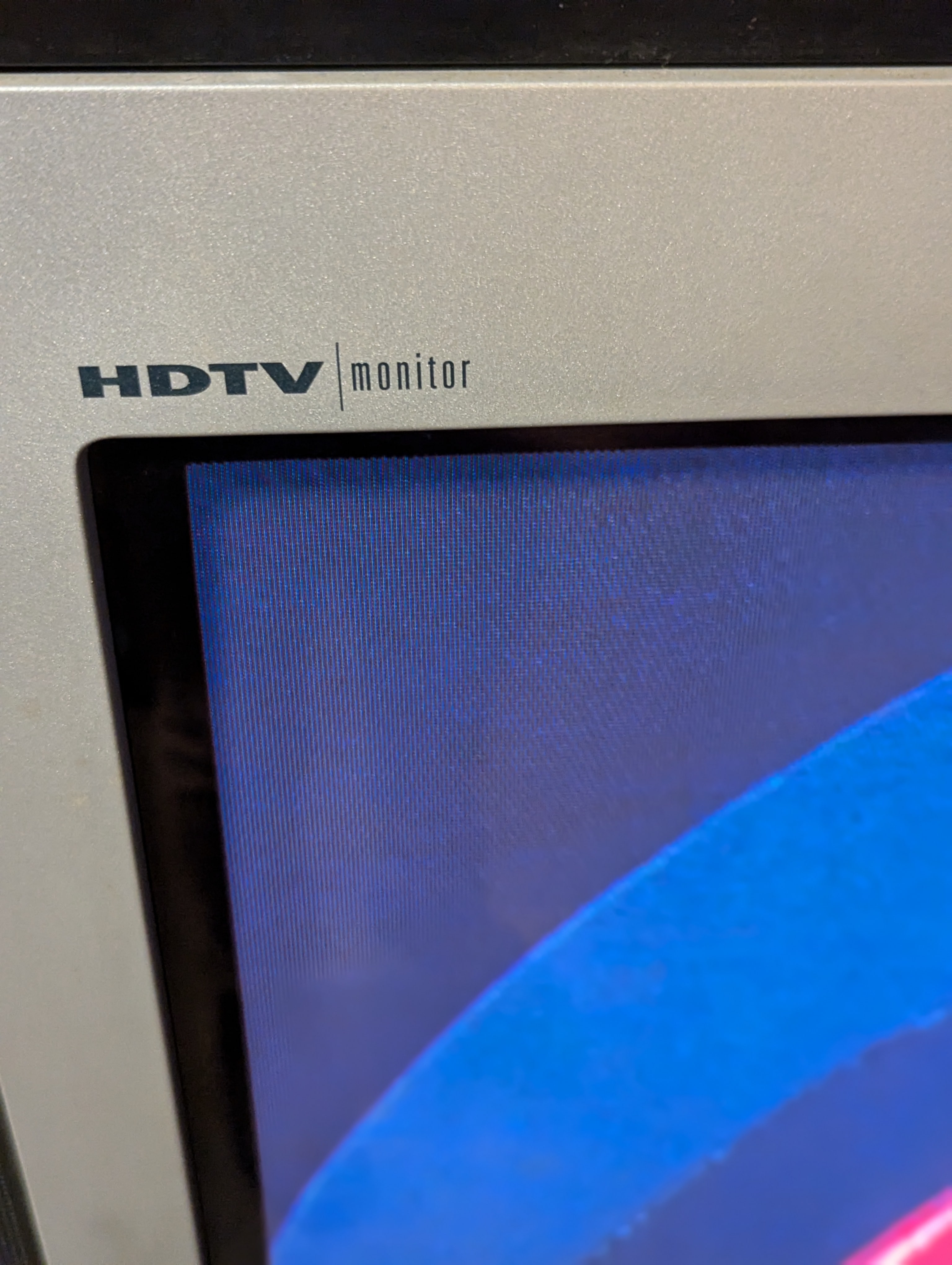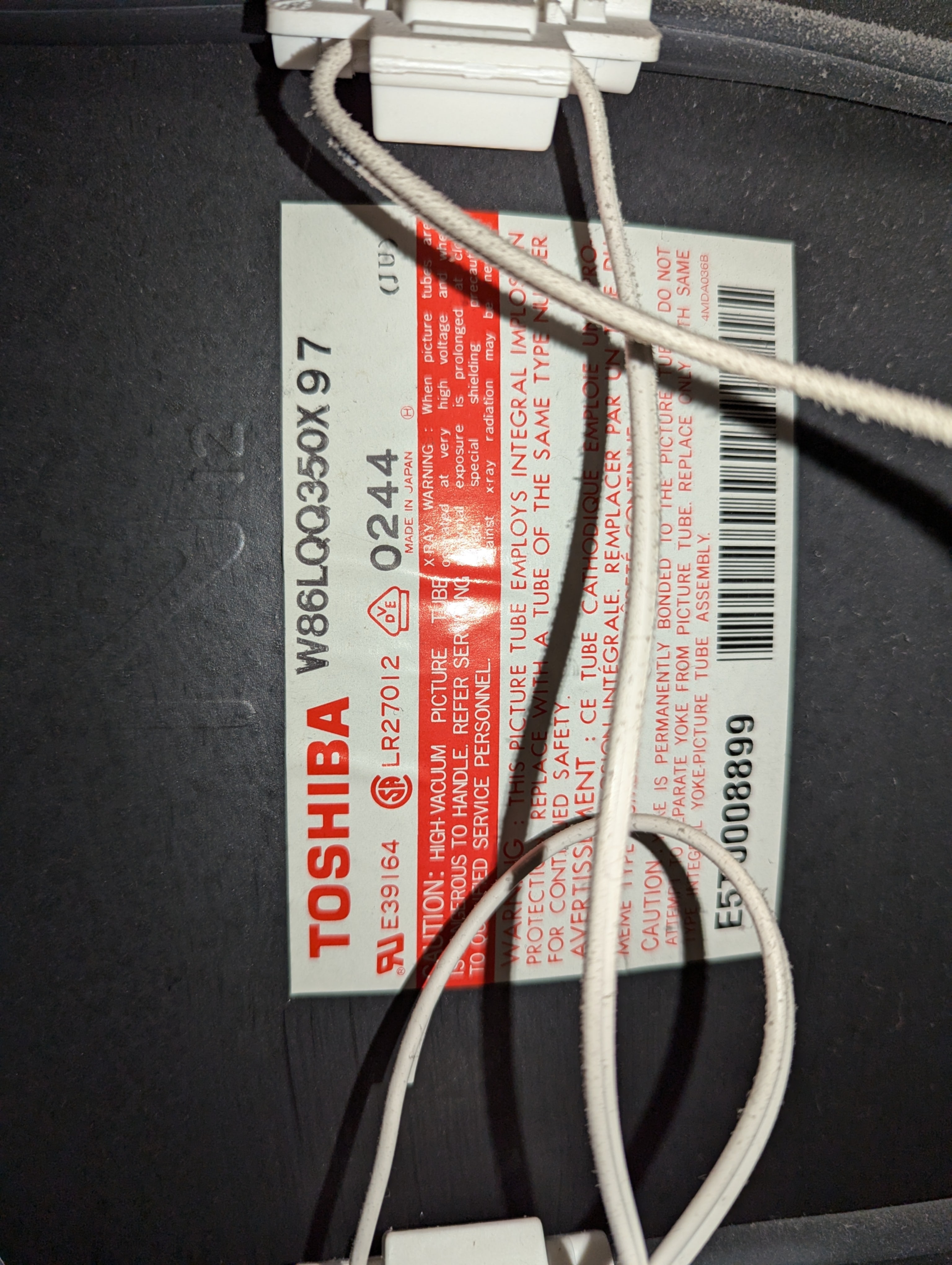 This CRT uses Microfilter, a technology innovation by Toshiba that aimed to optimize both brightness and contrast without darkening the glass with tint.