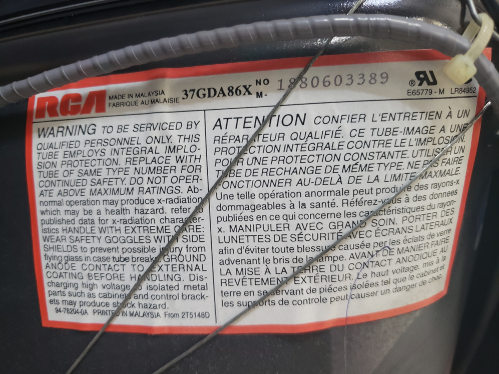 This CRT is confirmed to be a hot chassis, possibly with very slow high voltage bleeding.