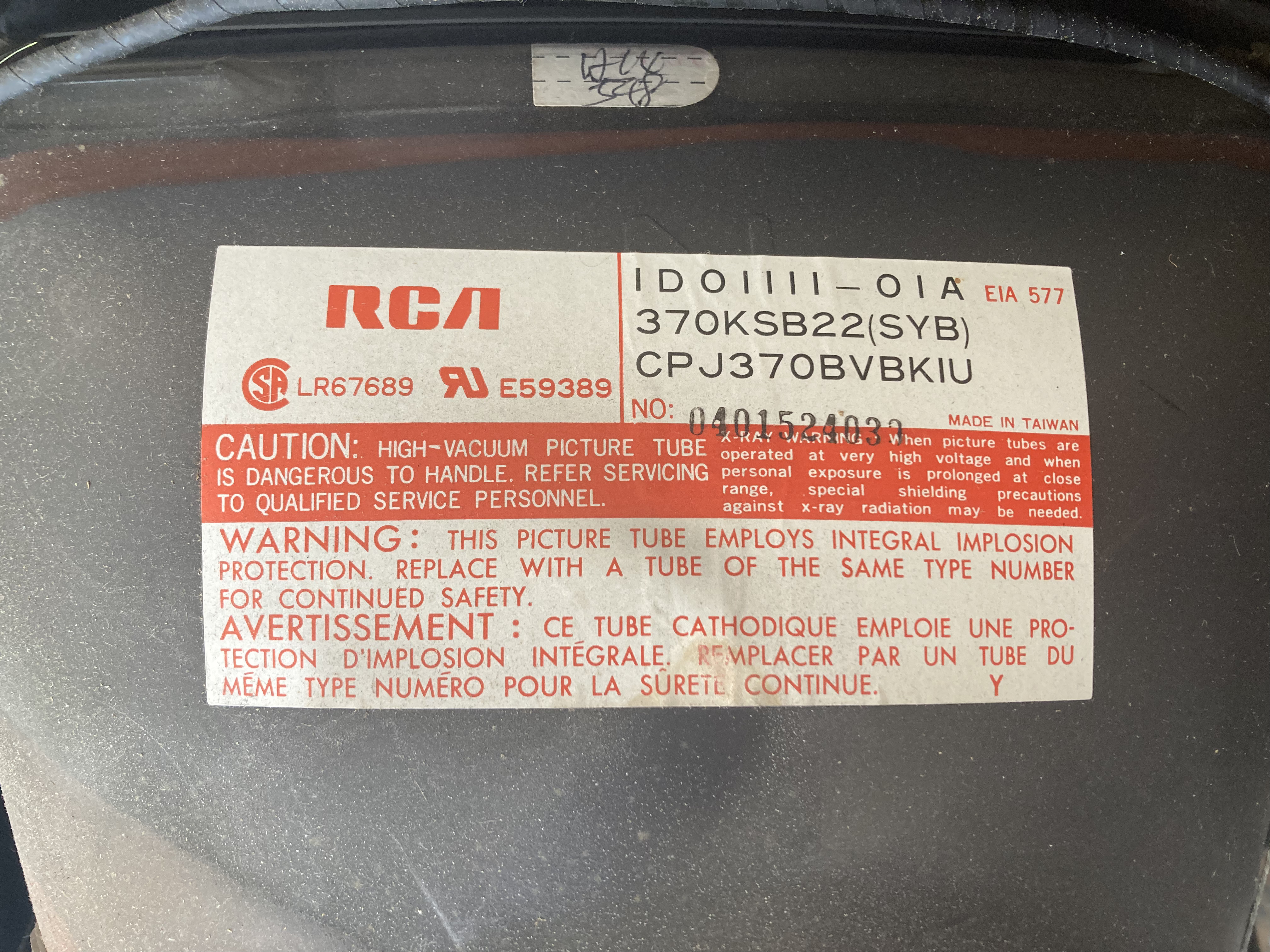 | Tube: | Toshiba , 370KSB22 , CPJ370BVBK1U |