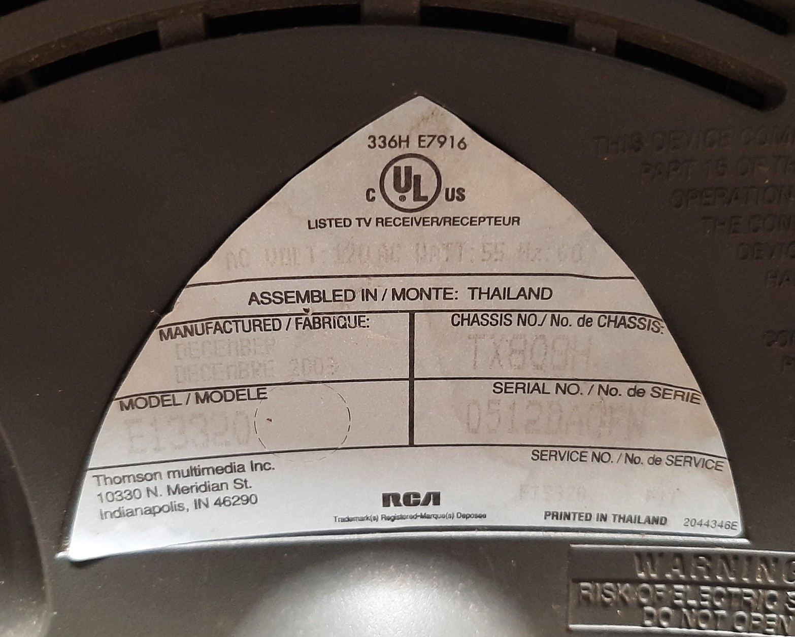 Tube: | A34JXV70X , Thai CRT Co. , A34JXV70X14 |