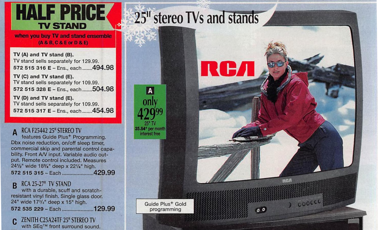 25" Stereo TV. Dbx noise reduction. Front A/V inputs. Optimum Contrast screen. Proof that it only takes a little money to buy a lot of happiness. Looking for quality picture and sound, convenient features and unsurpassed affordability? You've come to the right place. RCA Television models deliver the goods, providing a sharp, bright picture and rich sound to any room, along with remote control convenience and extras like auto color control, sleep timer and channel labeling. Of course the best extra of all: the quality and reliability of the RCA brand, a name trusted for generations.