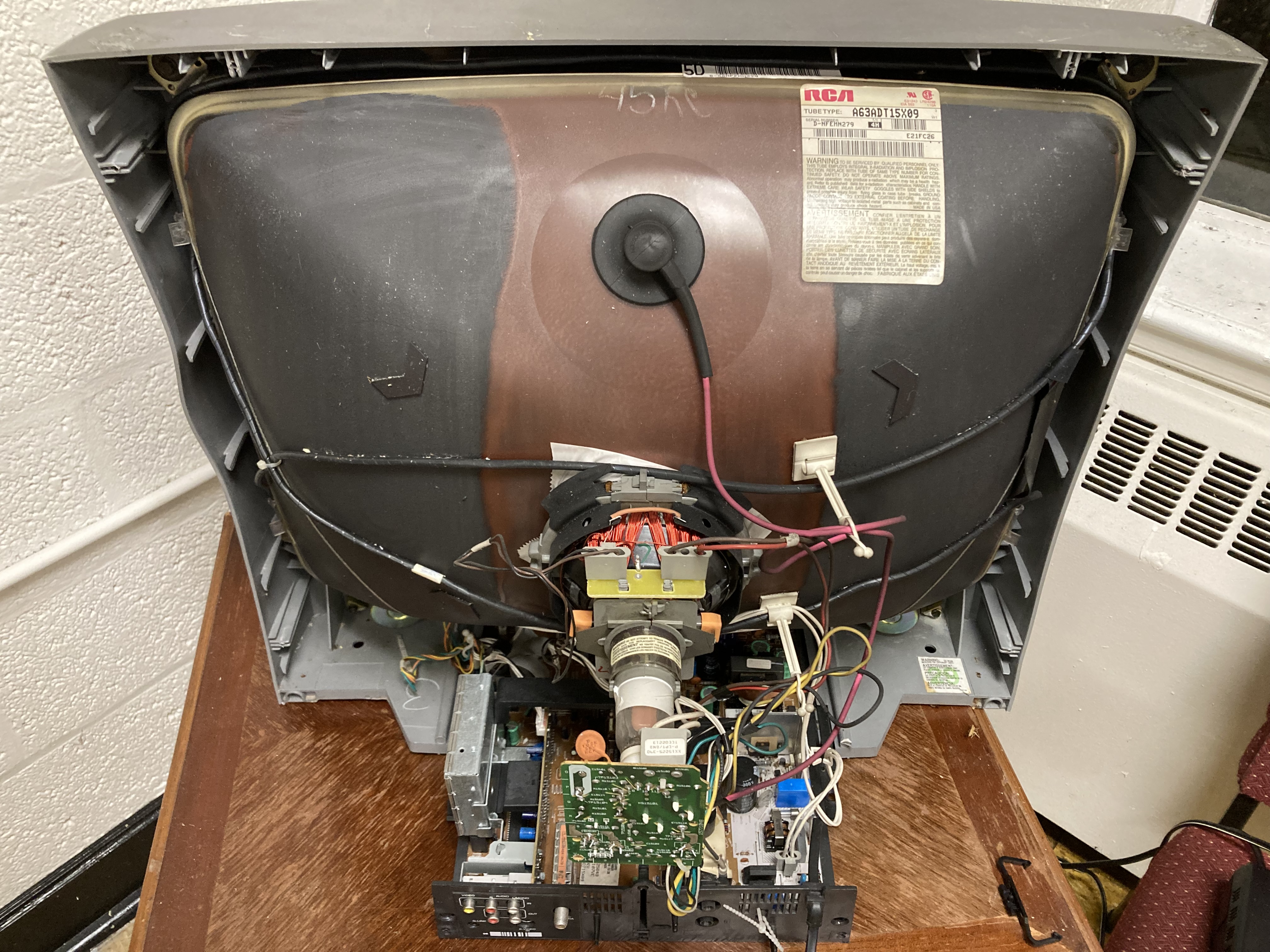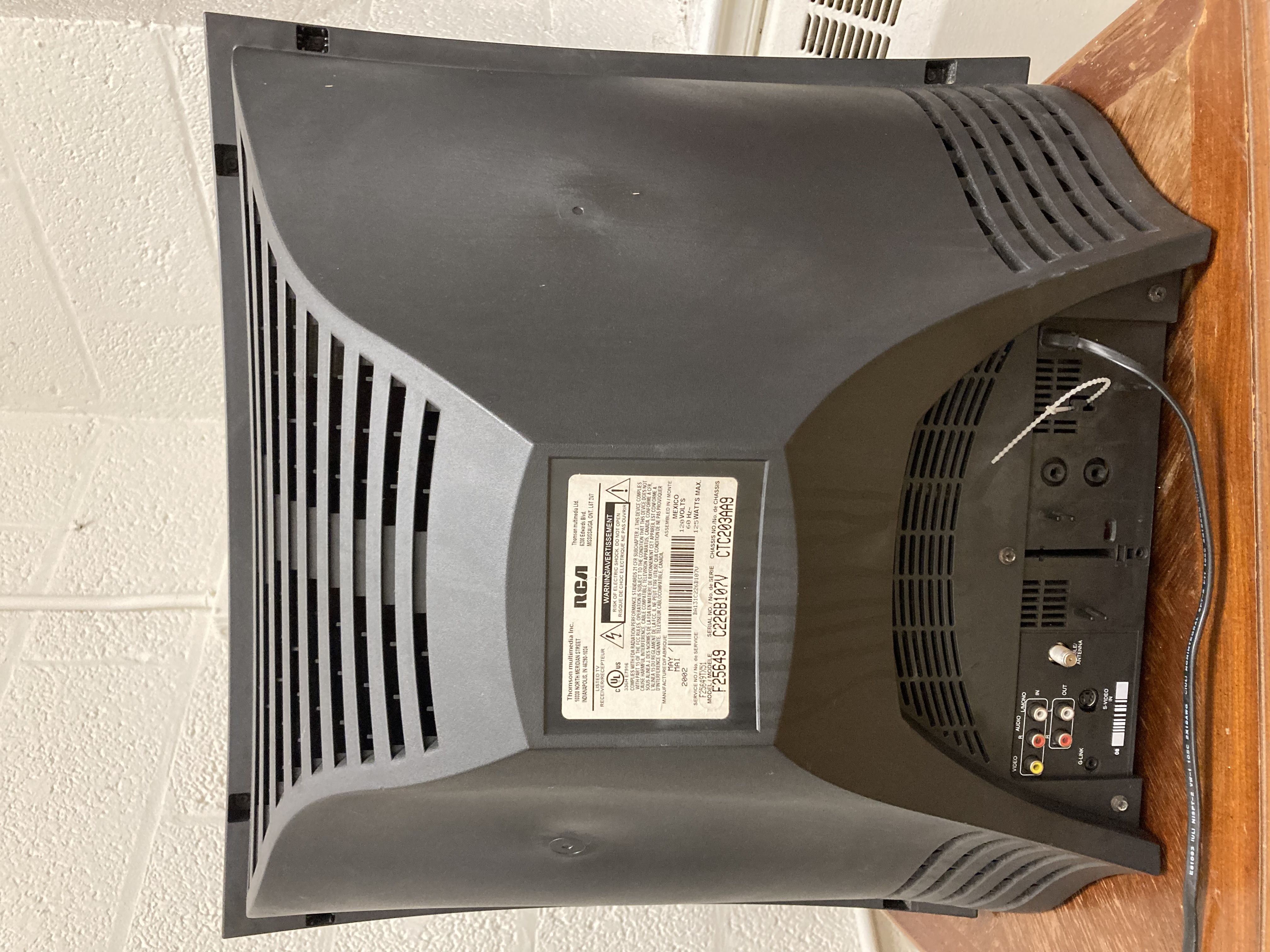 A nice 25" RCA CRT with s-video, a rare combination. Made in 2002 in Mexico.