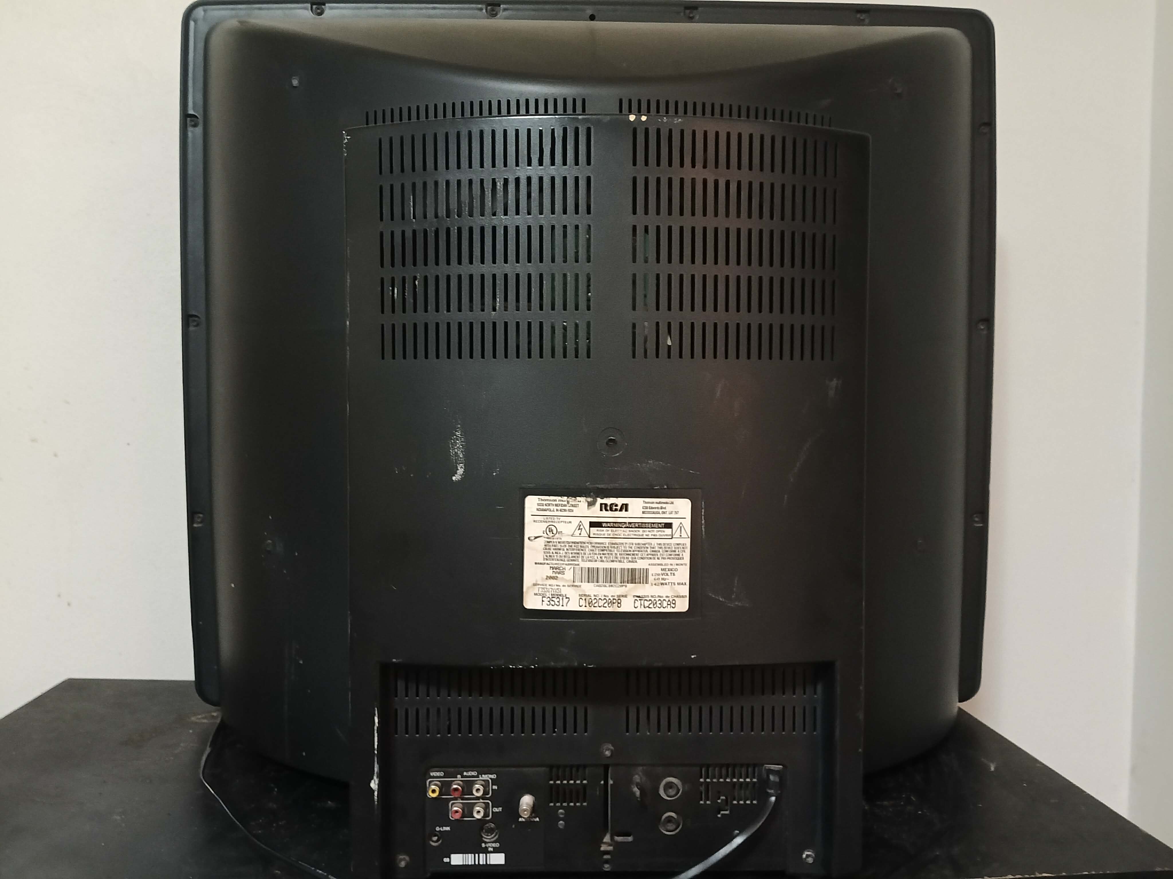 Midrange 35" TV by RCA, made by Thomson's Mexico factory in 1997. Has RF, composite, and s-video inputs with stereo sound.