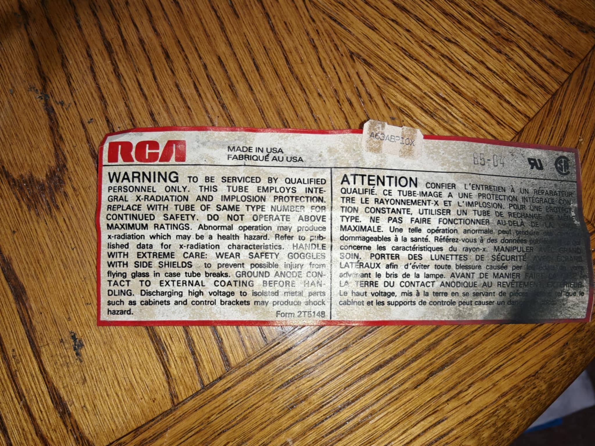 Tube: | RCA , A63ABP10X , A63ABU10X |