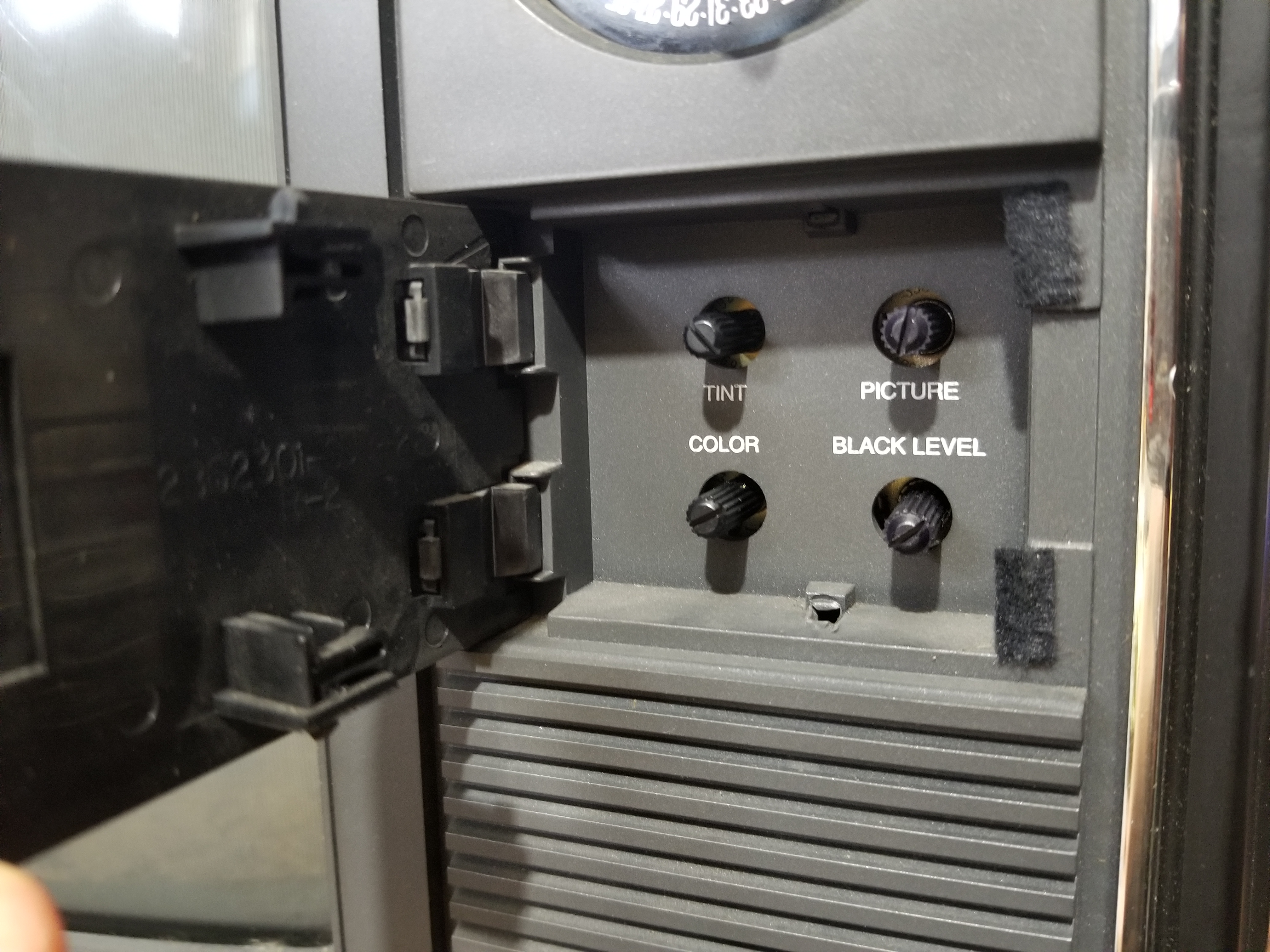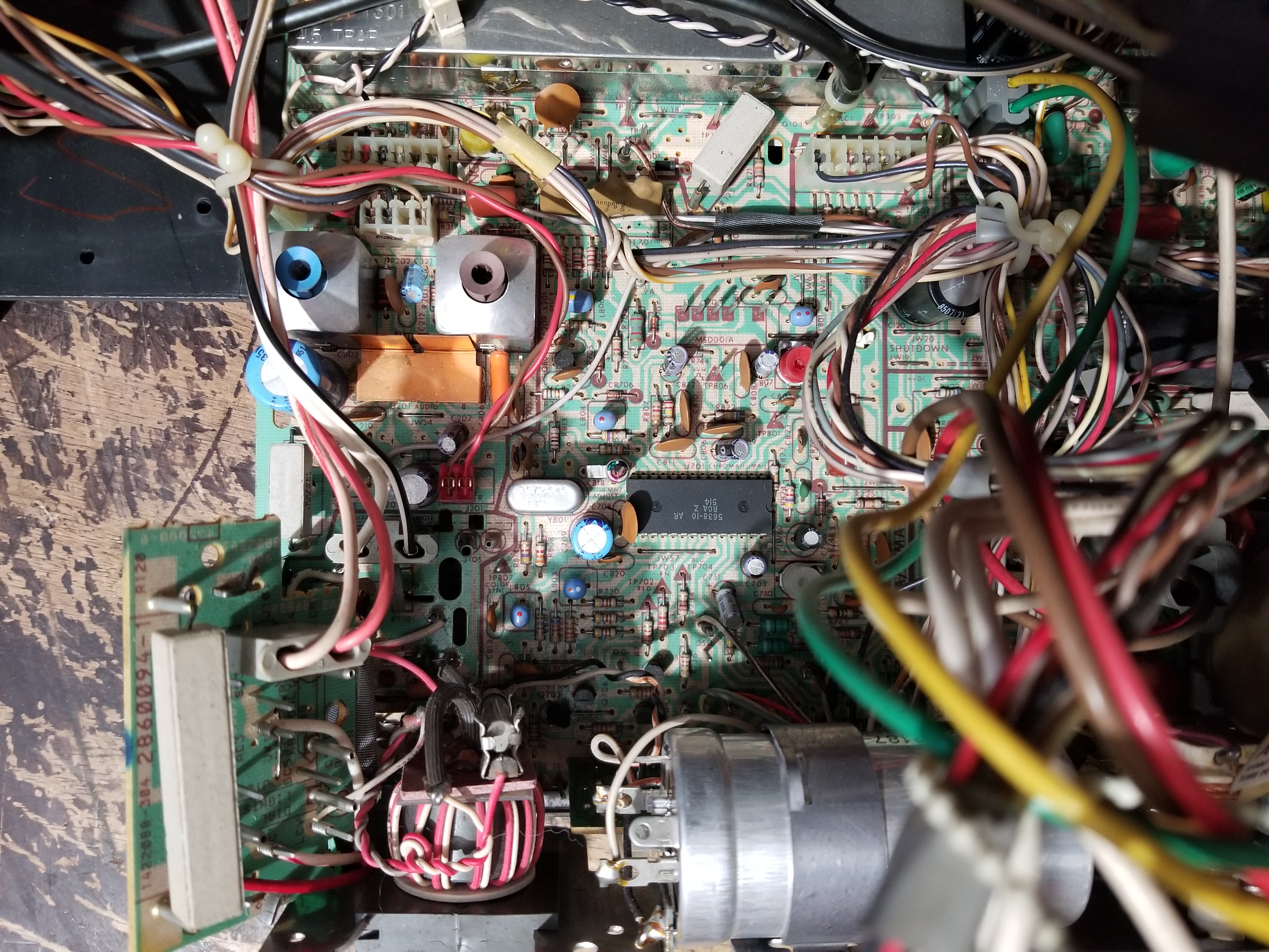 Unit pictured would not produce color - exact cause undetermined. Adjusting the variable capacitor connected to the 3.58 MHz crystal had no effect.