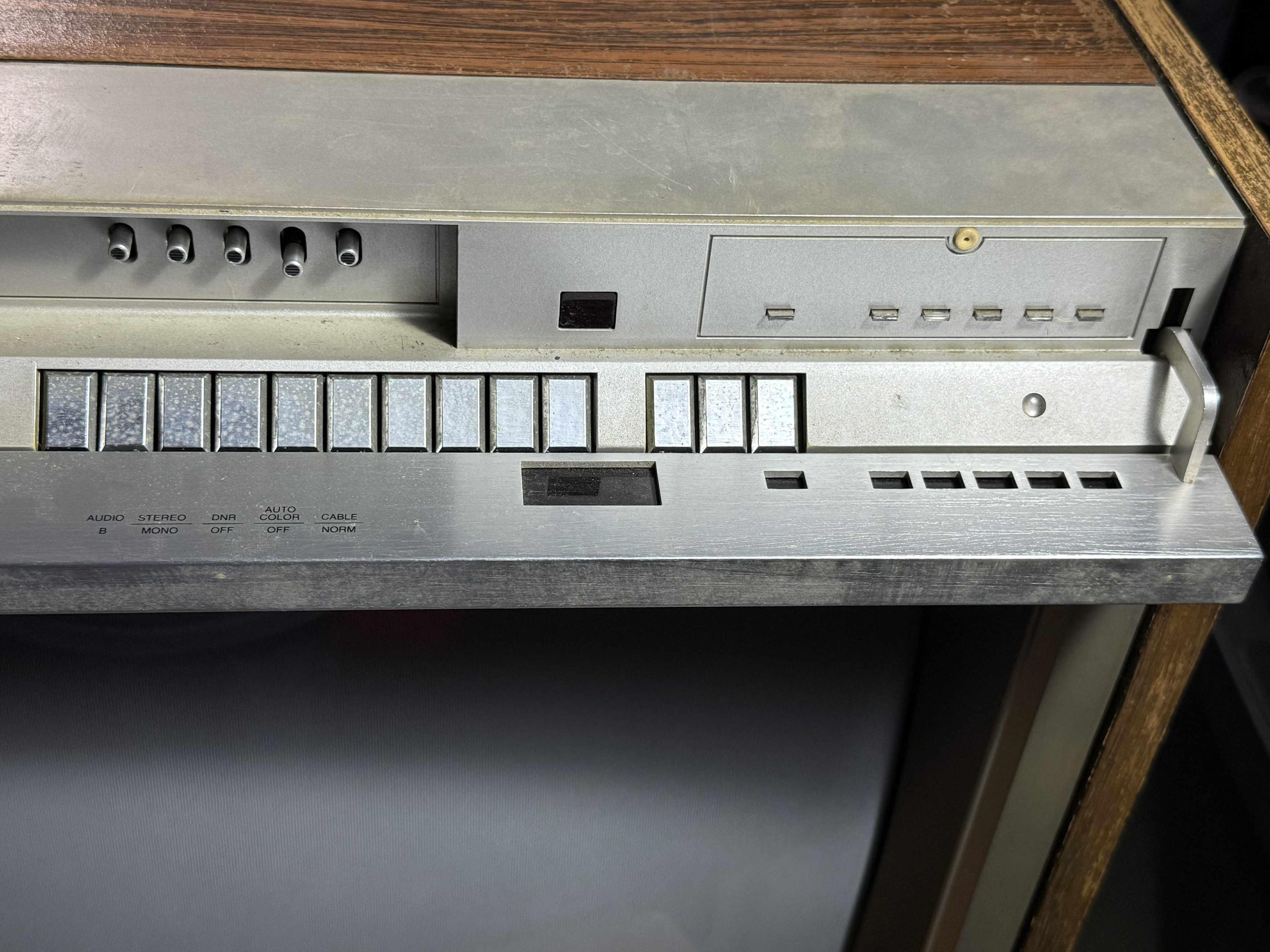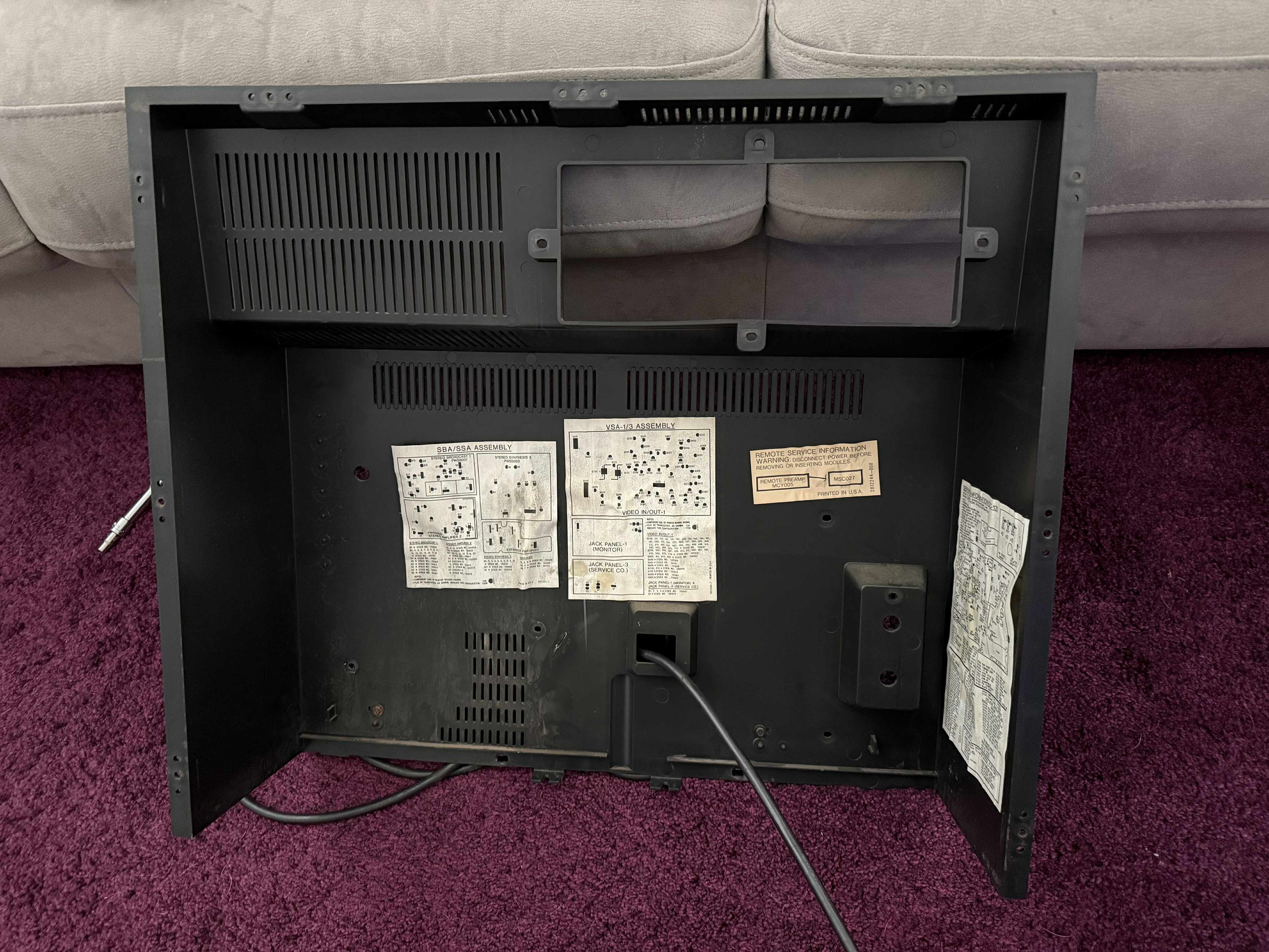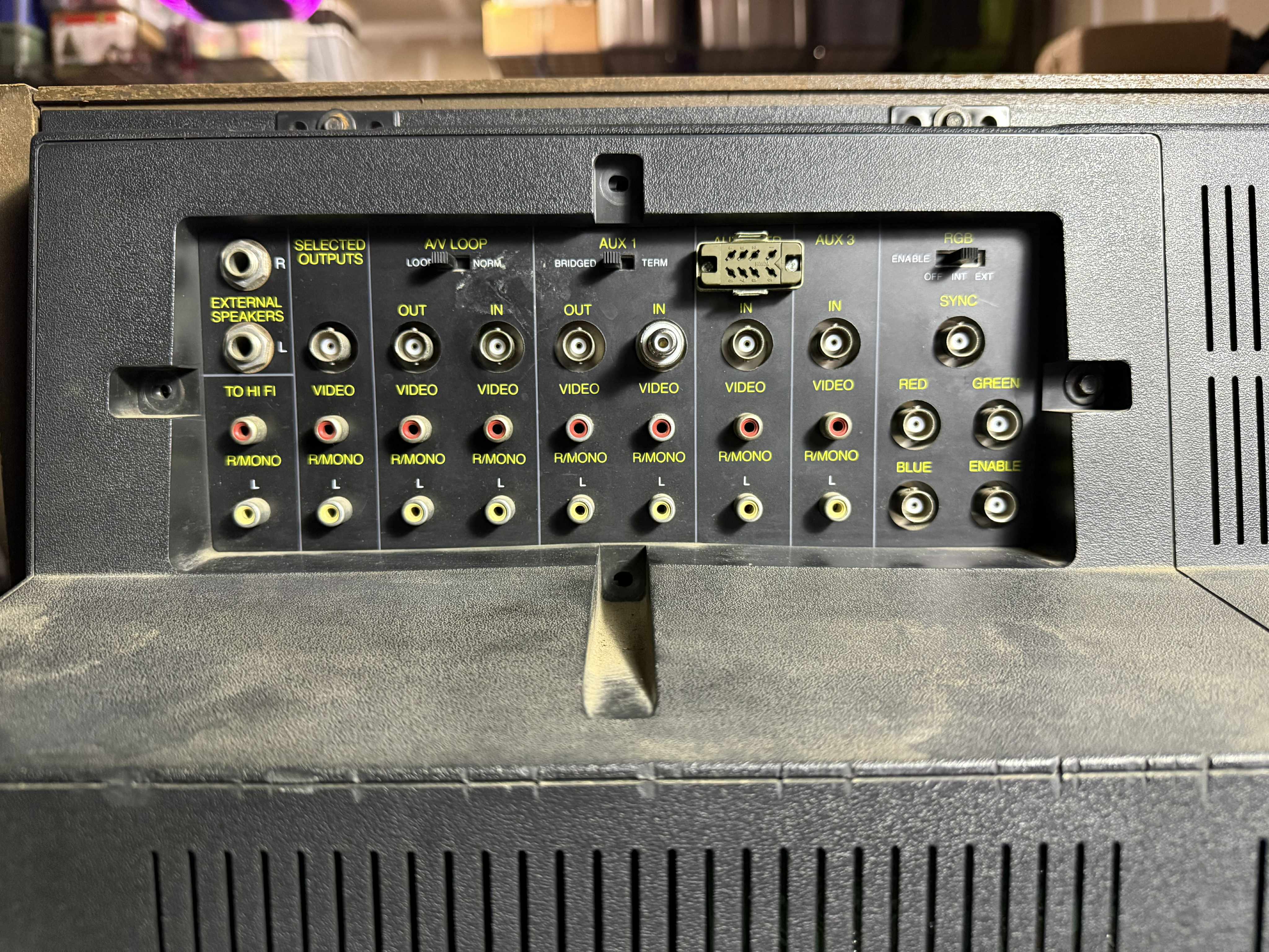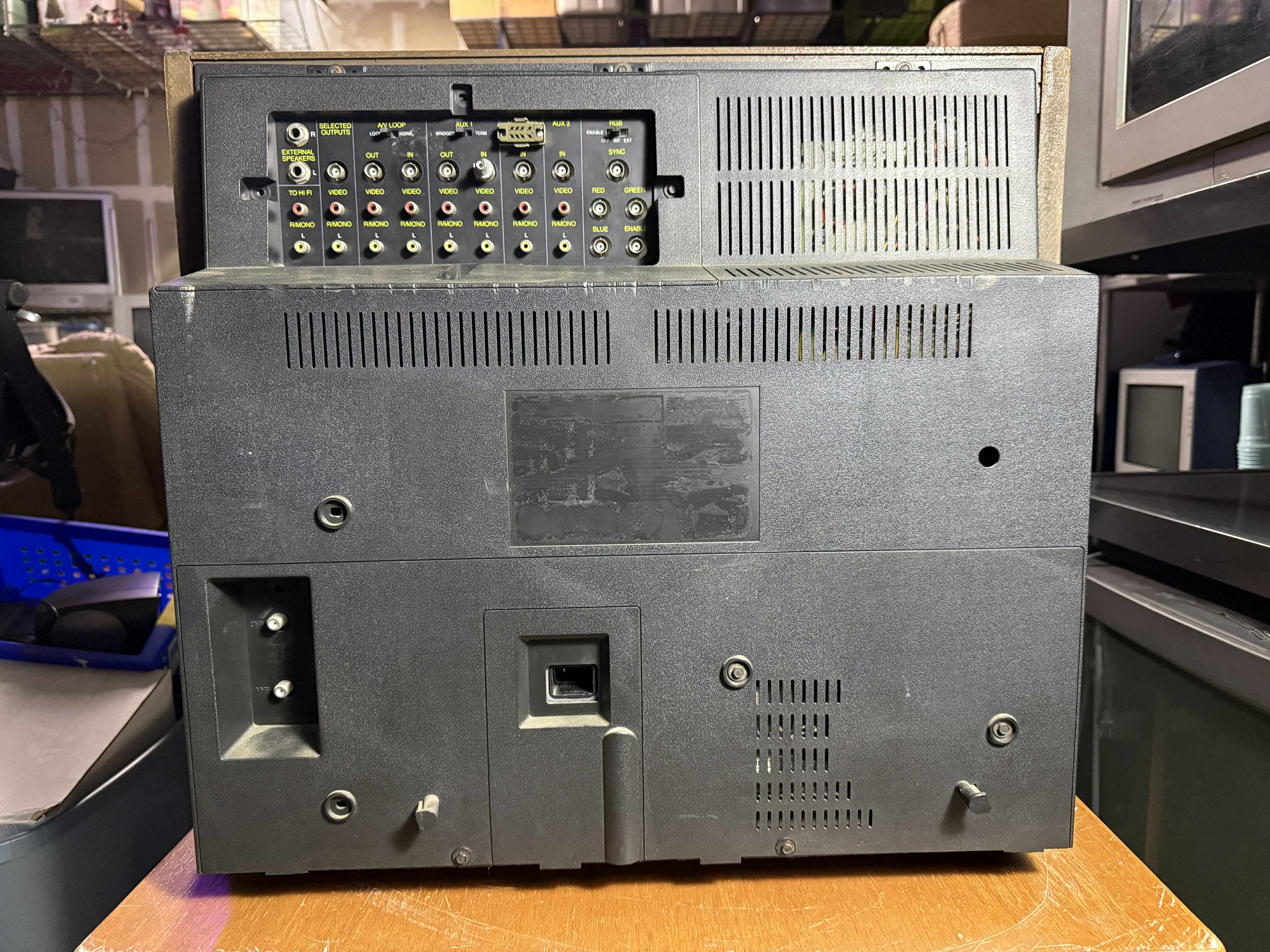 Higher-end 25" CRT by RCA, released in 1984. Has RF, composite and digital RGB inputs over BNC connections. The Lyceum sets were intended for use as presentation displays in schools and other institutions for video footage and computer graphics. Made in The USA, among the last of RCA's chassis before their buyout by Thomson in 1987.