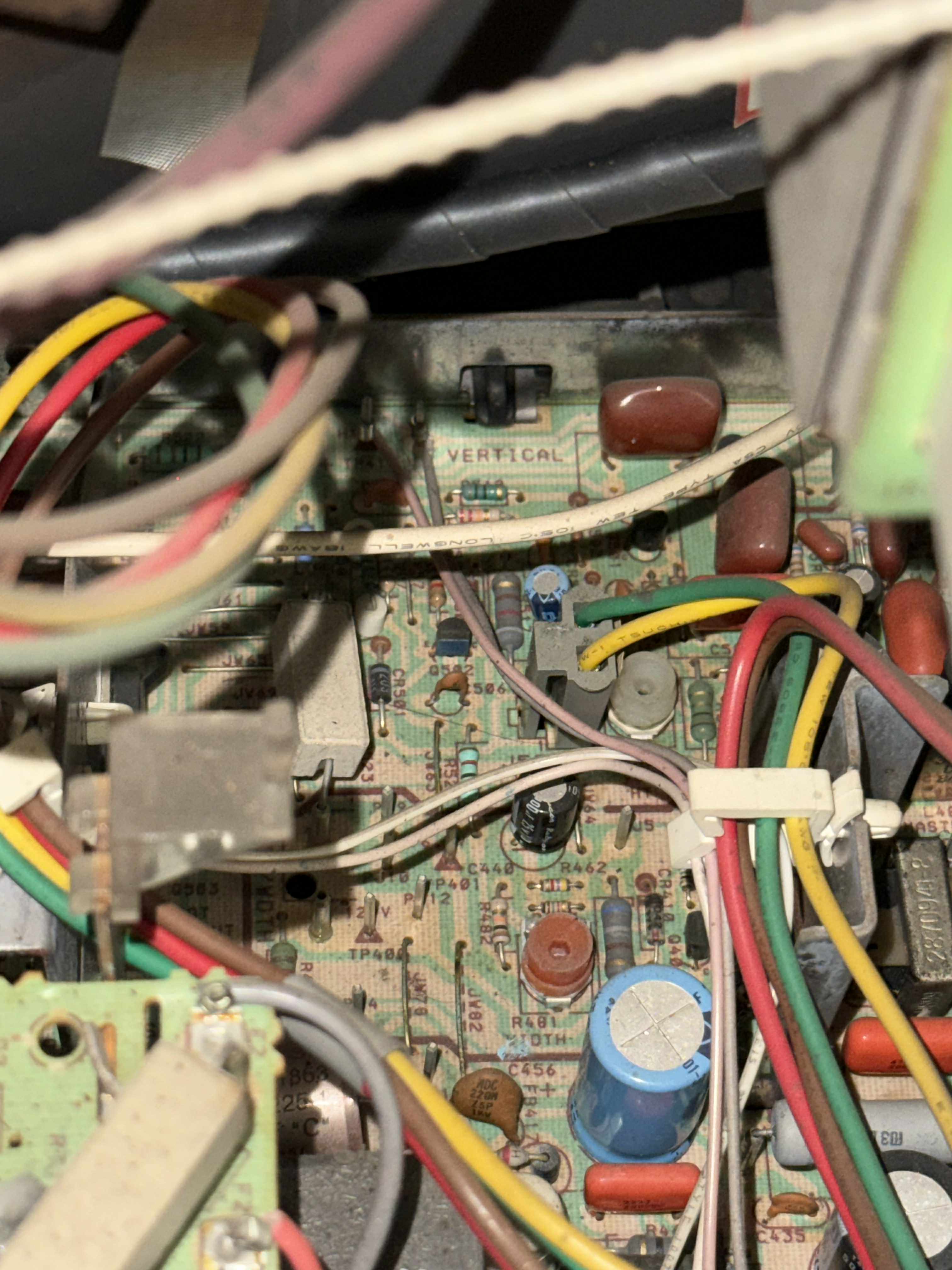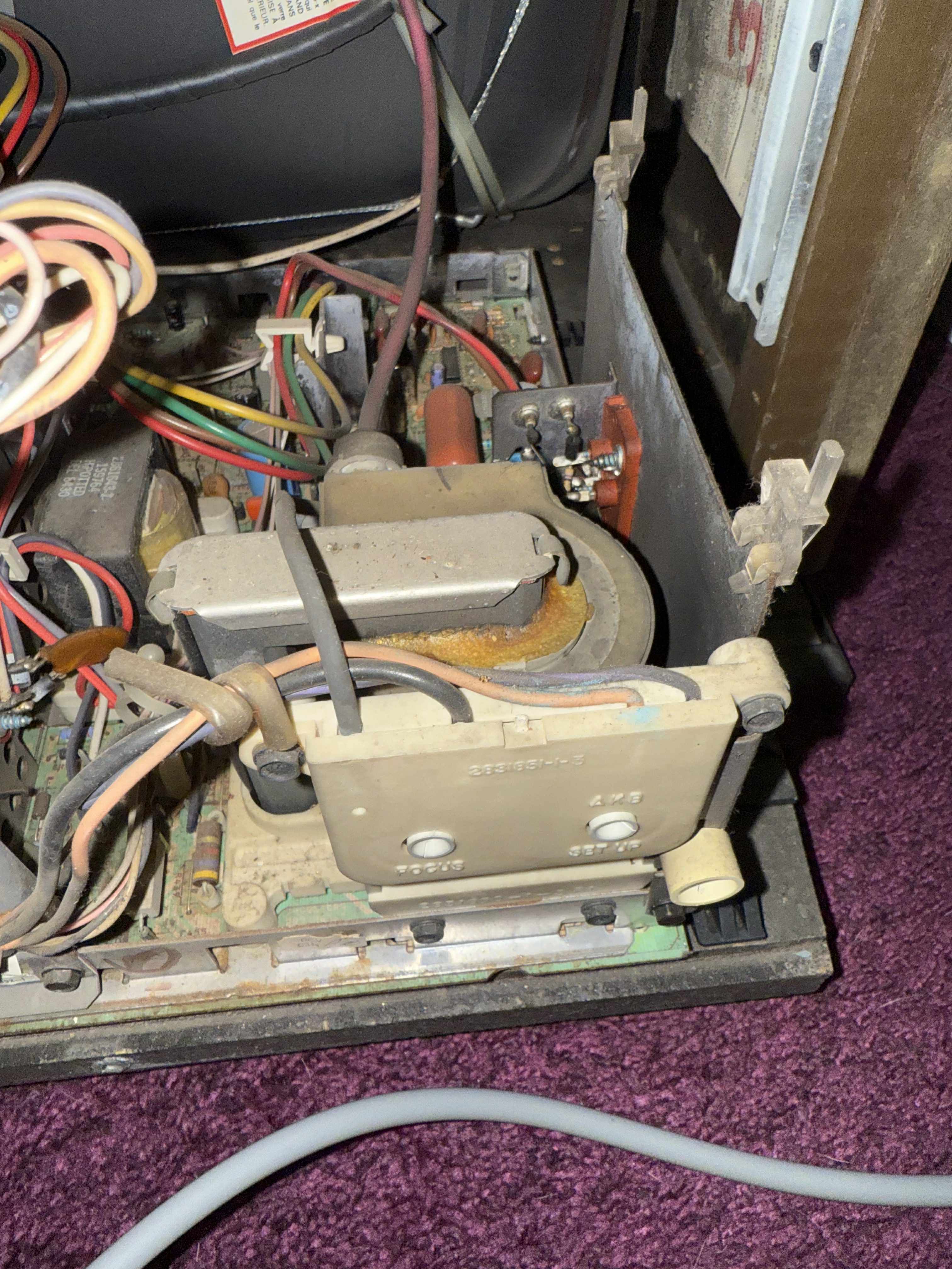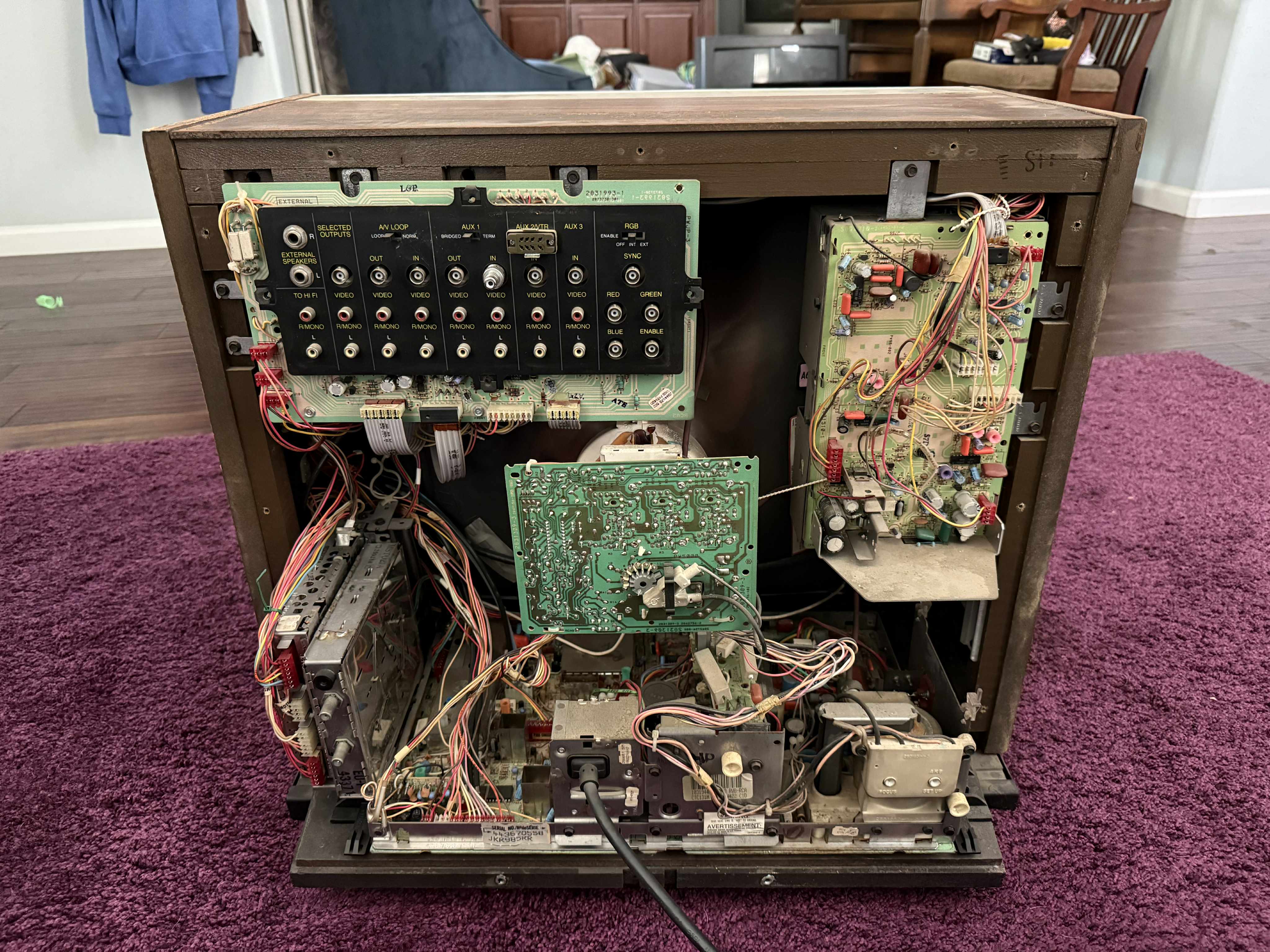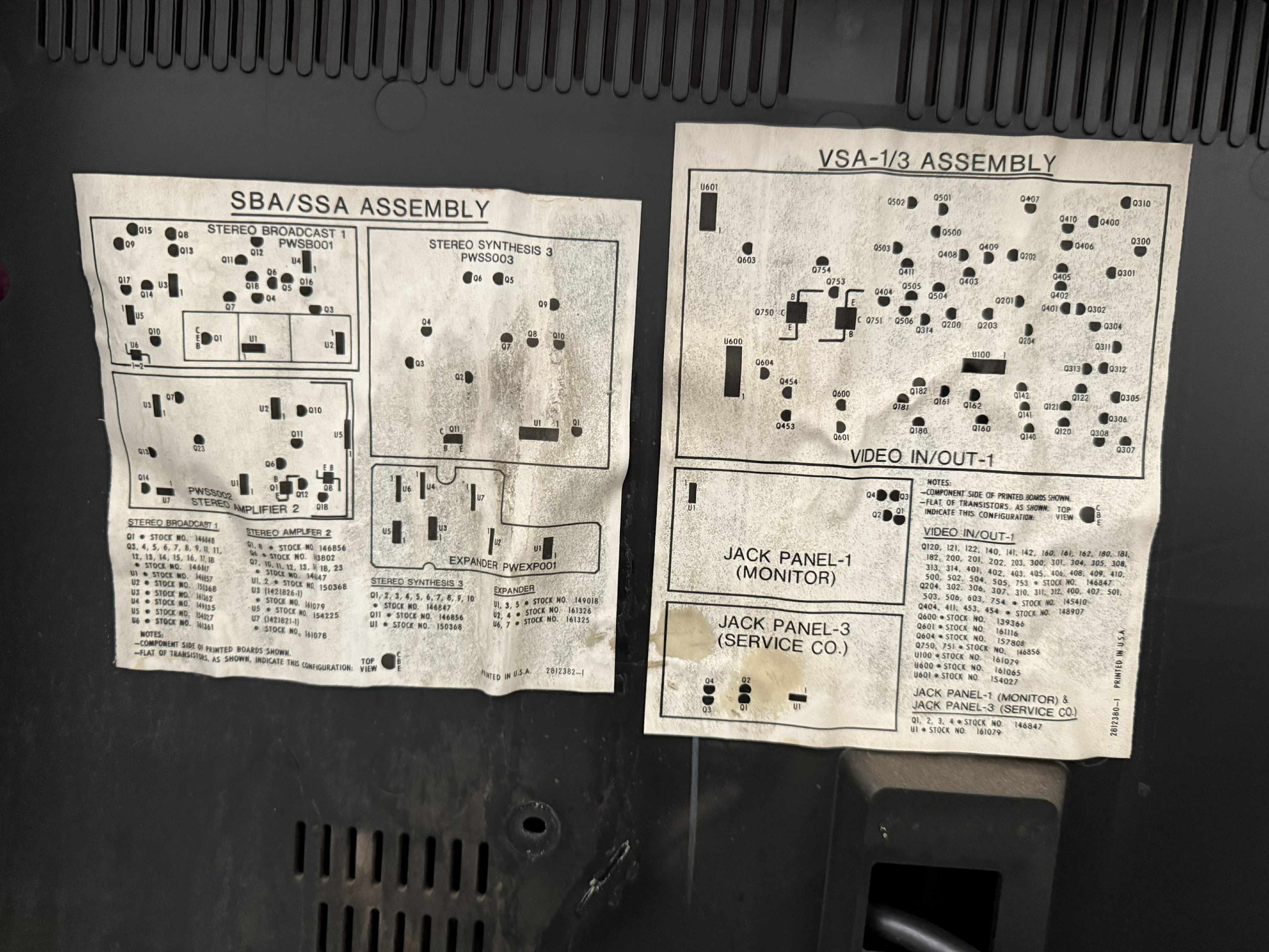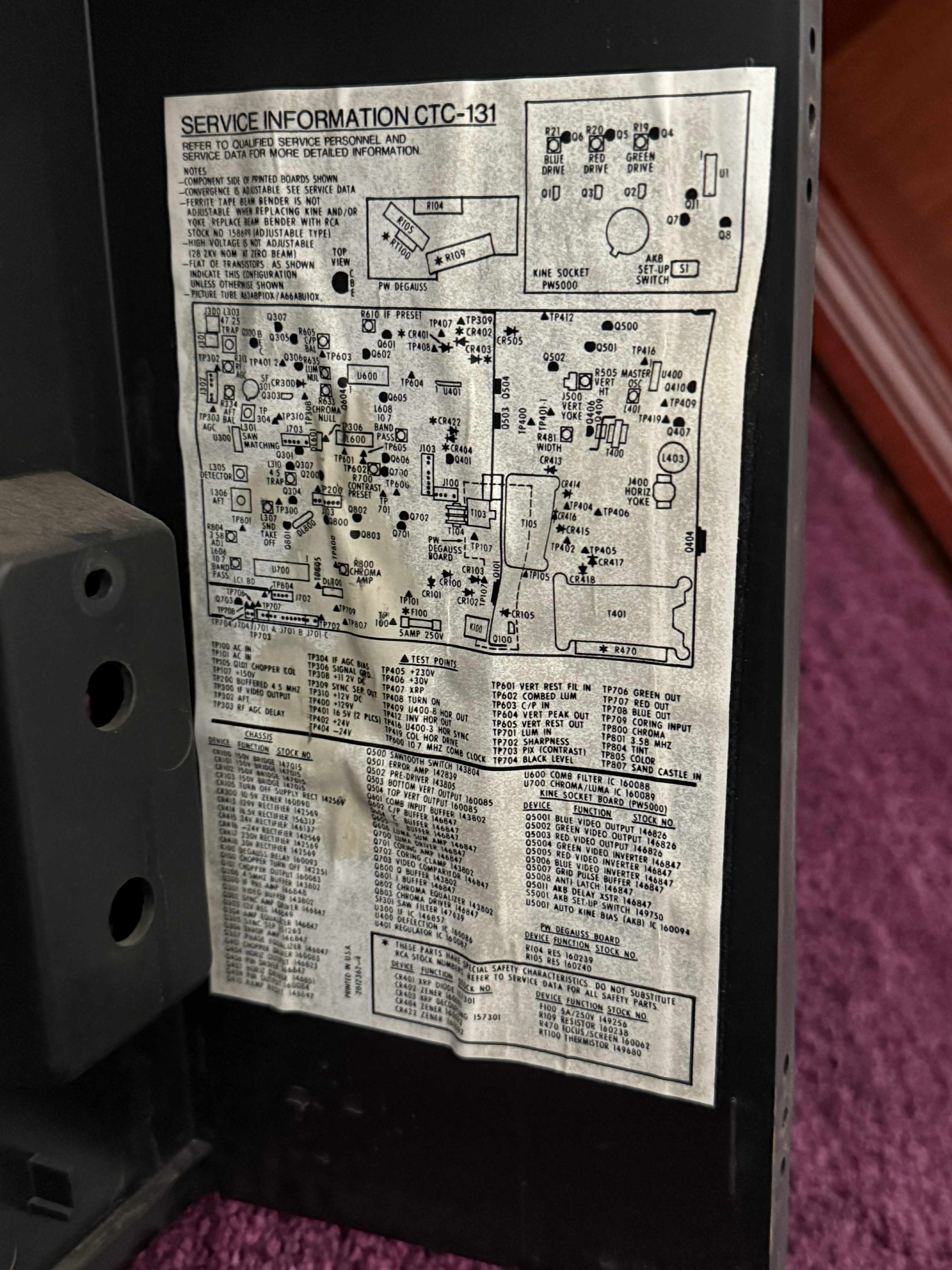 Higher-end 25" CRT by RCA, released in 1984. Has RF, composite and digital RGB inputs over BNC connections. The Lyceum sets were intended for use as presentation displays in schools and other institutions for video footage and computer graphics. Made in The USA, among the last of RCA's chassis before their buyout by Thomson in 1987.