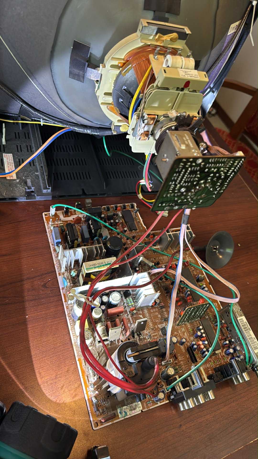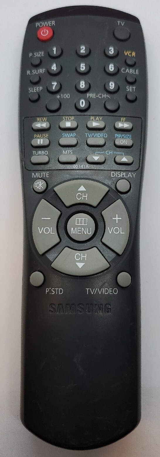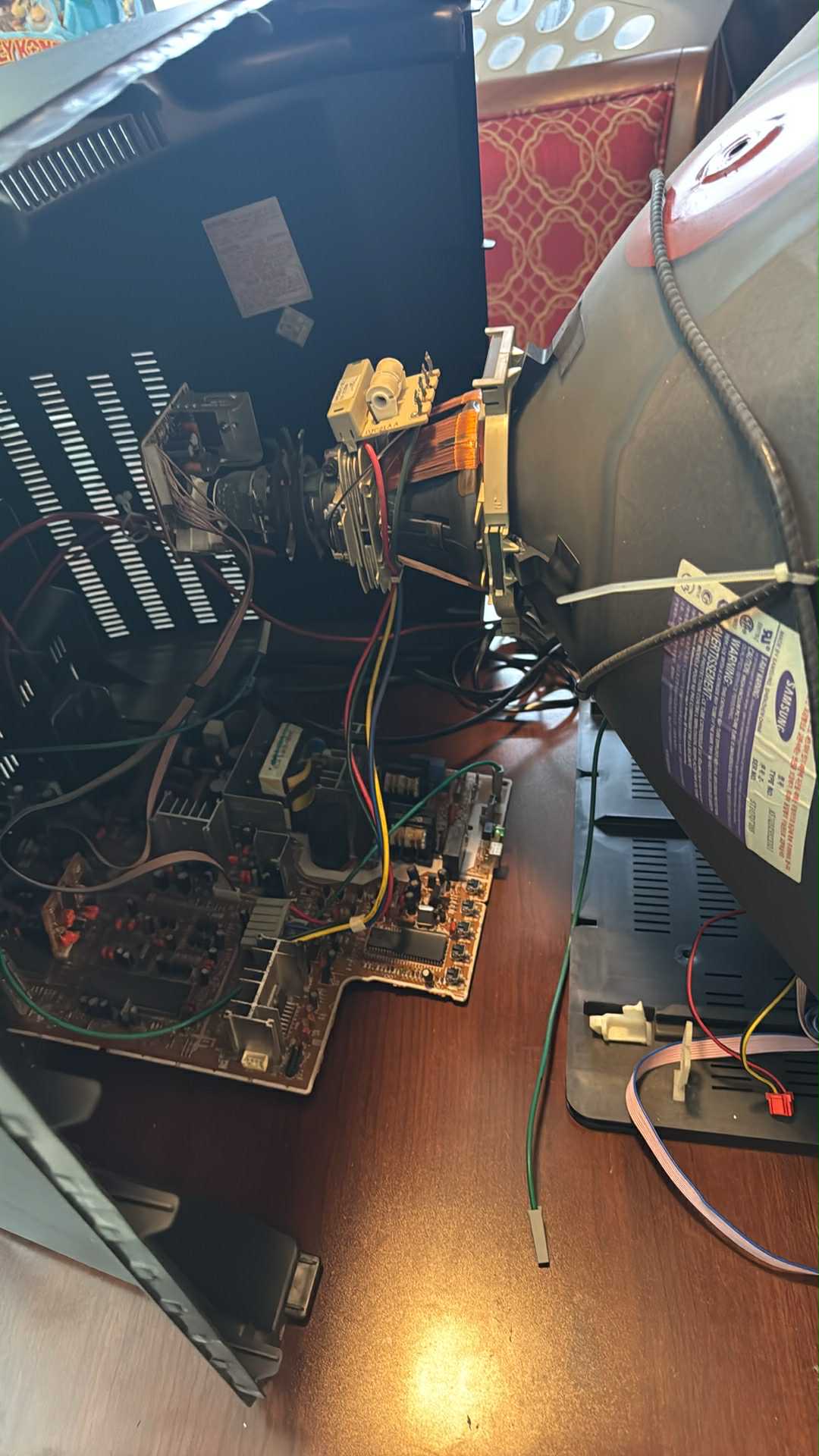 20" DynaFlat CRT by Samsung, made in Mexico in 2001. Has RF, composite, s-video, and component inputs with stereo sound.