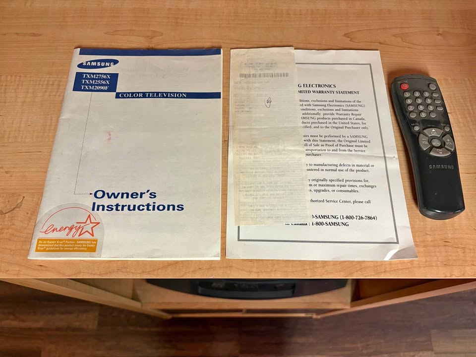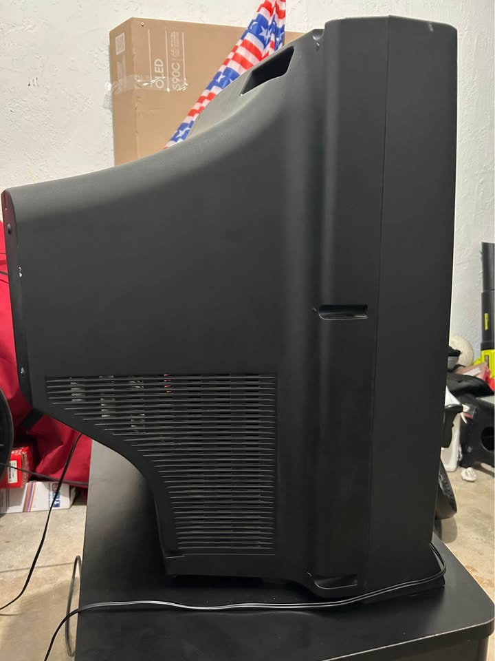 27" curved-screen CRT by Samsung, made in the USA in 2002. Has RF, composite, and component inputs with stereo sound.