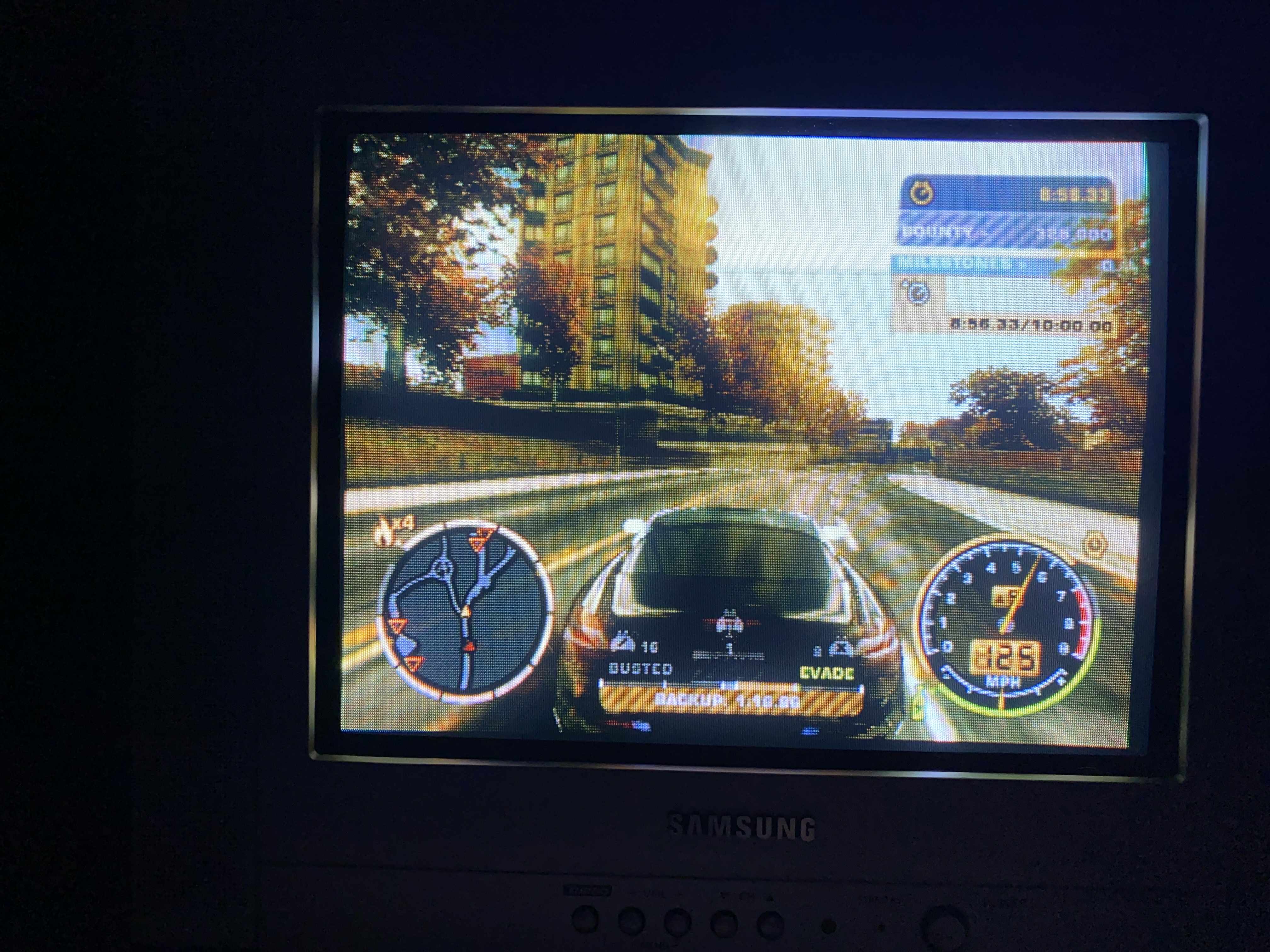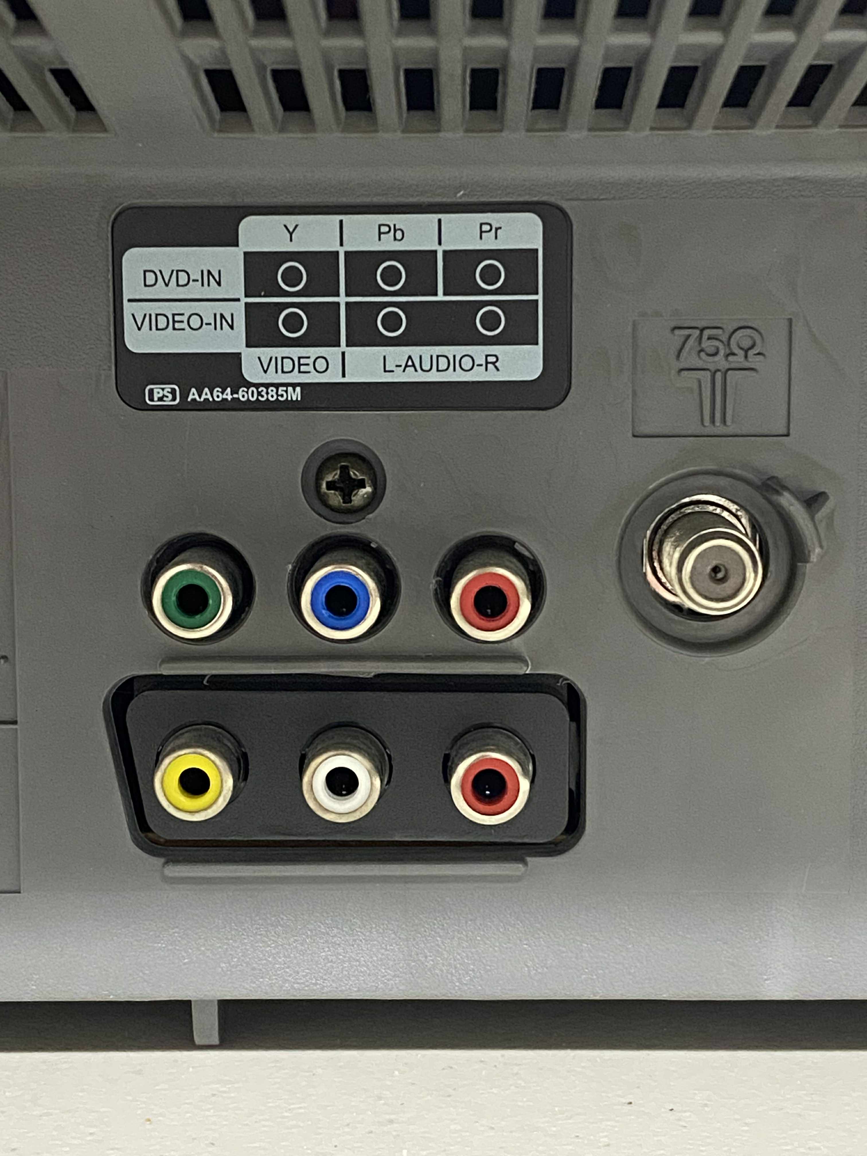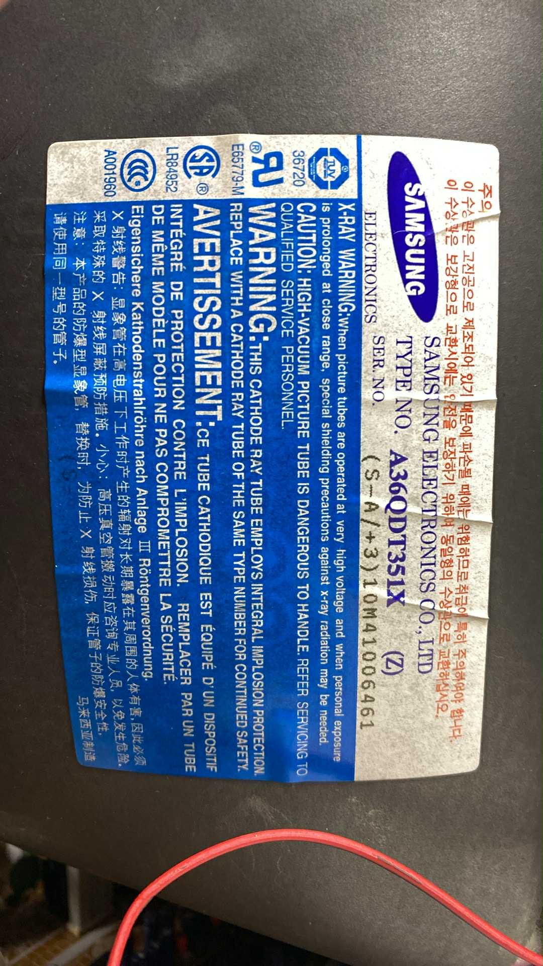 14" Samsung Dynaflat CRT, made in Mexico in 2004. Has RF, composite and component inputs with stereo sound, but lacks s-video.
