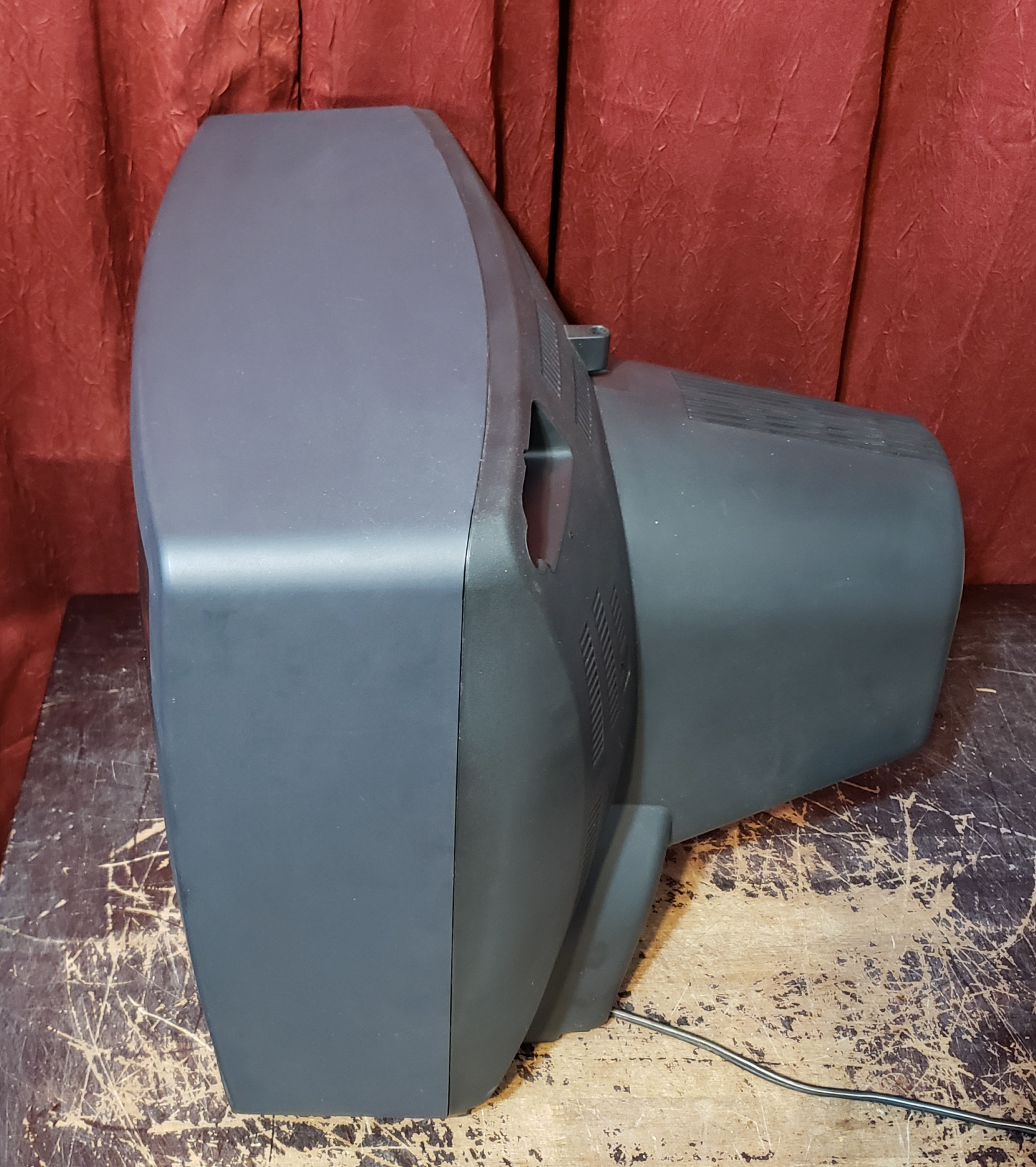 To enter the service menu, with the power off, press in order Mute, 1, 8, 2, Power. Channel buttons navigate, Volume buttons adjust. Menu to return to the menu, Power to exit. The default color balance on this unit was skewed red on the lowlights and was corrected by reducing RC (Red Cutoff).