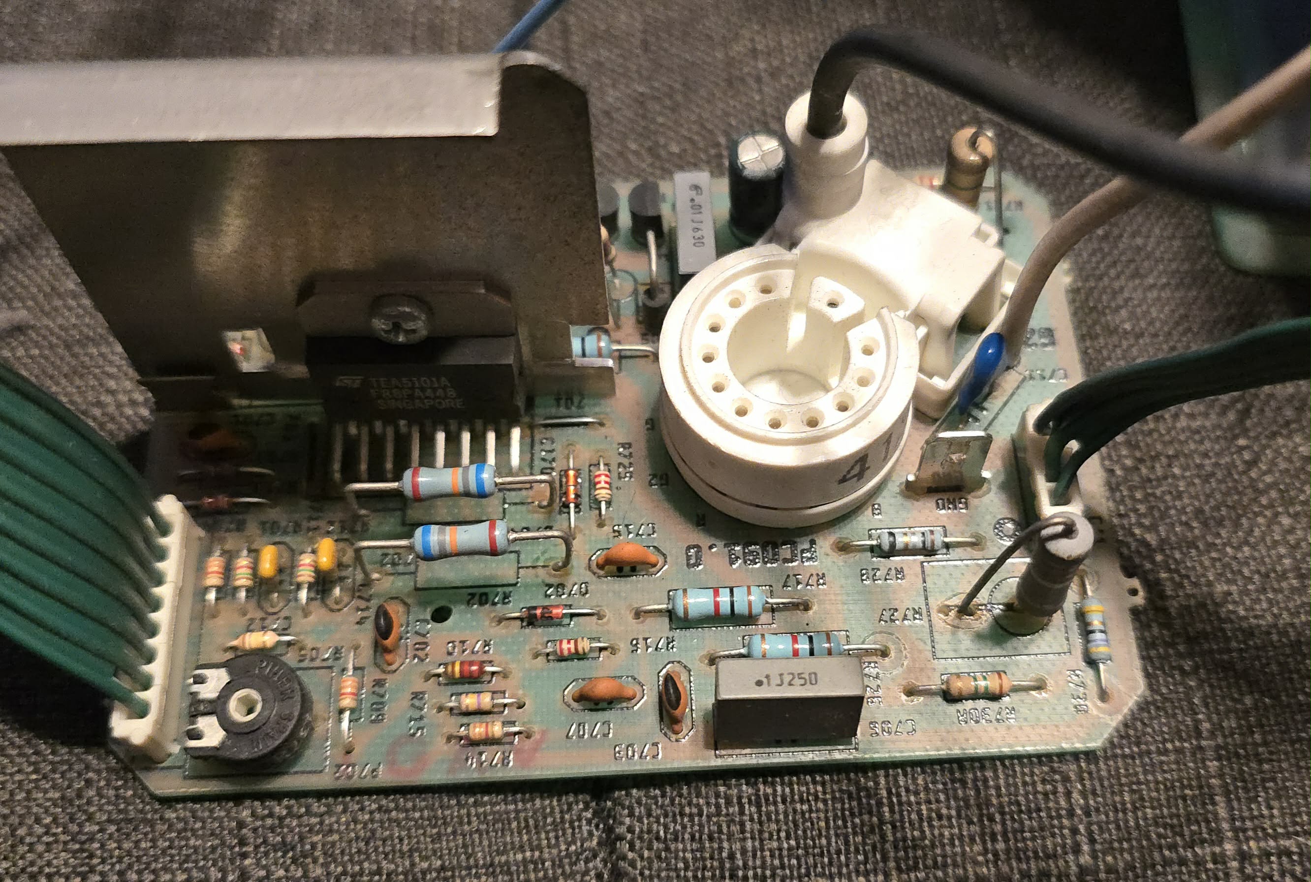 The tube is labeled Videocolor but likely manufactured by Thomson/RCA. It has a classic arcade slot mask look.
