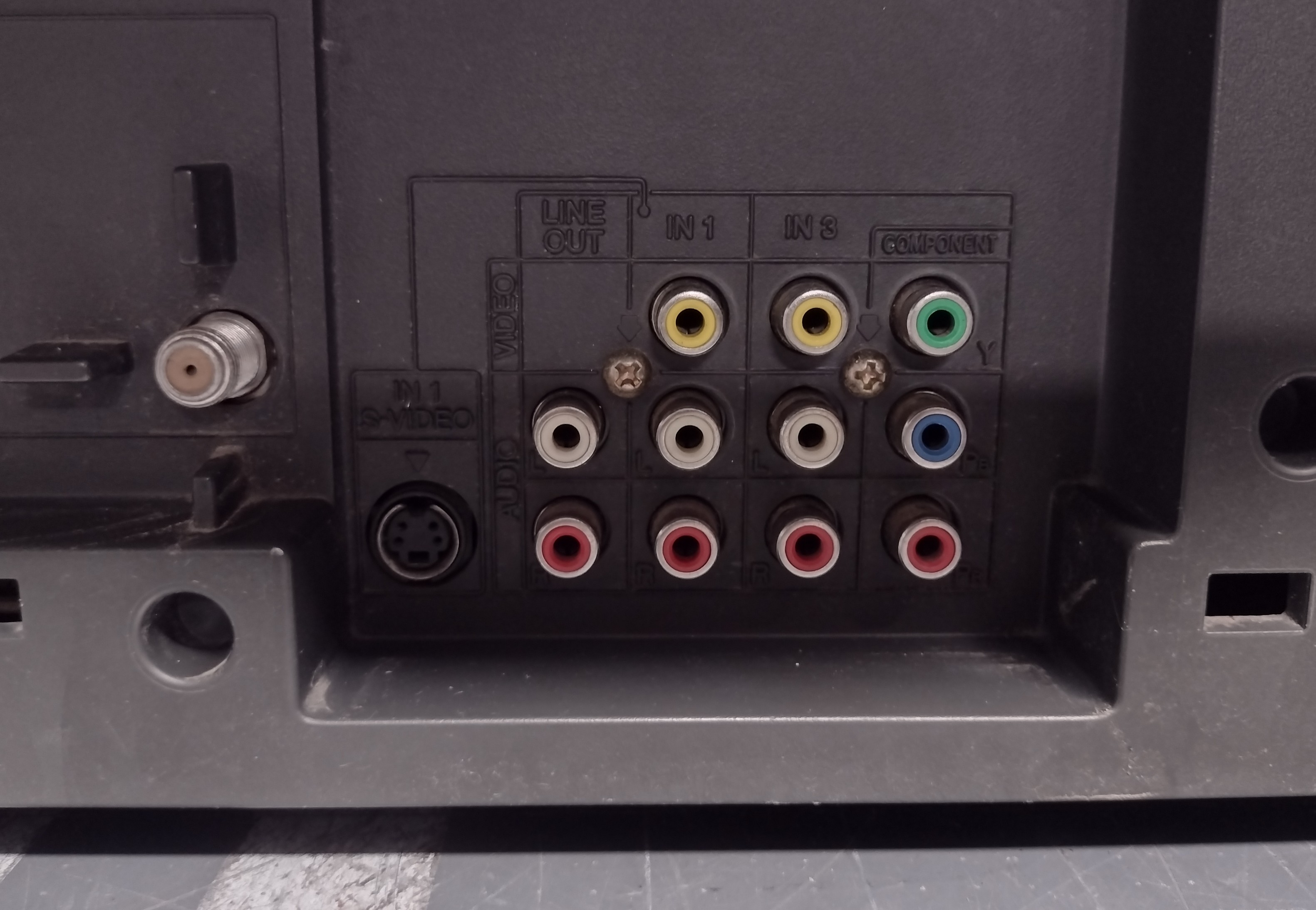 27" flat CRT with a full set of inputs: composite, s-video, and component. It uses a similar tube and jungle chip as the JVC I'Art series, and the picture quality is very close when the TV is set up correctly (see notes).