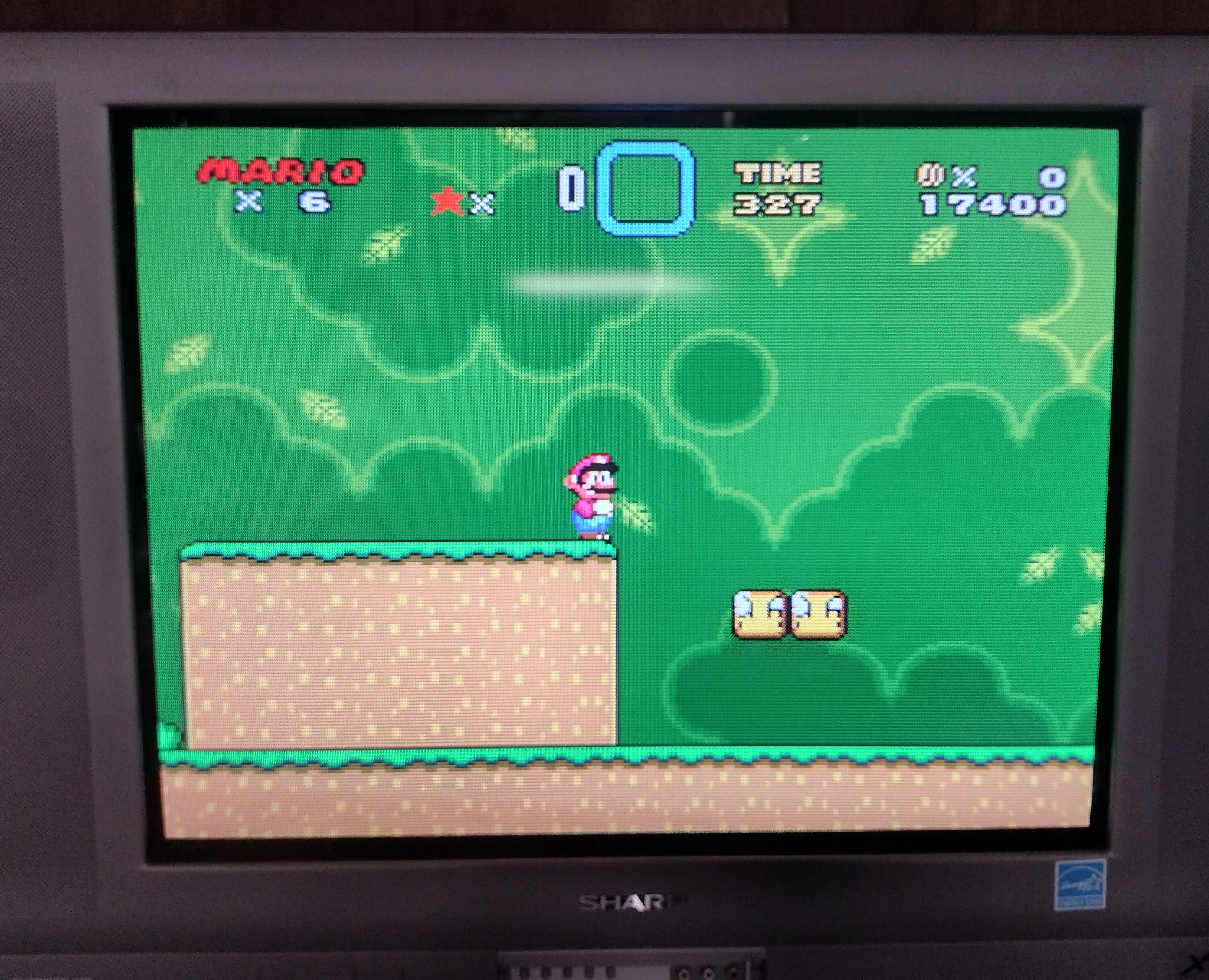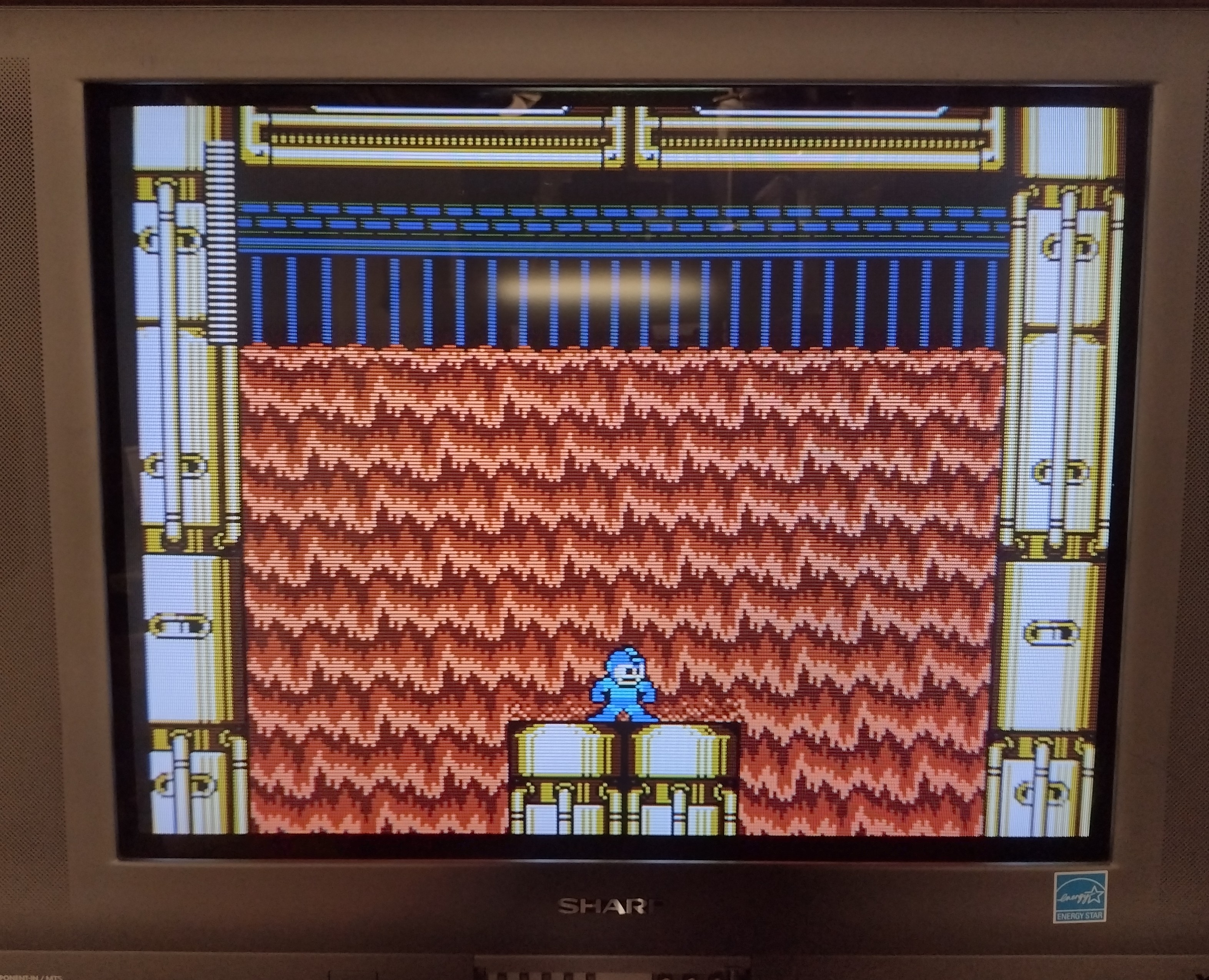 This TV has very strong velocity modulation, which exaggerates dark areas of the picture and visibly degrades the appearance of pixel art. To disable it, enter the service menu, select option #V34, and change it to 3 (refer to page 6 of the service manual linked above for instructions).