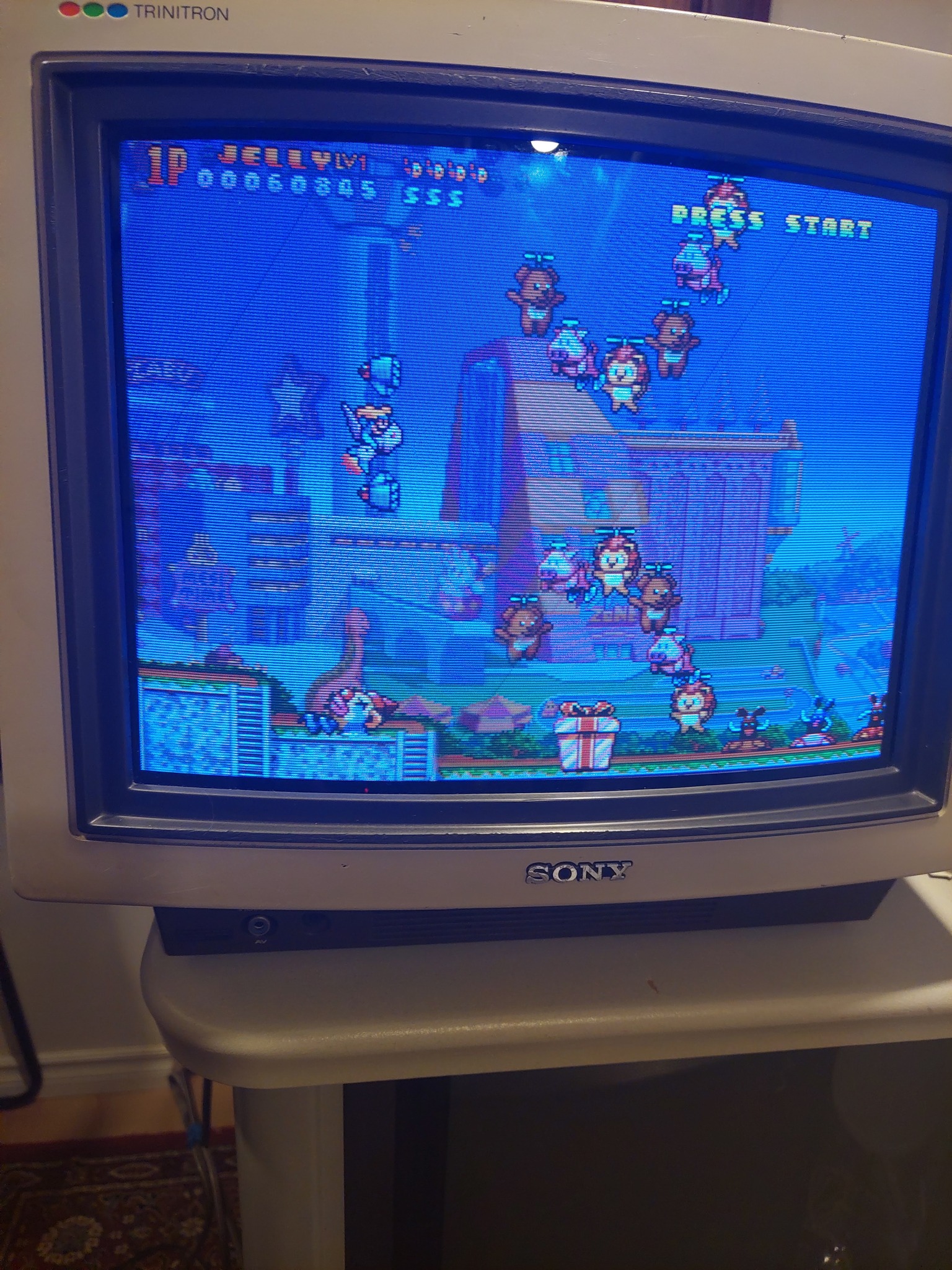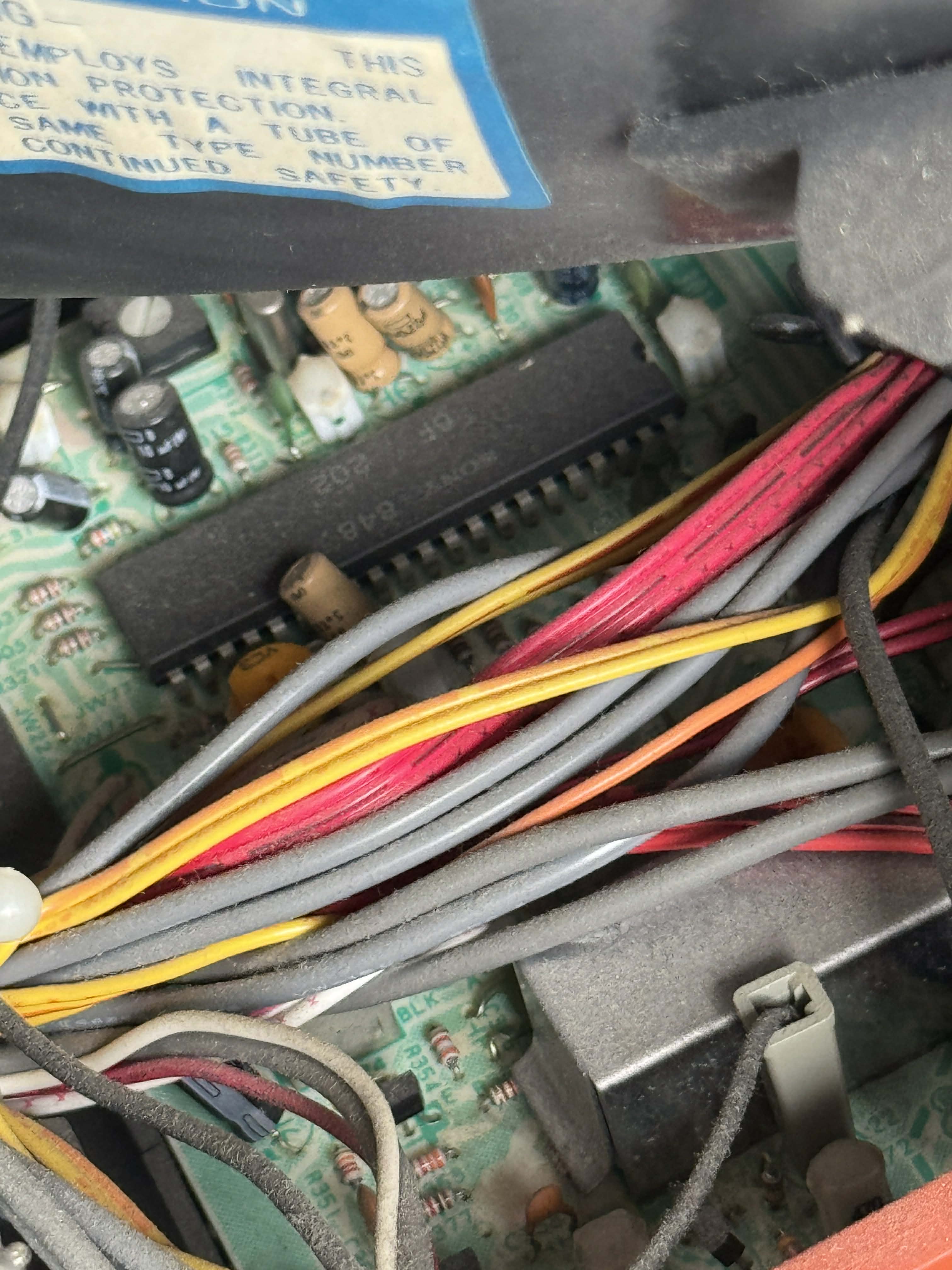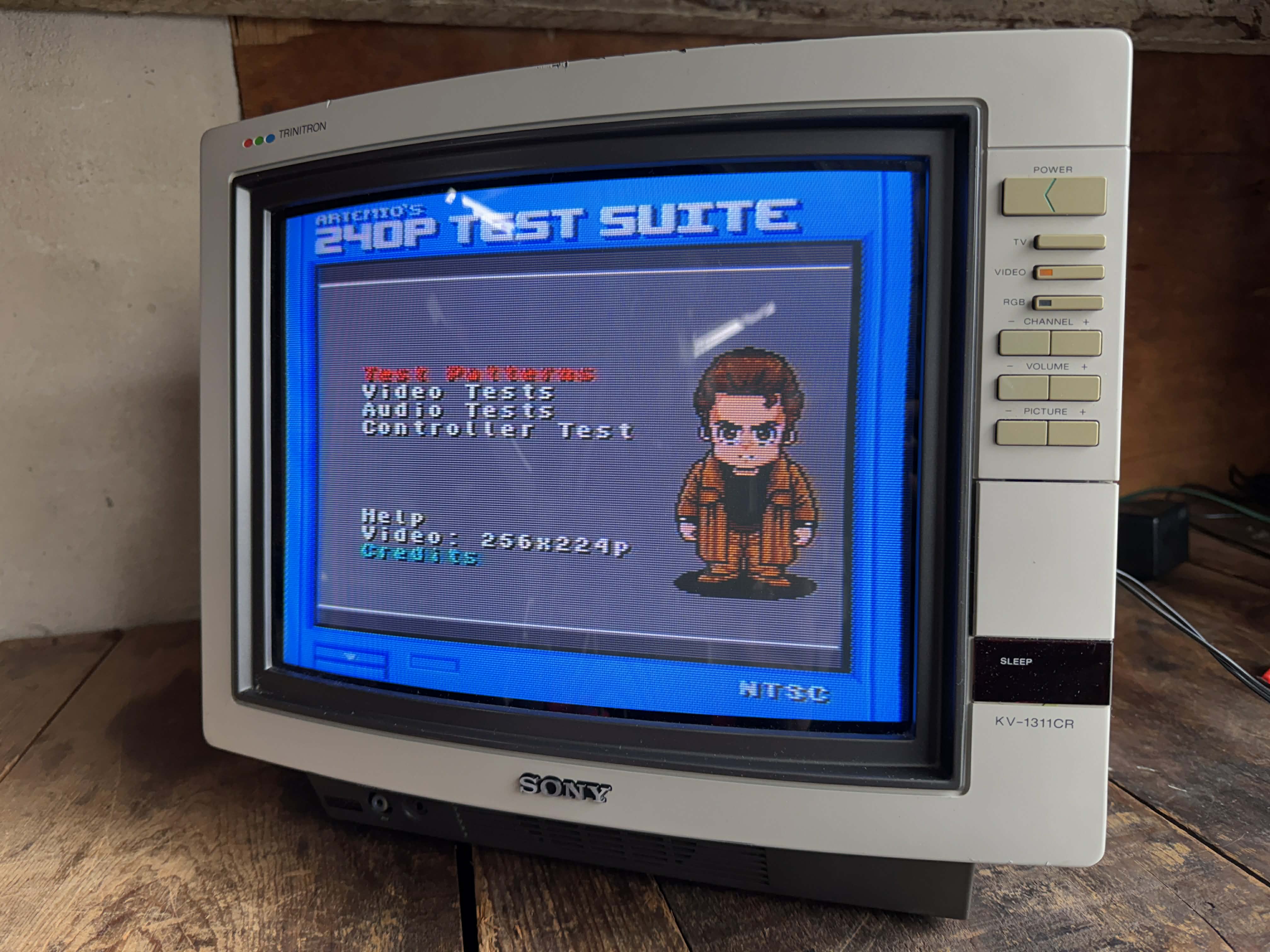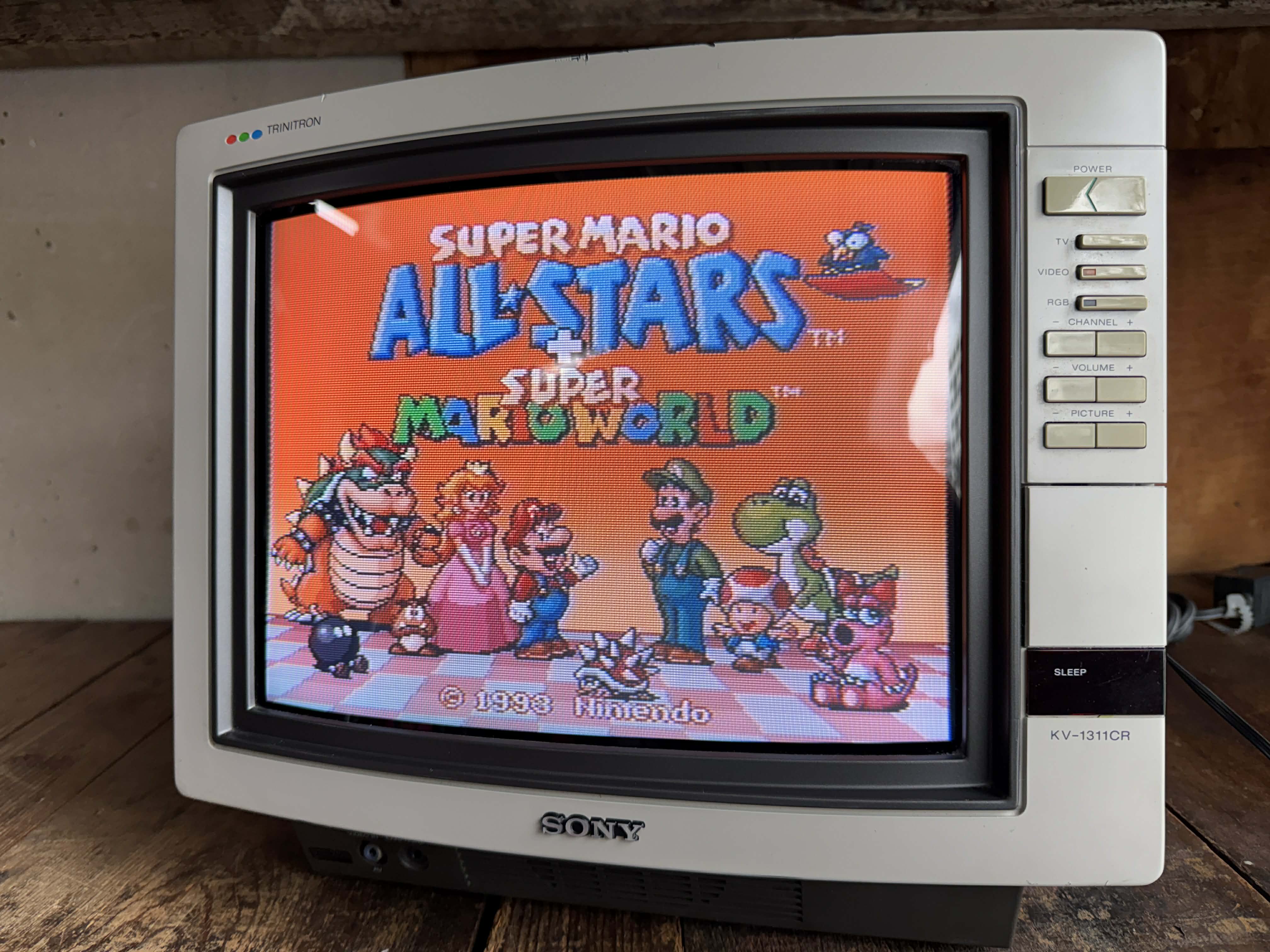 13" TV-monitor hybrid by Sony, made in Japan in 1985. Has RF, composite, CGA and analog RGB inputs with mono sound.