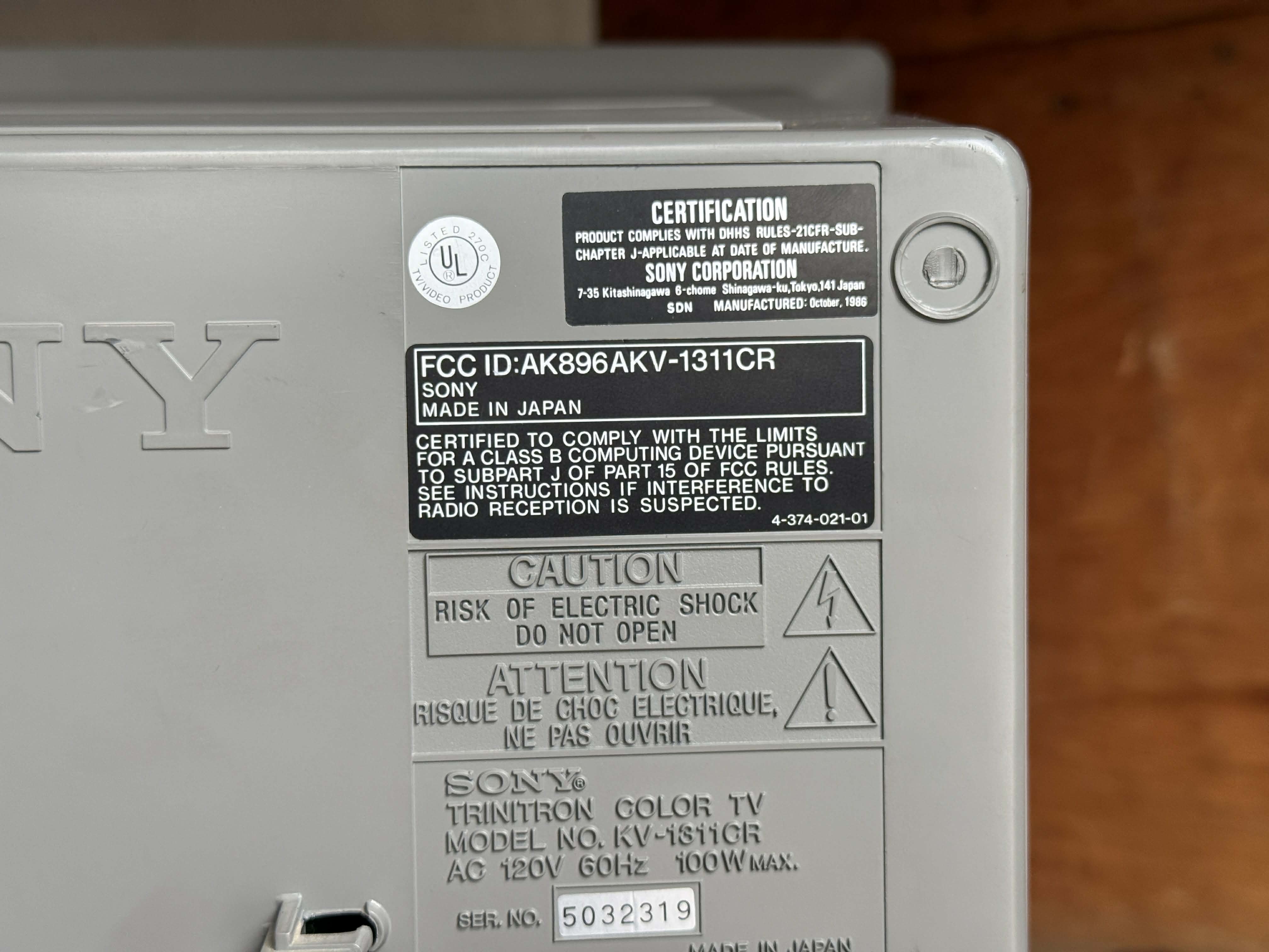 | Tube: | Sony Trinitron , A34JHS10X |