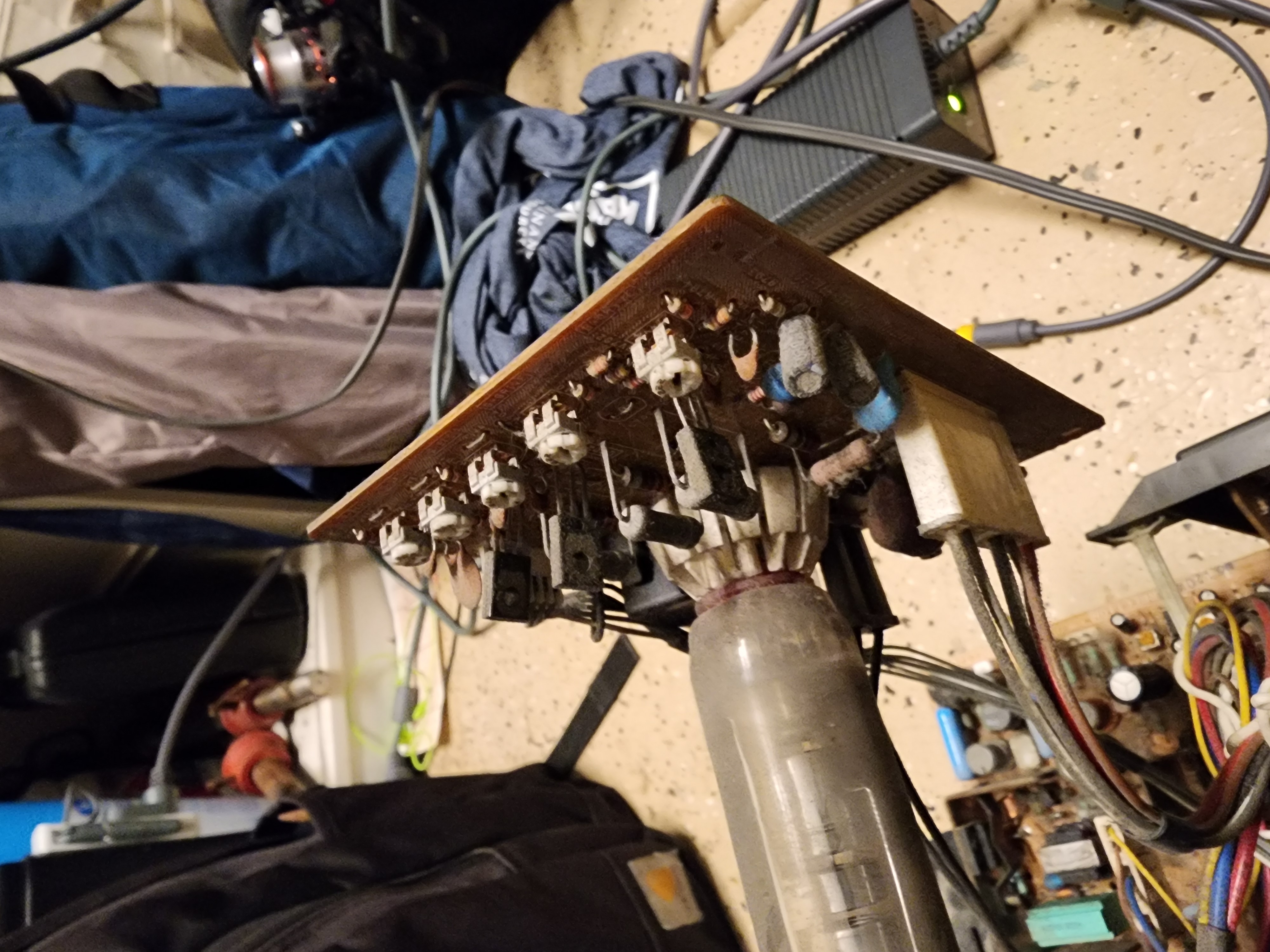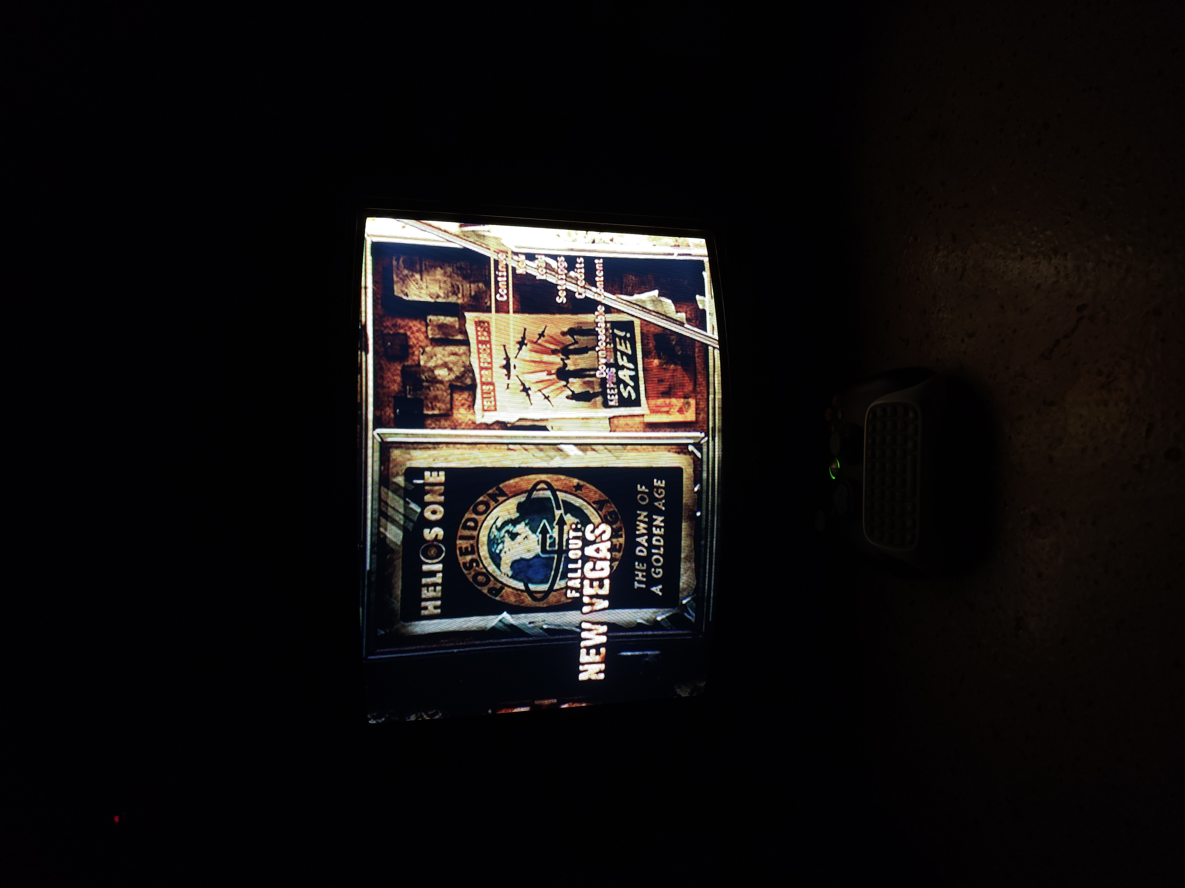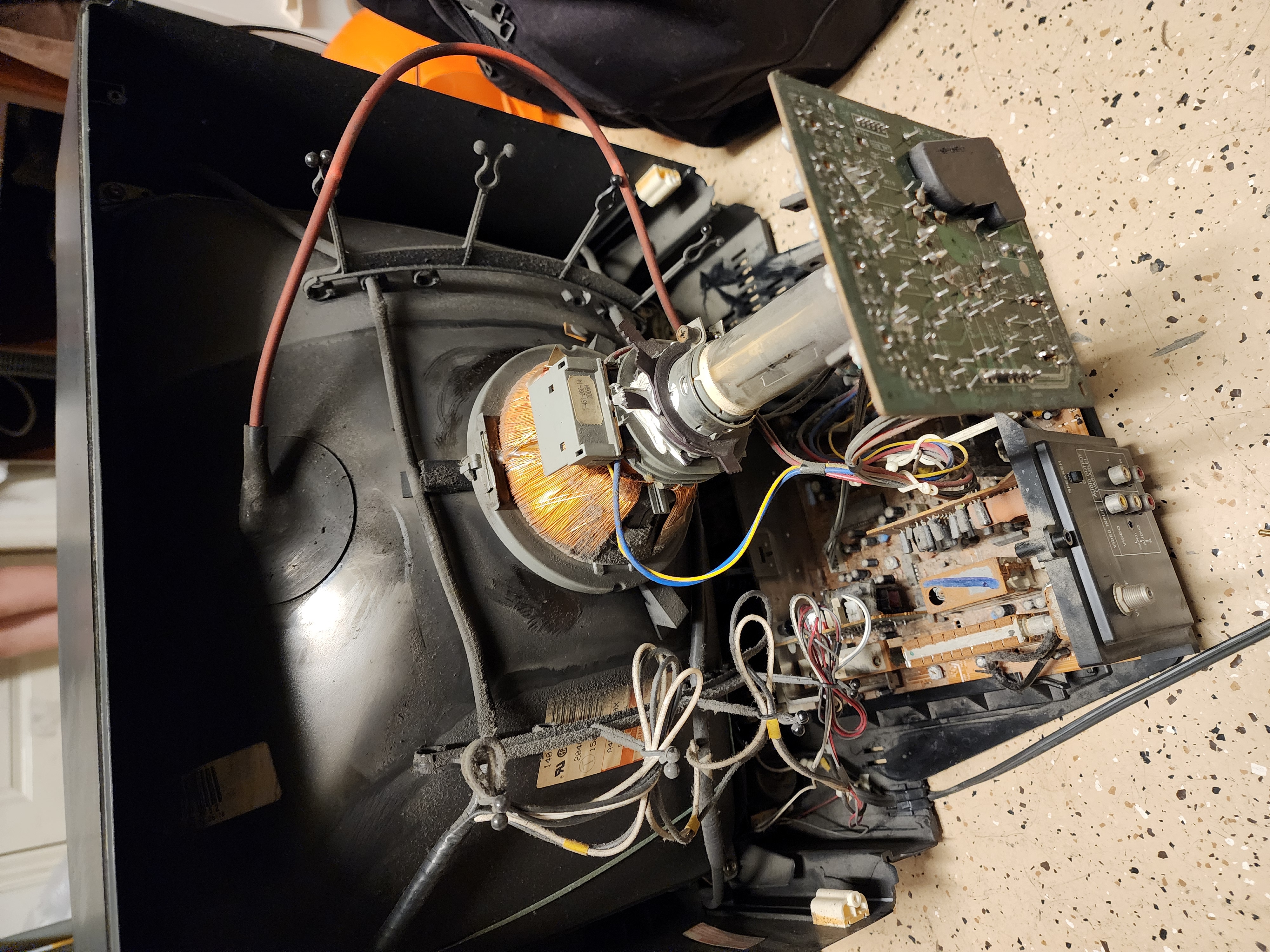 A standard 19" Sony Trinitron TV from 1989. Has 1 composite input with extra Left and Right audio jacks for external stereo. Also has a switch for enabling or disabling built-in speakers.