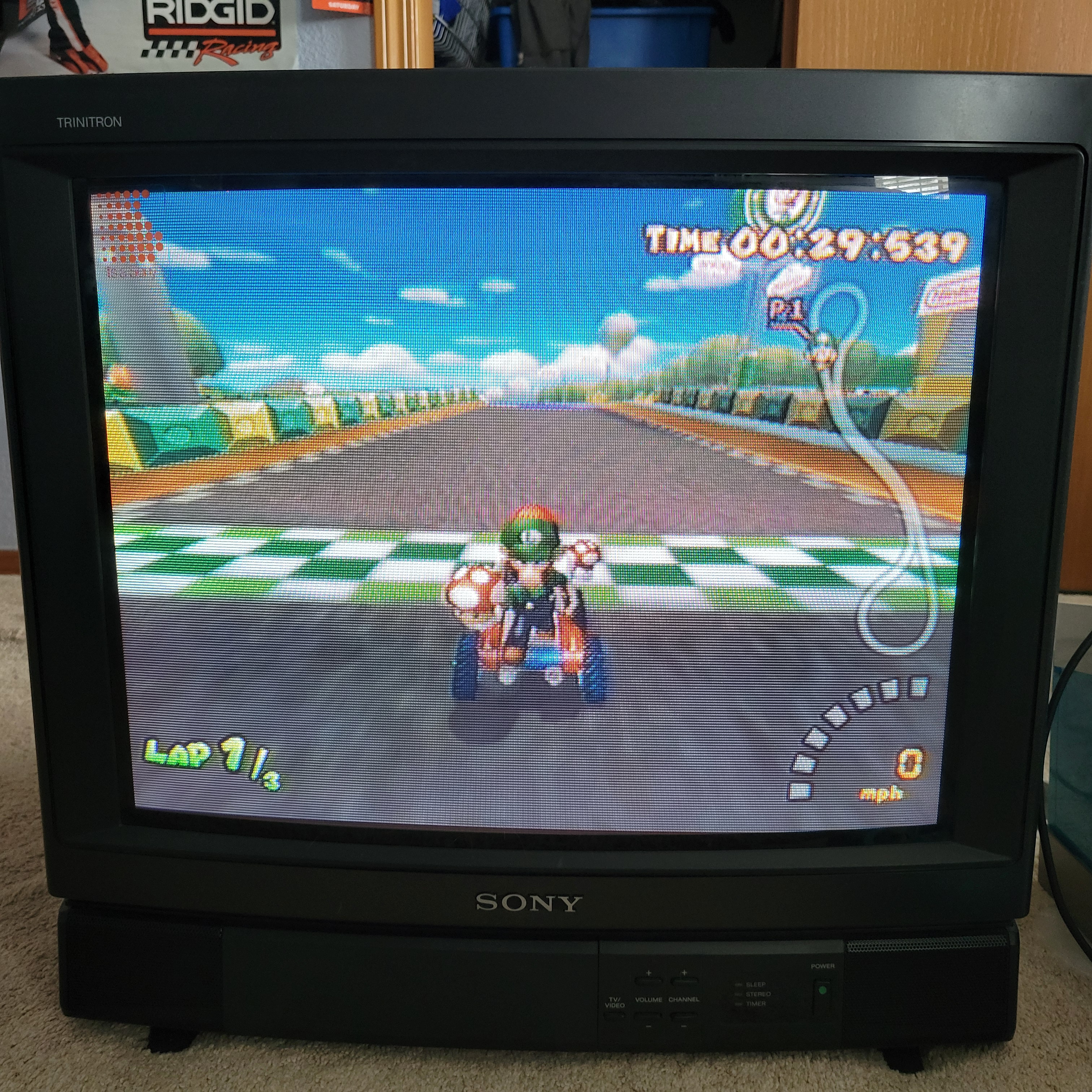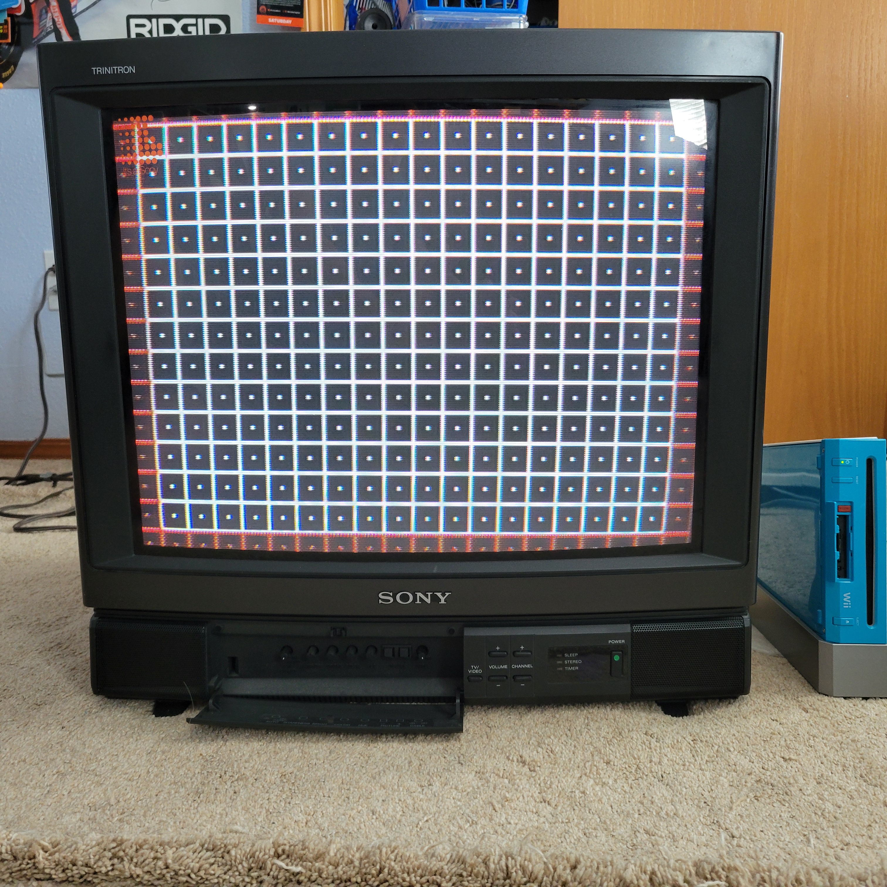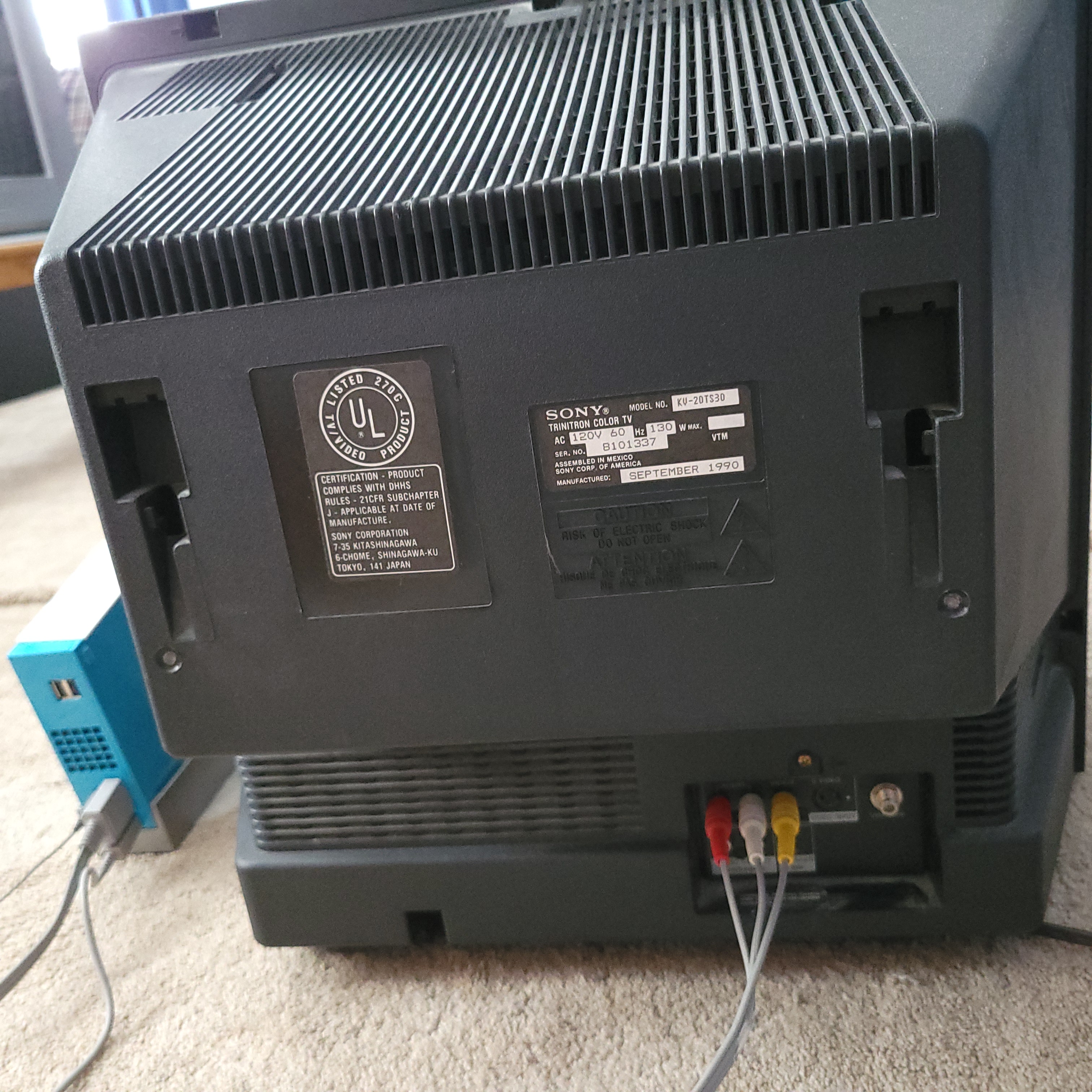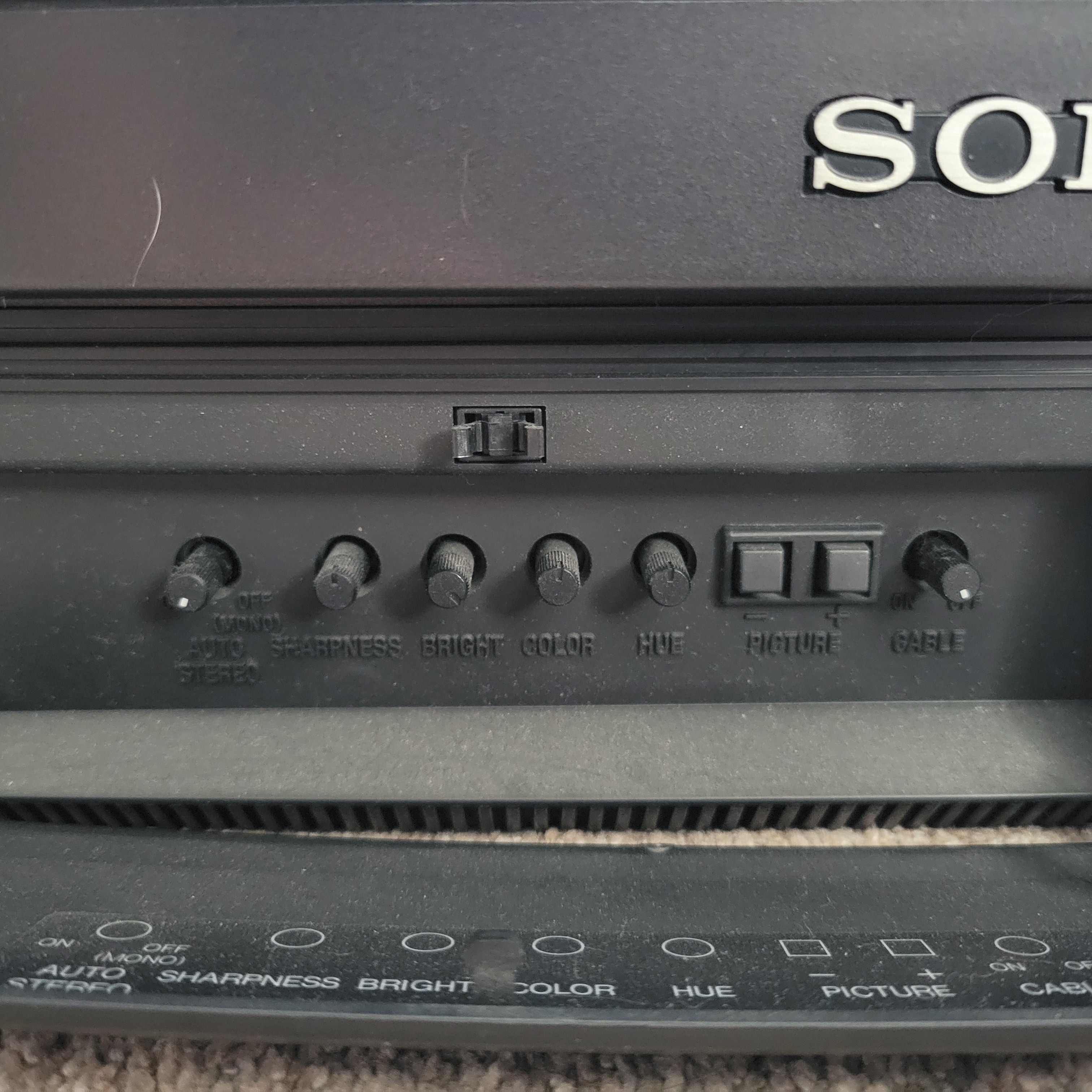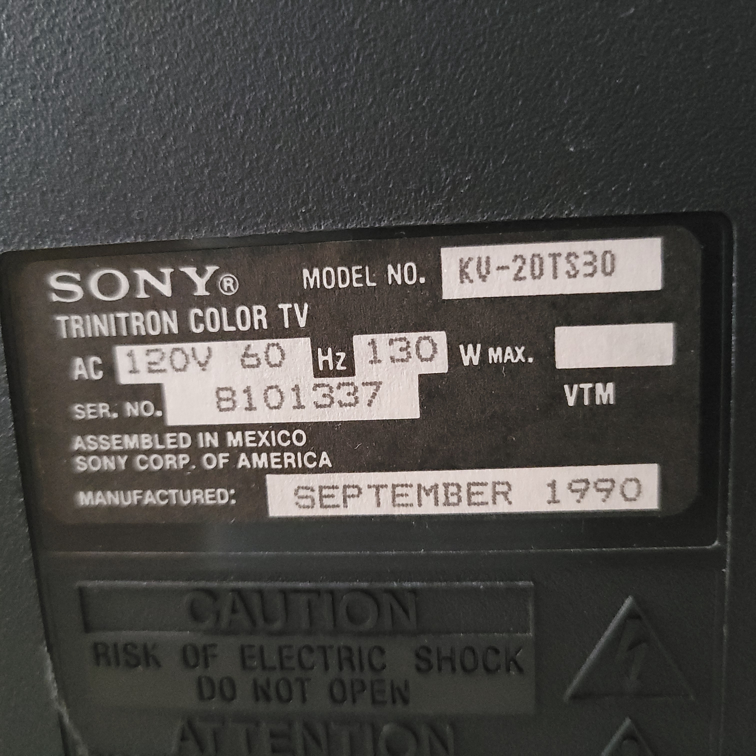 A late 80's/early 90's consumer Sony Trinitron that is similar to two previous models, the KV-20TS10 and the KV-20TS20. Unlike those two, this KV-20TS30 includes S-video input, which provides a better input option for picture clarity.