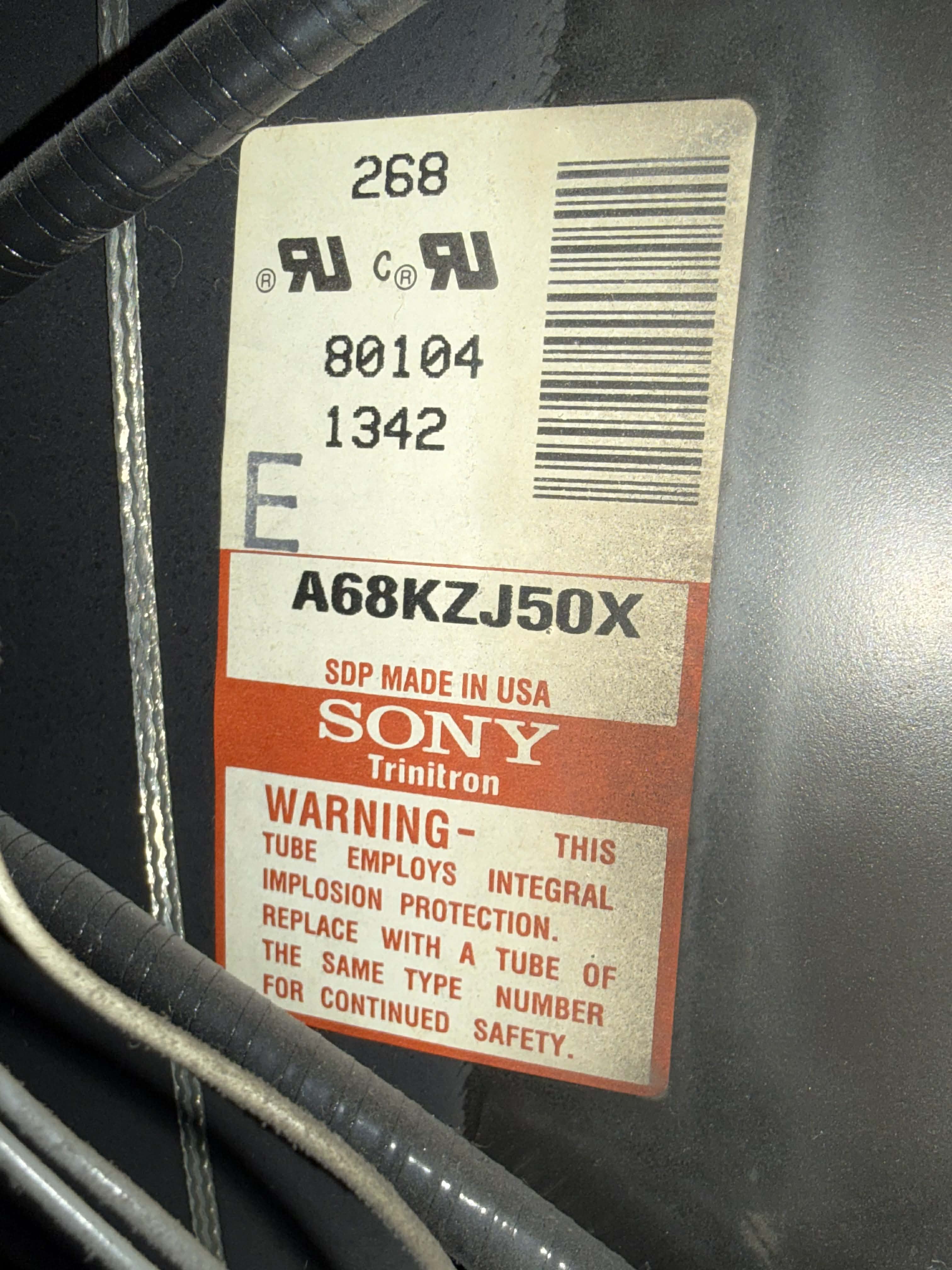 | Tube: | Sony Trinitron , A68KZJ50X |