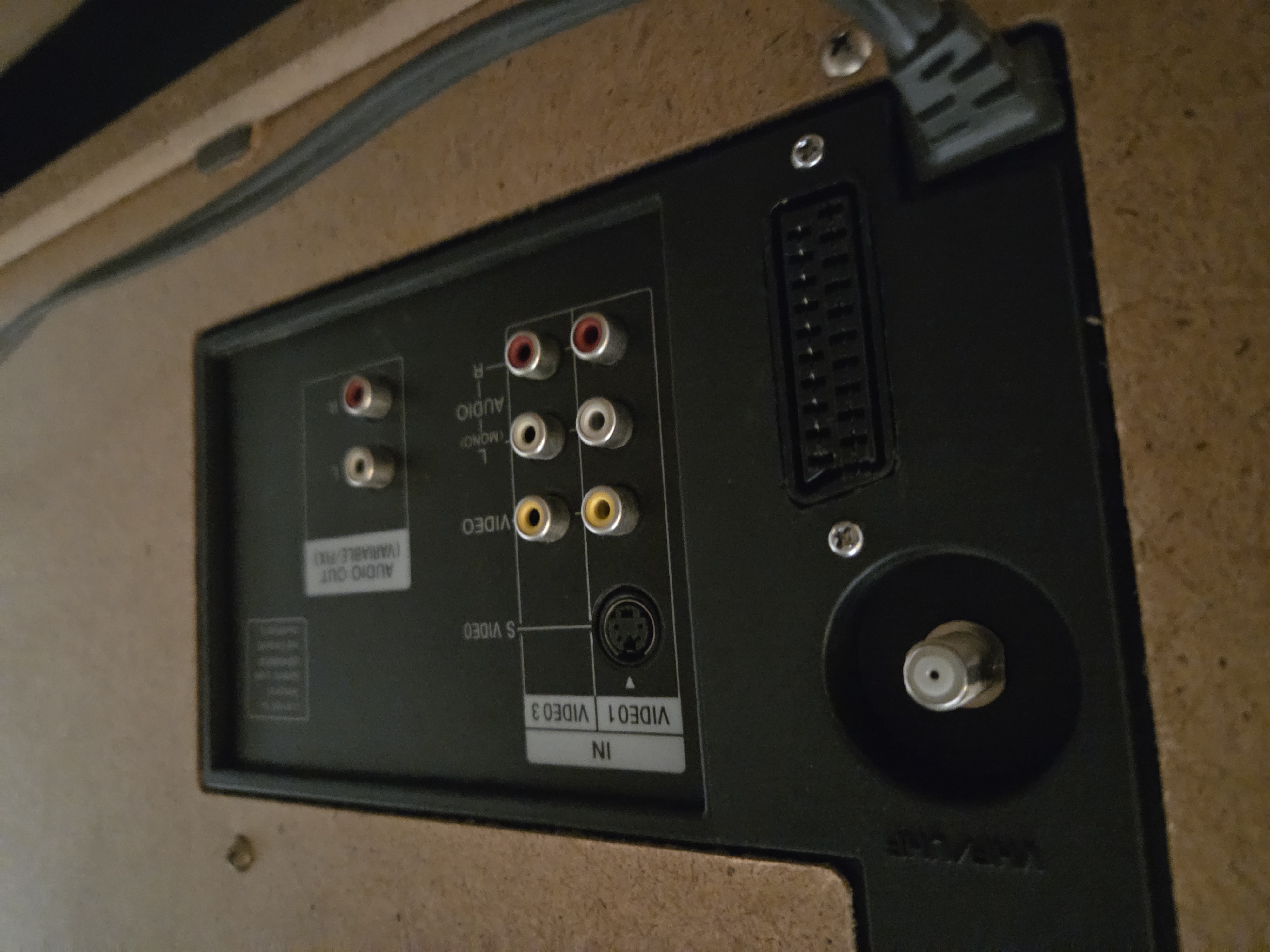 The audio section of the consumer OSD includes bass and treble adjustments, and a "surround" toggle. These adjustments will carry over to connected external speakers as well. The example pictured below was modded for RGB.