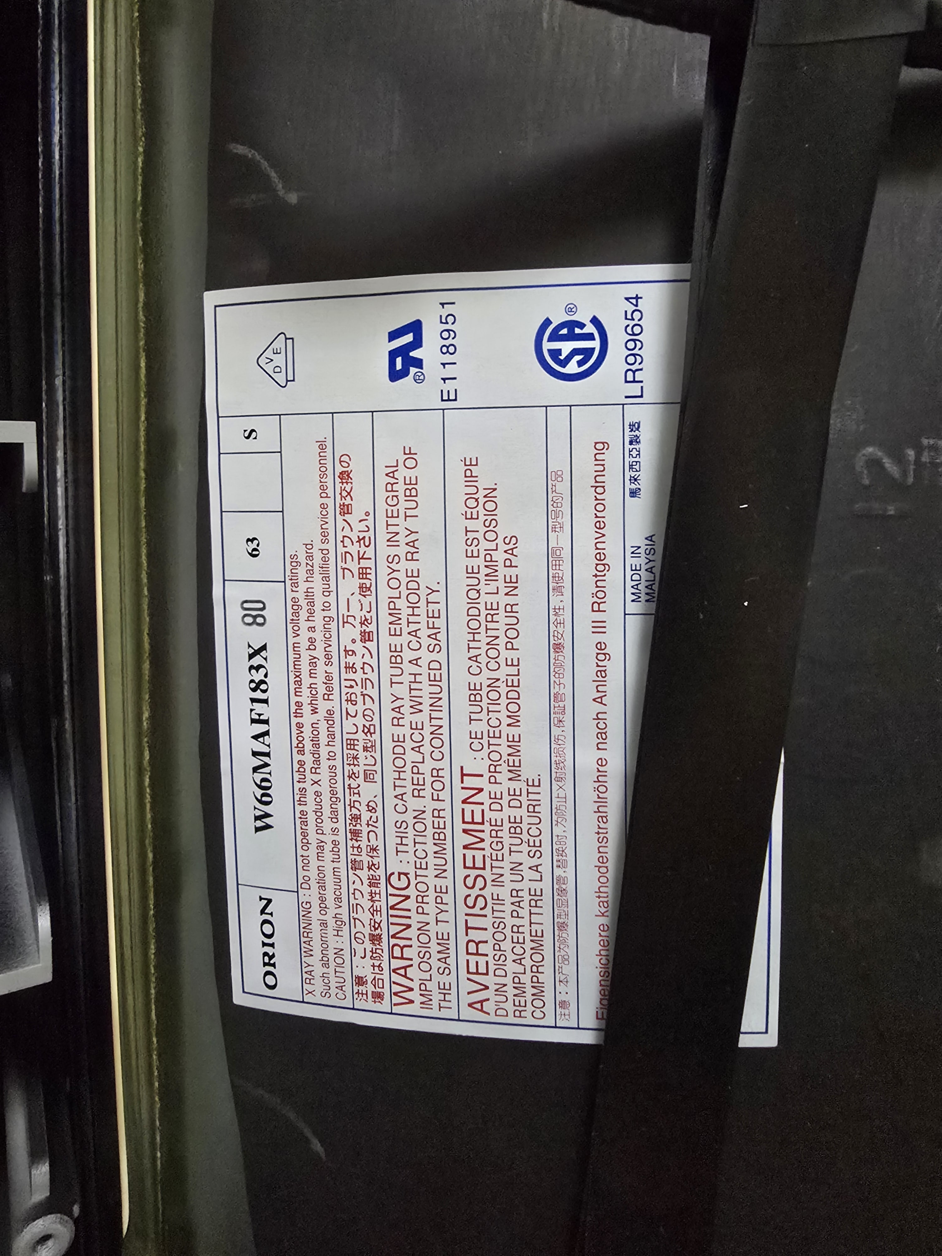 | Tube: | Matsushita-Toshiba , W66MAF183X , W66MAF183X80 |