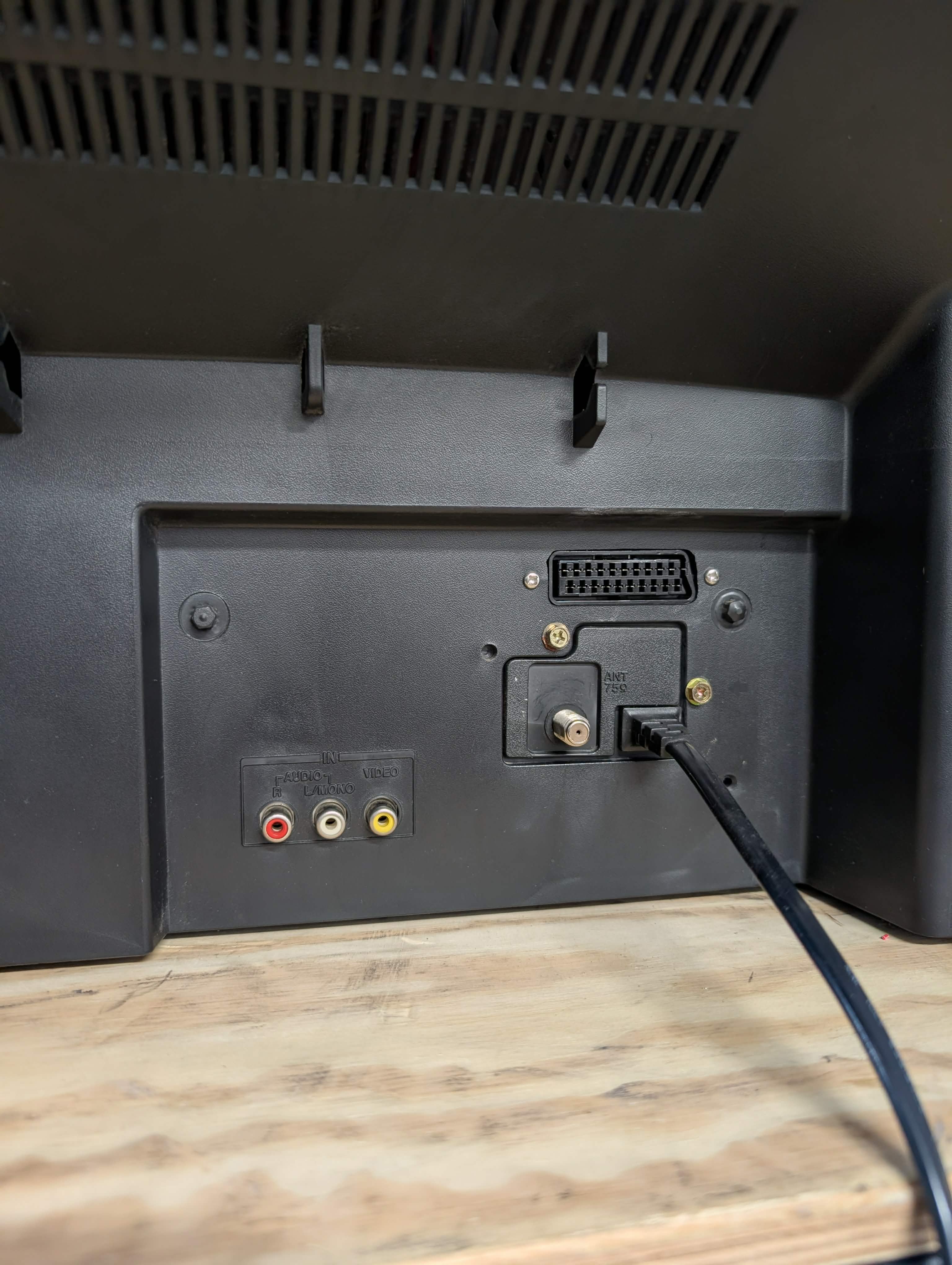 Basic 27" CRT by Toshiba, made in the USA in 2000. Has RF and composite inputs.
