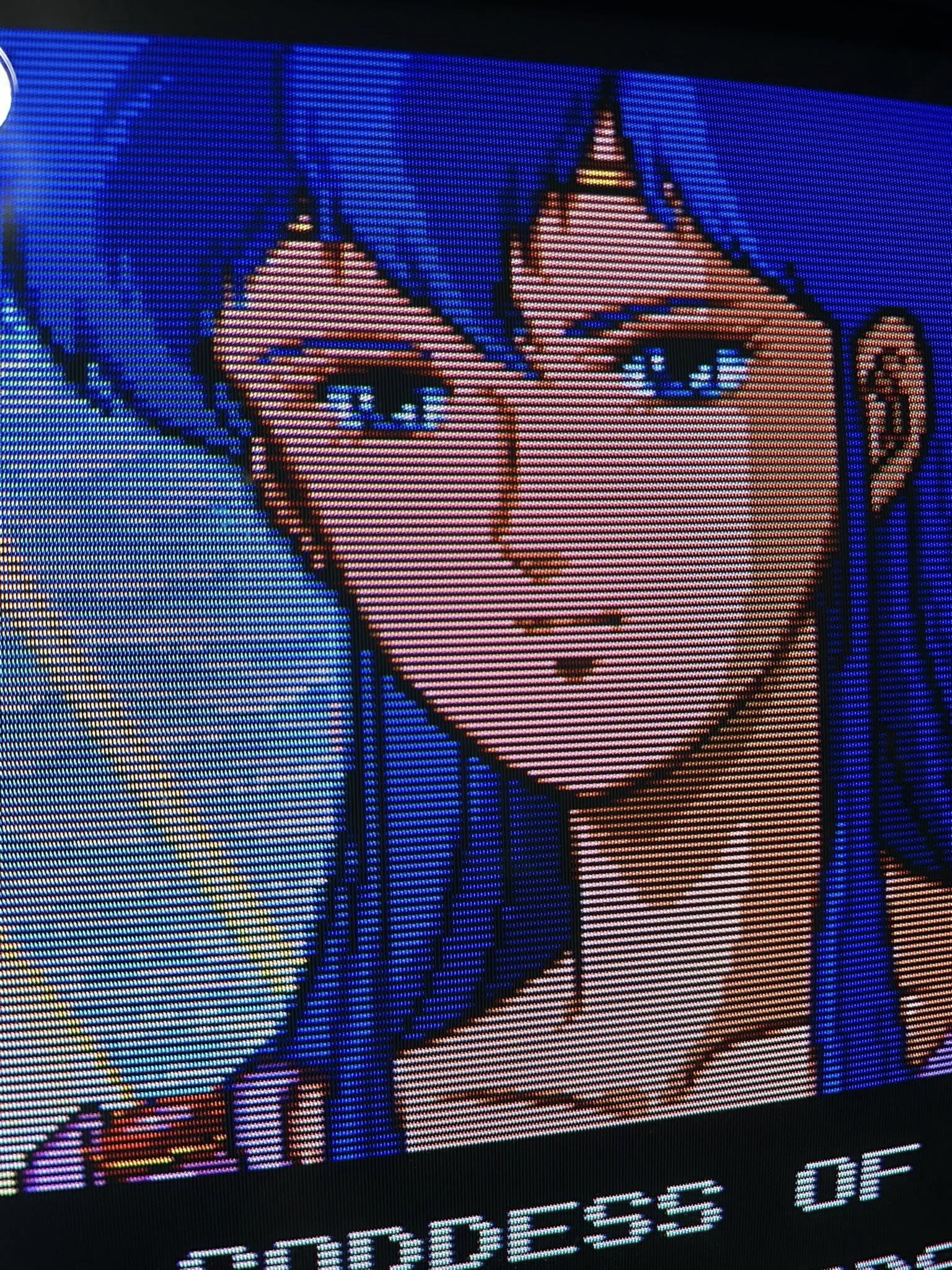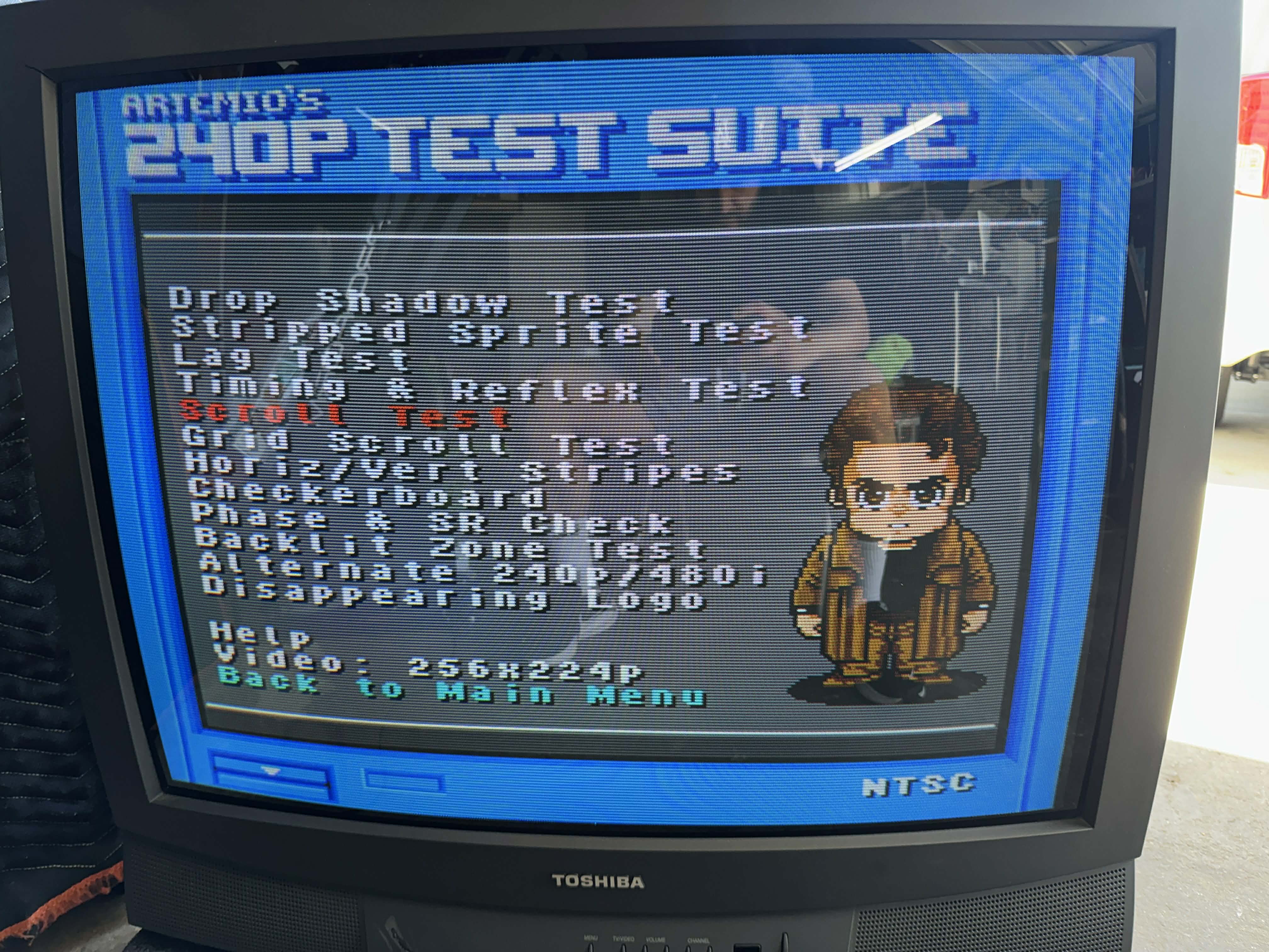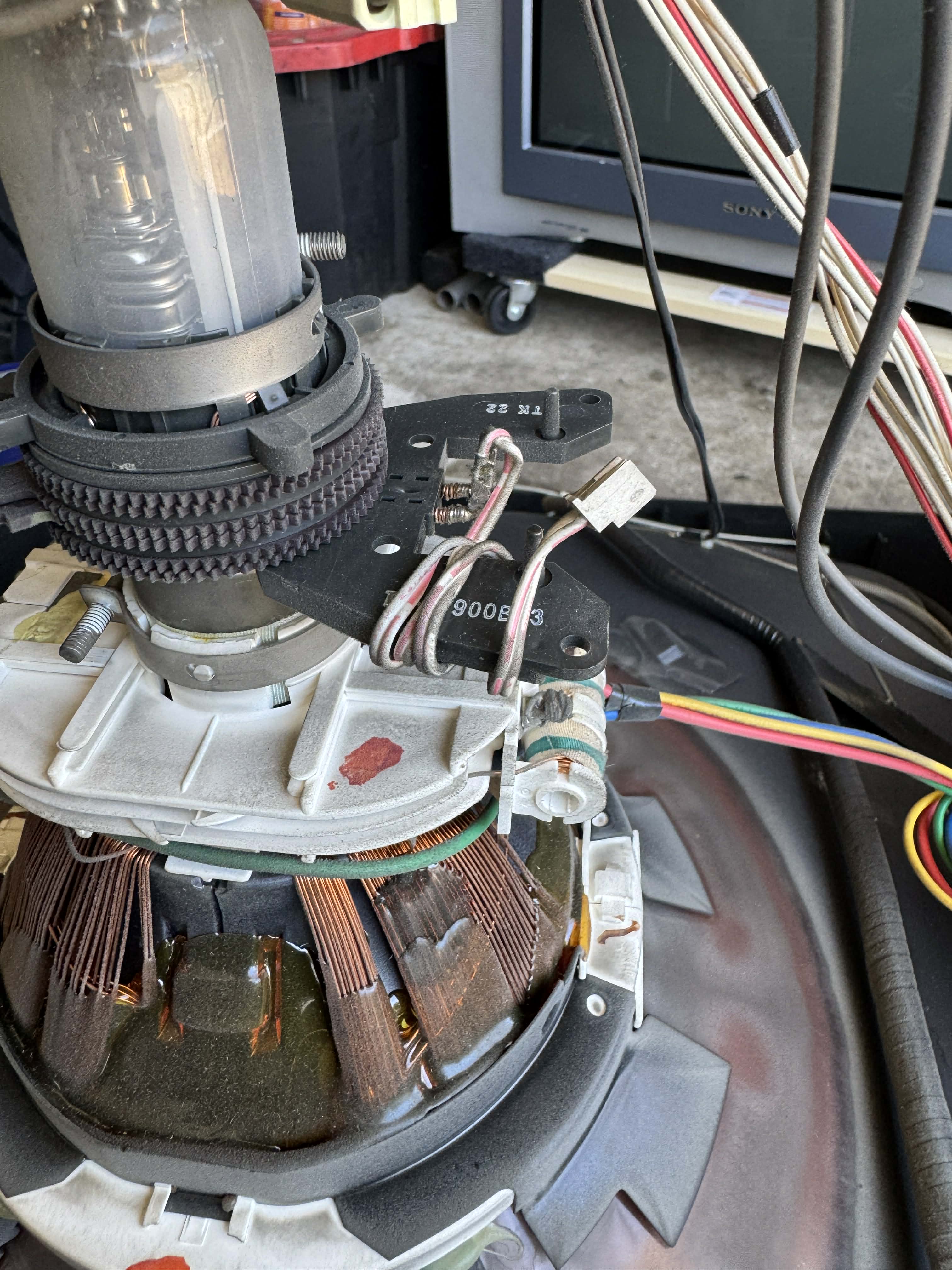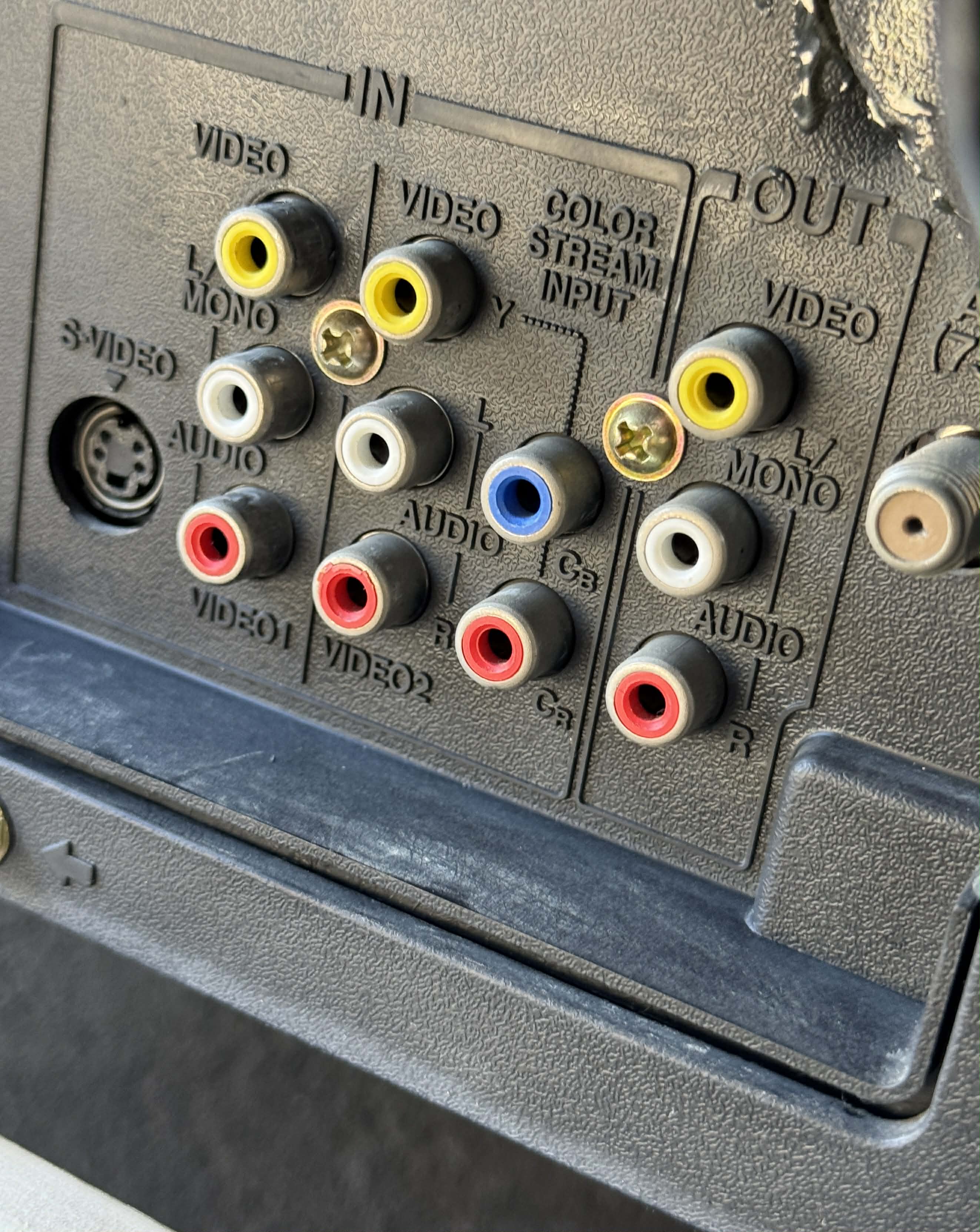 32" curved-screen CRT by Toshiba, made in the USA in 2000. Has RF, composite, s-video, and component inputs with stereo sound.