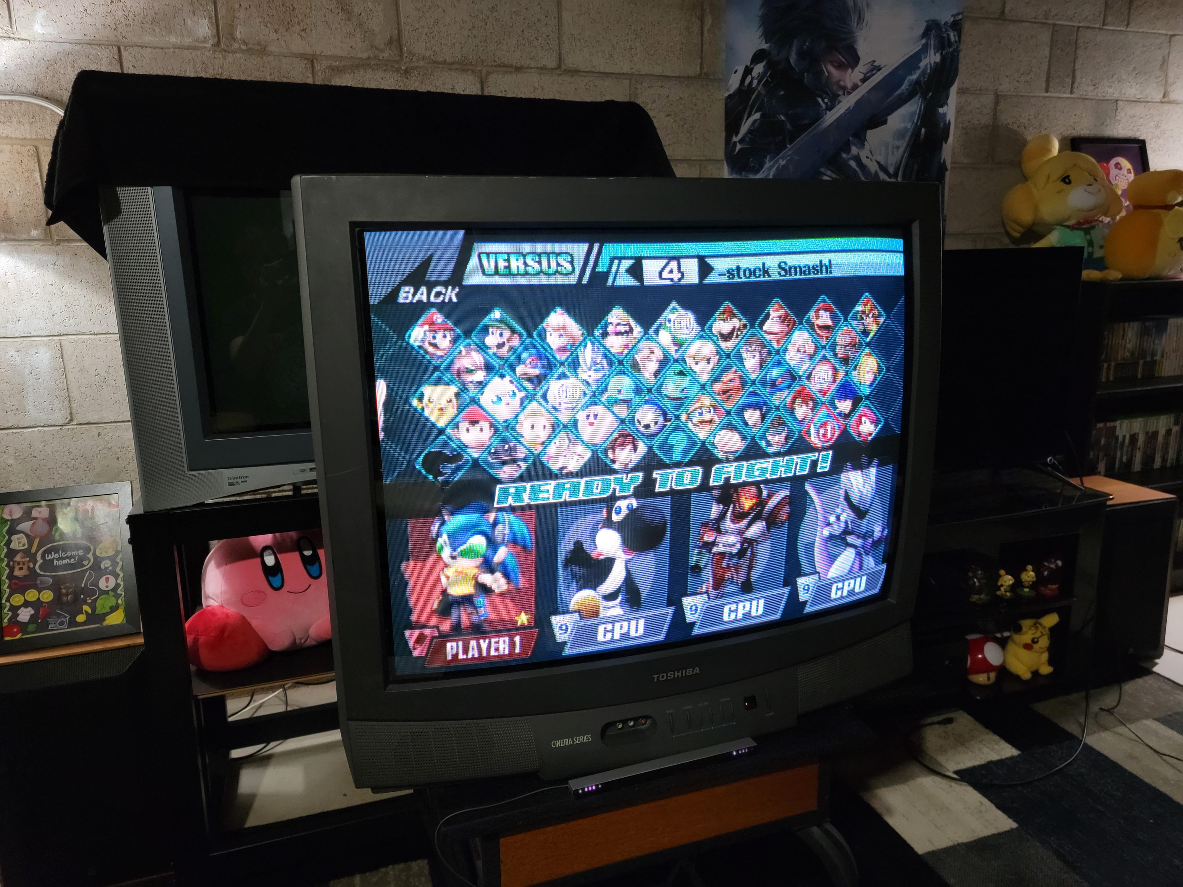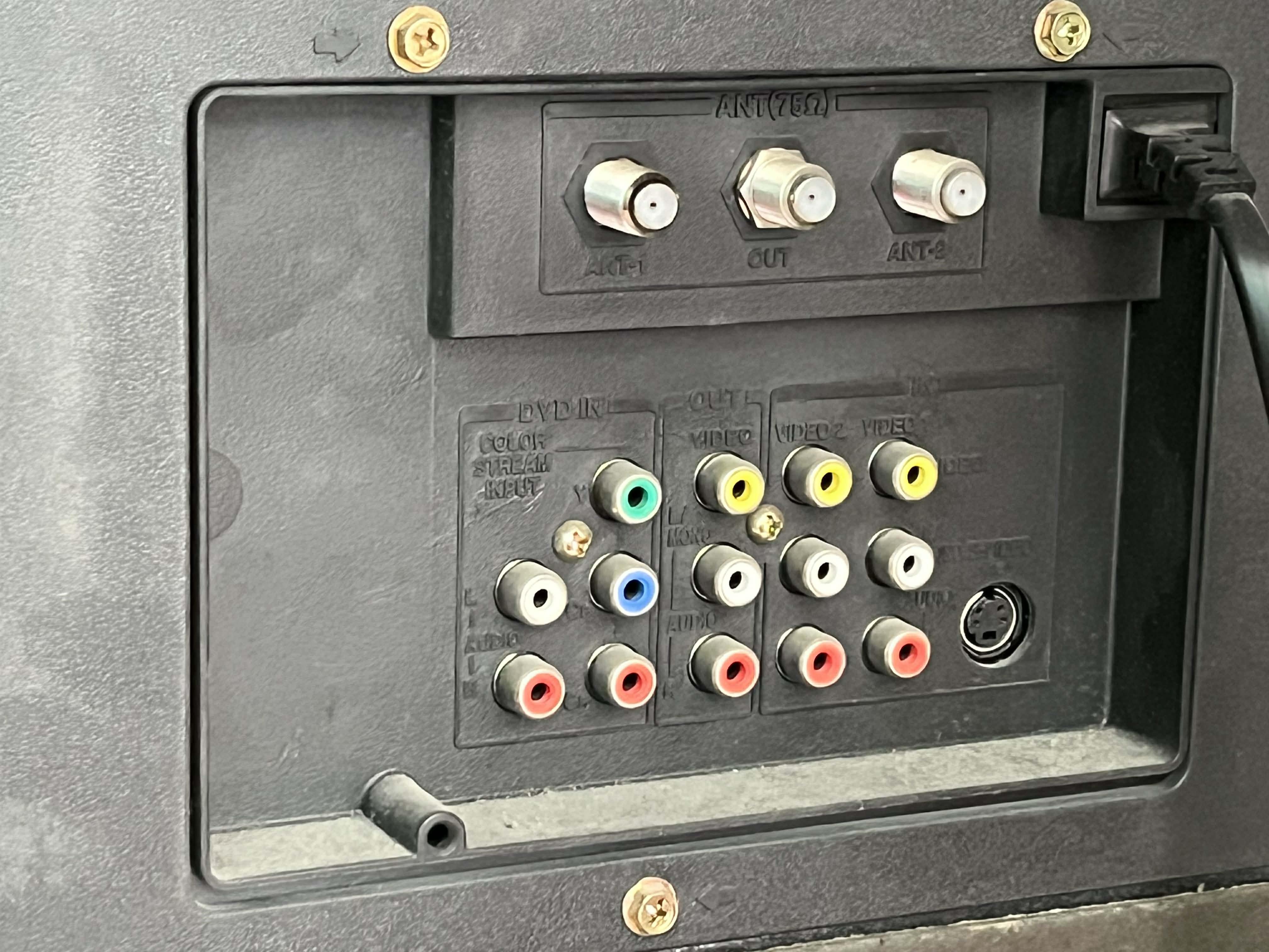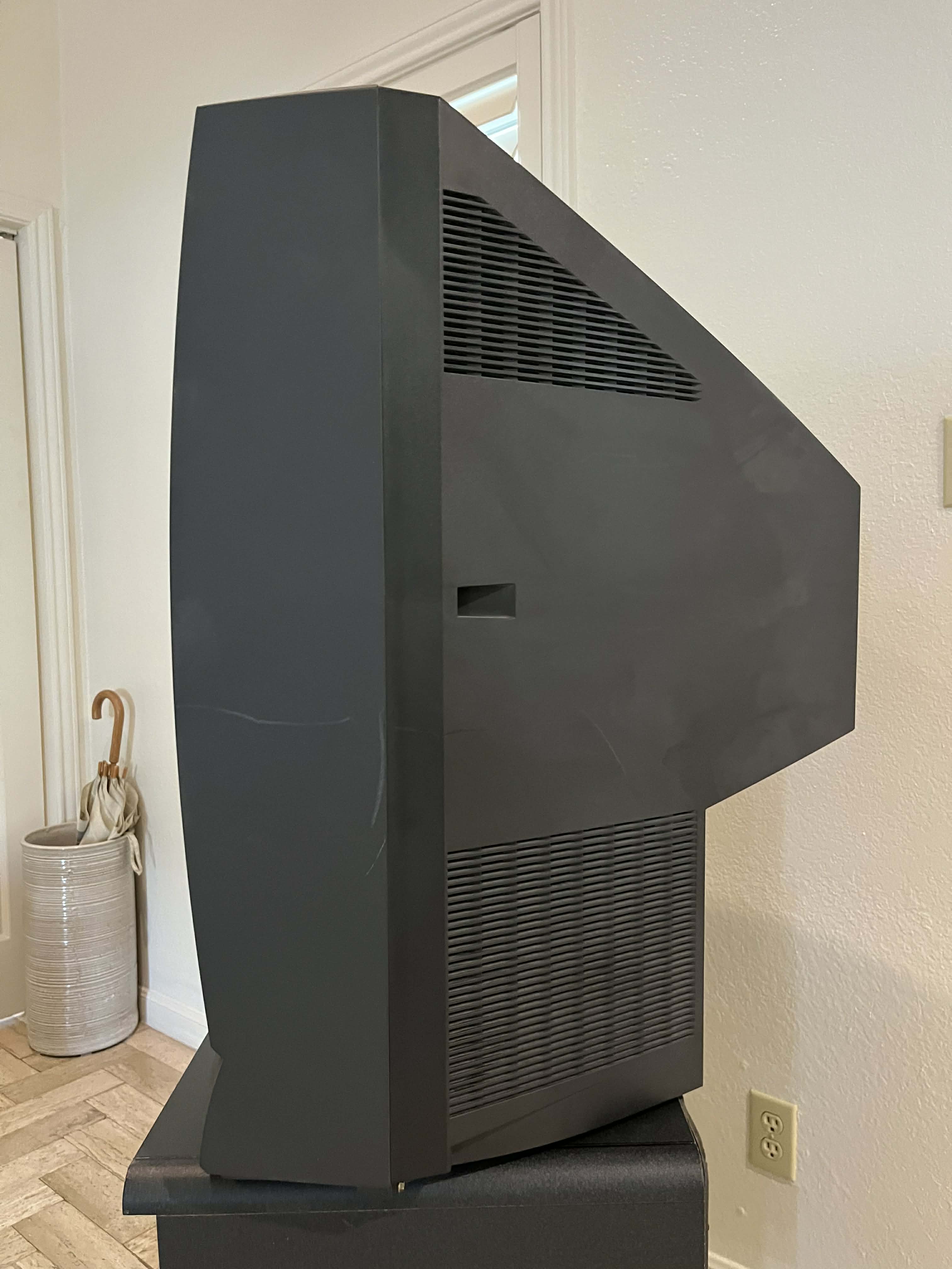 Higher-end 32" CRT by Toshiba, made in the USA in 2000. Has RF, composite, s-video, and component inputs with stereo sound.