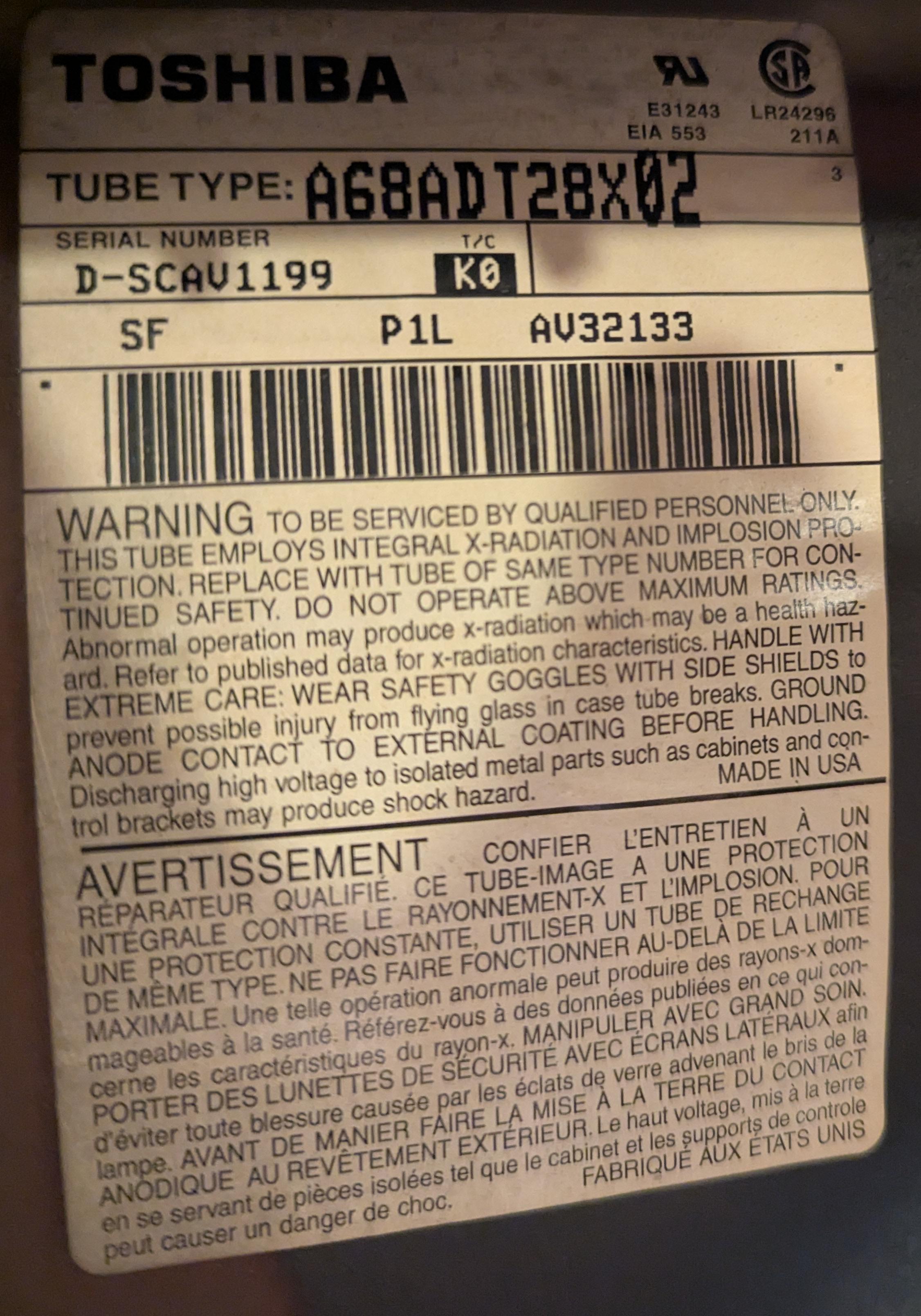| Tube: | RCA , A68ADT28X02 |