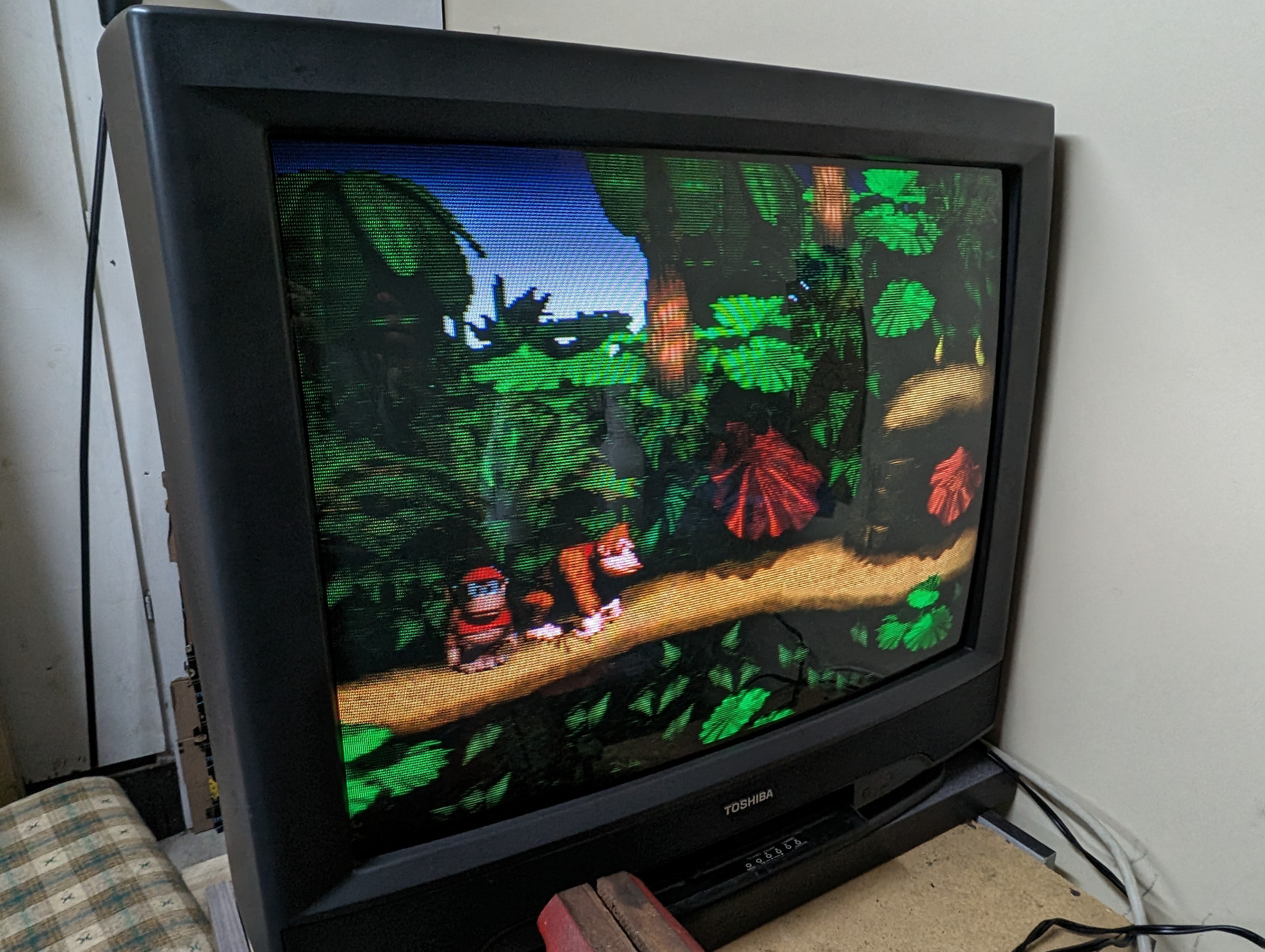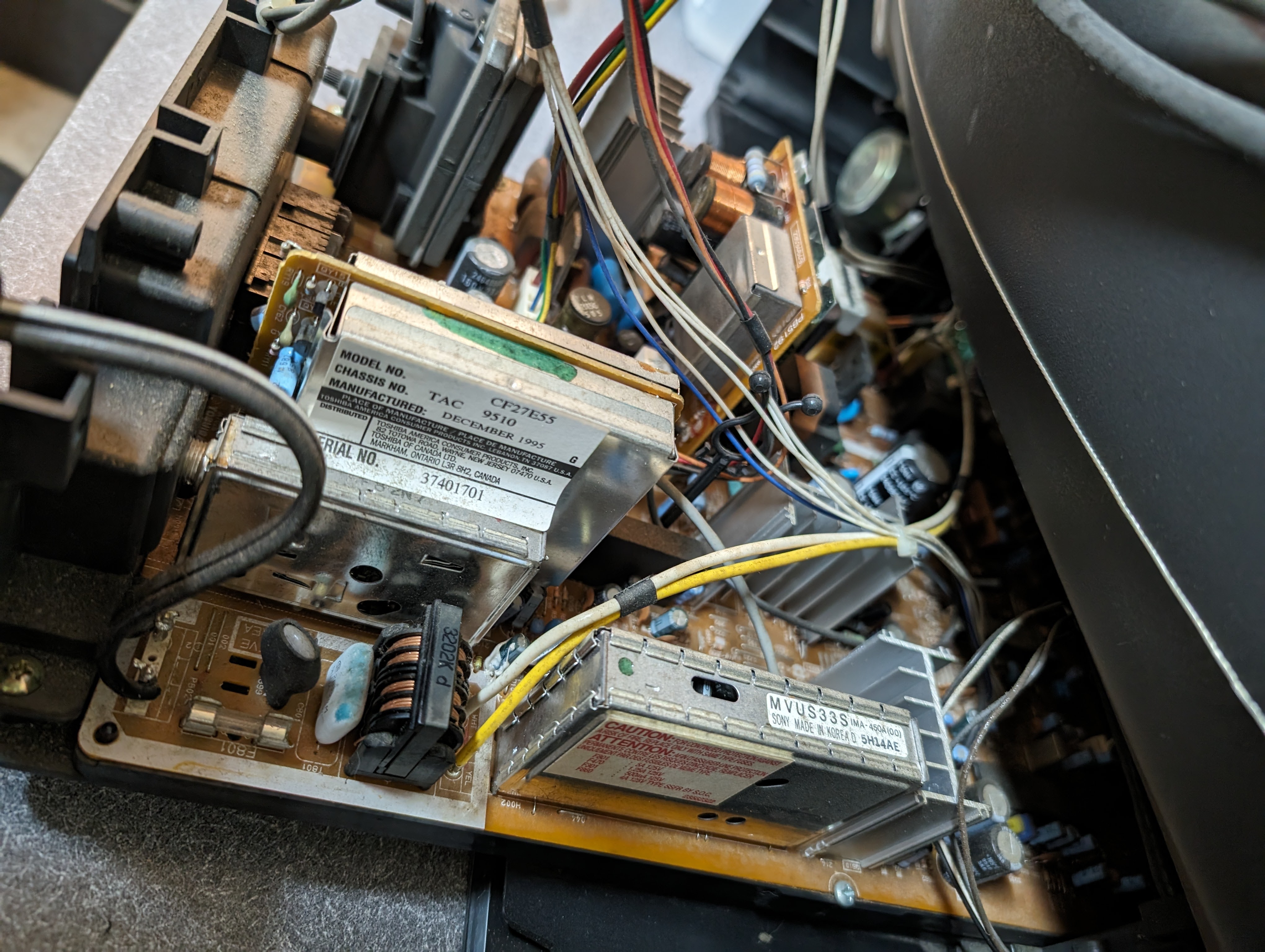 Set can be modded for RGB via the OSD mux method. However, with the provided example, the RGB signal had bad image jitter and permanently disabled the other inputs. If you do plan to RGB mod this set and can figure out how to not get the jitter issues and disabling the inputs, then go for it. (The gameplay pics following the internal shots are of the RGB mod.)