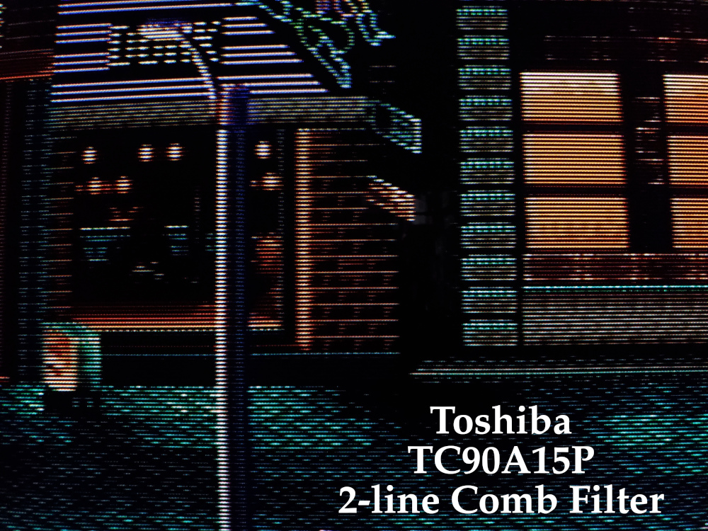 Having a 2-line comb filter, performance with composite 240p is poor, resulting in excessive hanging dots (see pic of comb results in gallery). An external notch filter can be used to decode composite and send it to the S-Video input, bypassing the set's comb & avoiding all the hanging dots. A guide for doing so is here.